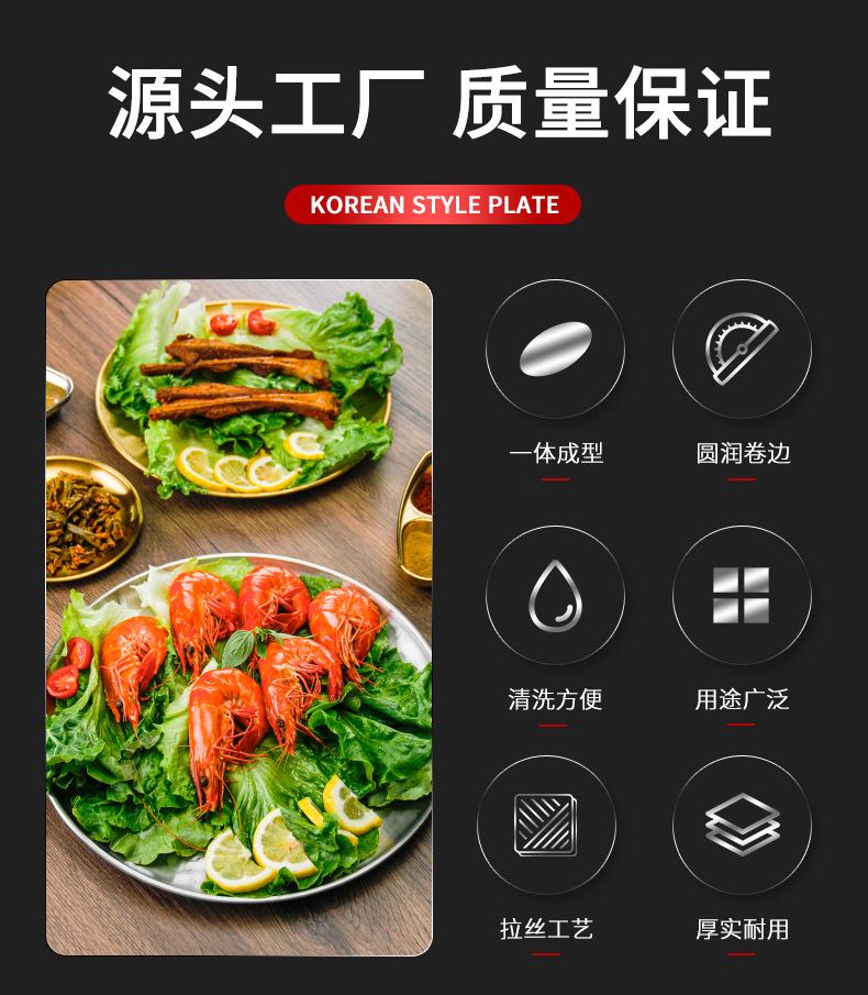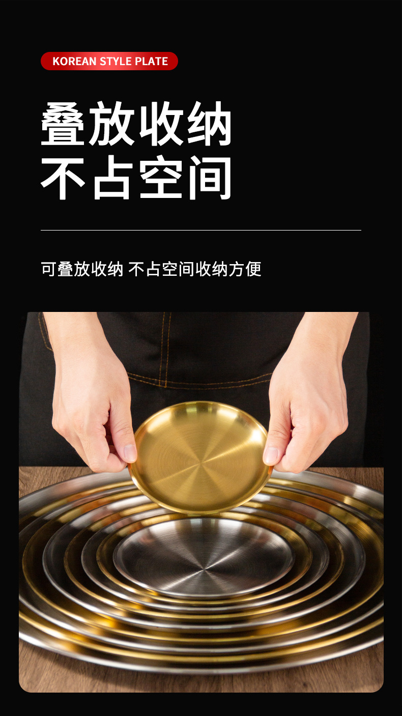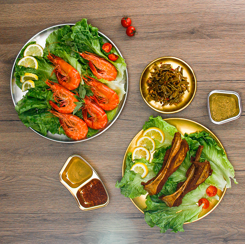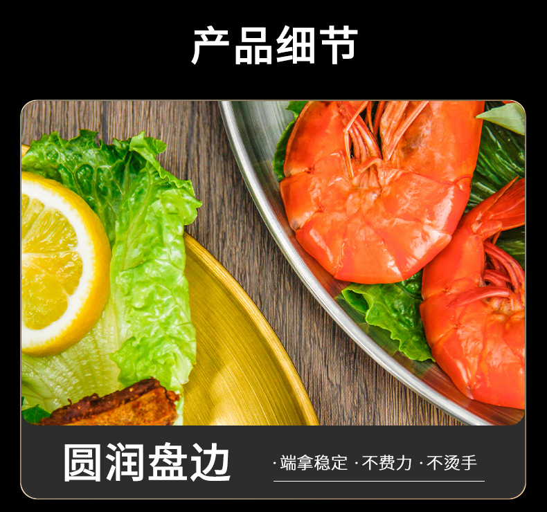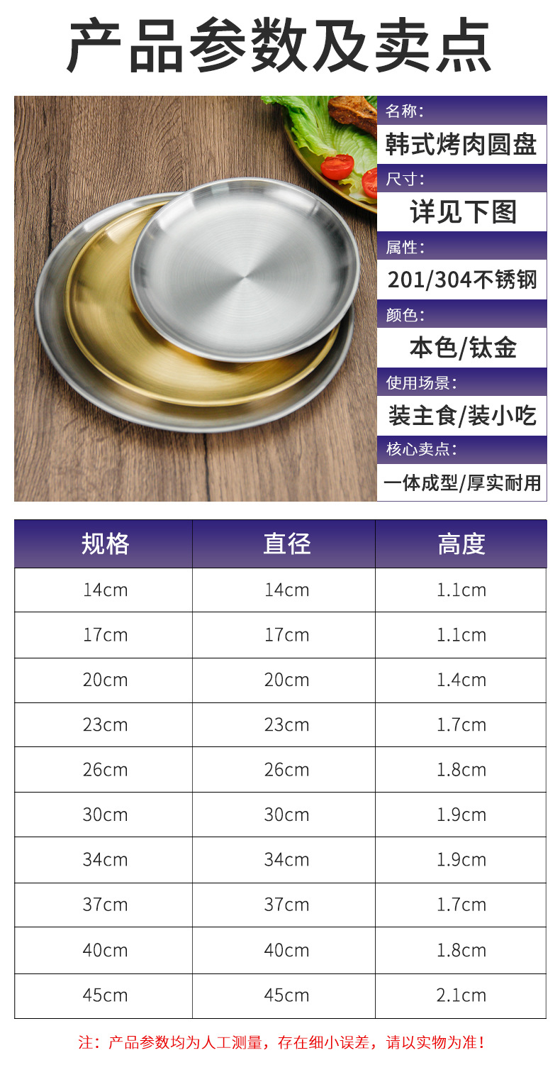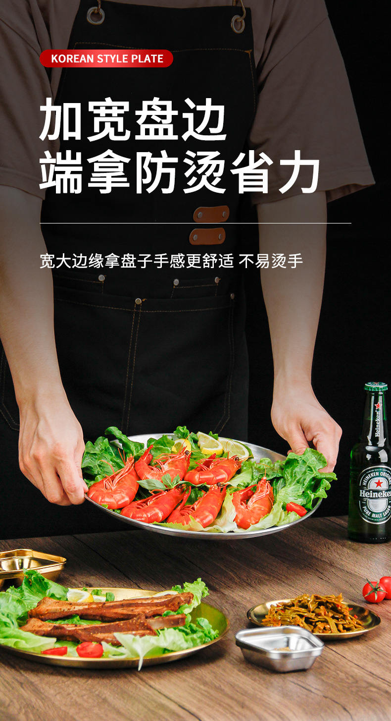 스테인레스 스틸 라운드 플레이트 디저트 플레이트 야채 플레이트 상업용 스테인레스 스틸 디너 플레이트 바베큐 플레이트 트레이 플레이트 고가스토어 가기