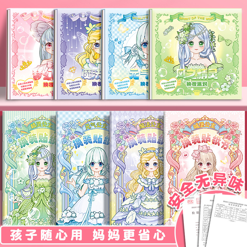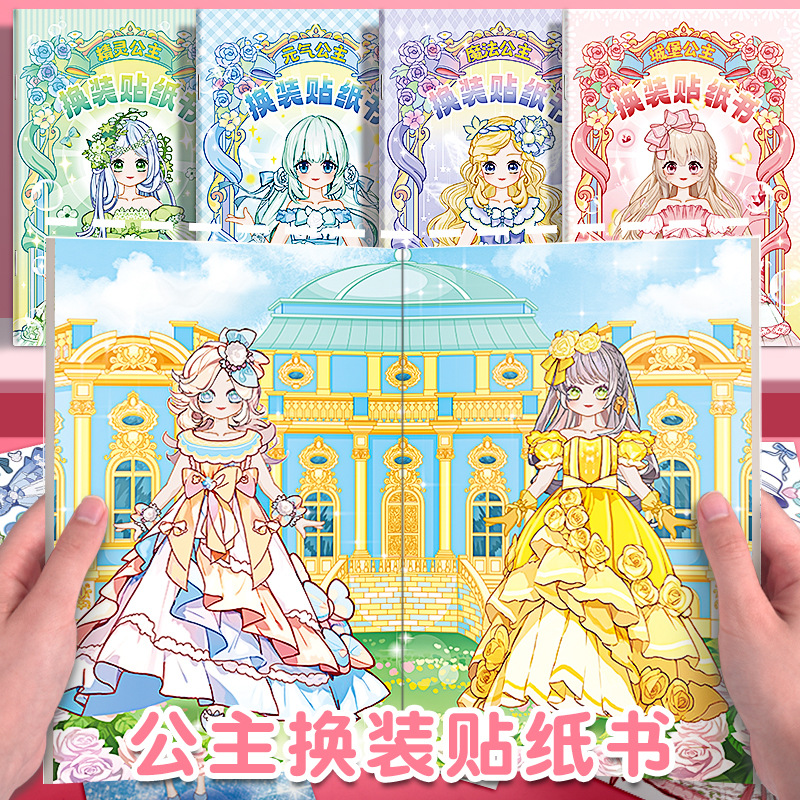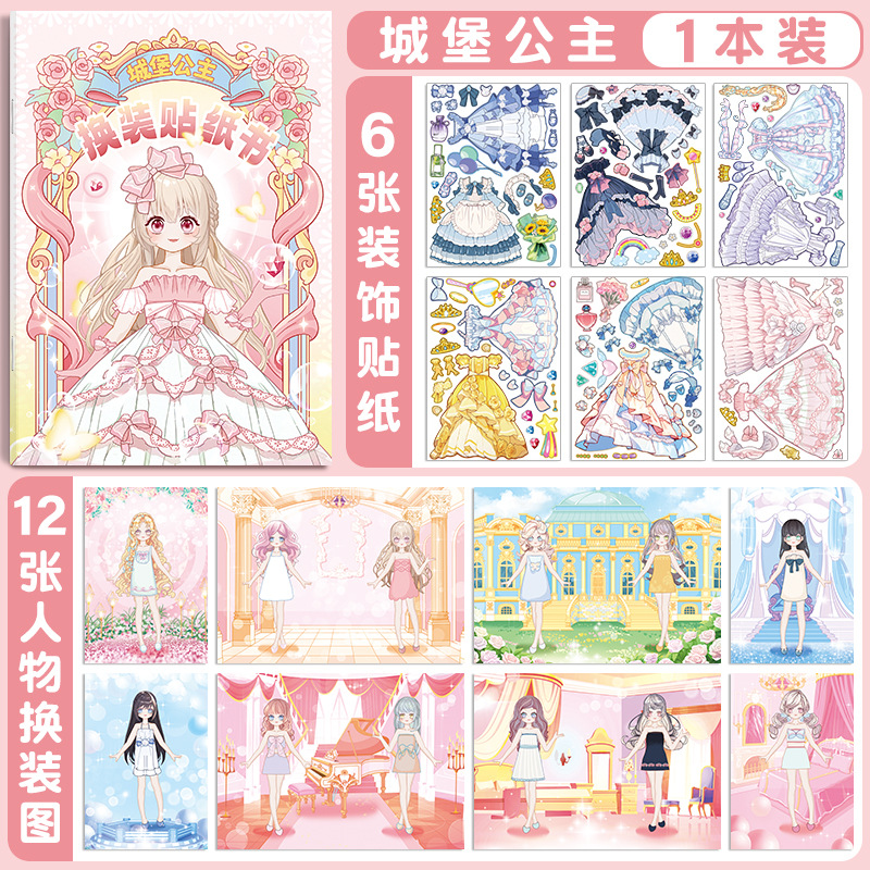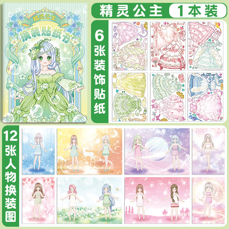 원피스 스티커 소녀 어린이 장난감 교육 아름다운 공주 메이크업 변경 스티커 책 3 ~ 6 세 스티커 손 계정 인형스토어 가기