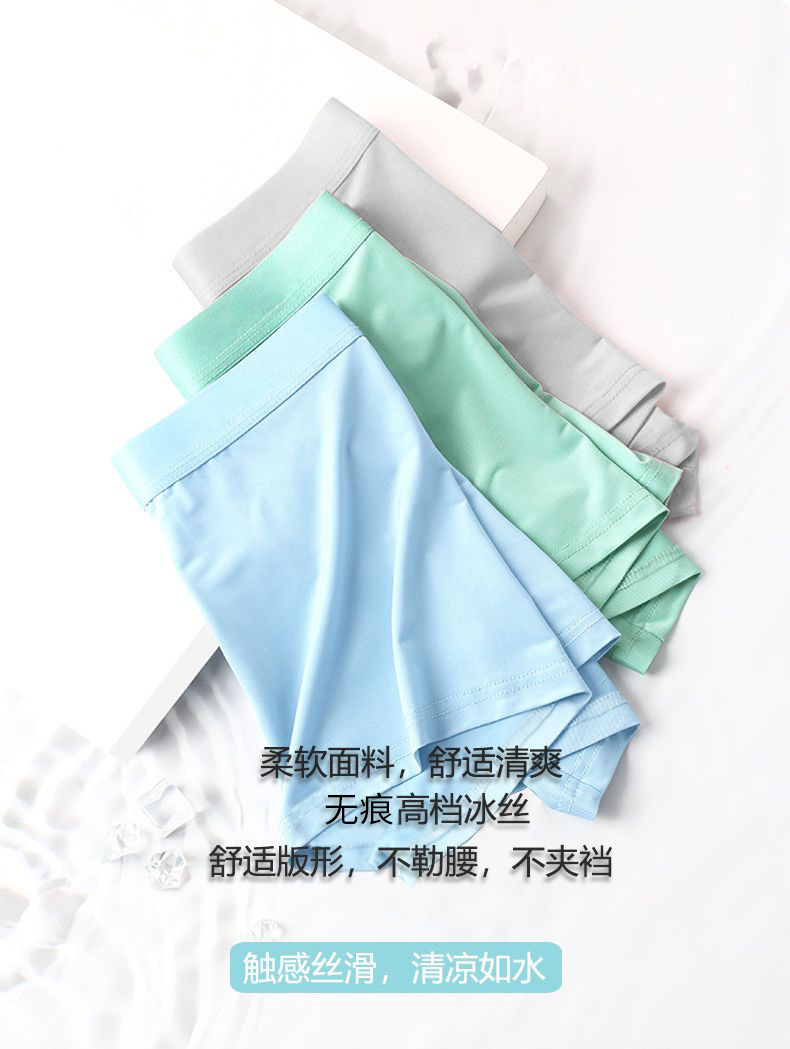 남자의 아이스 실크 속옷 복서 여름 얇은 통기성 청소년 항균 유행 브랜드 실키 소년 복서 바지스토어 가기