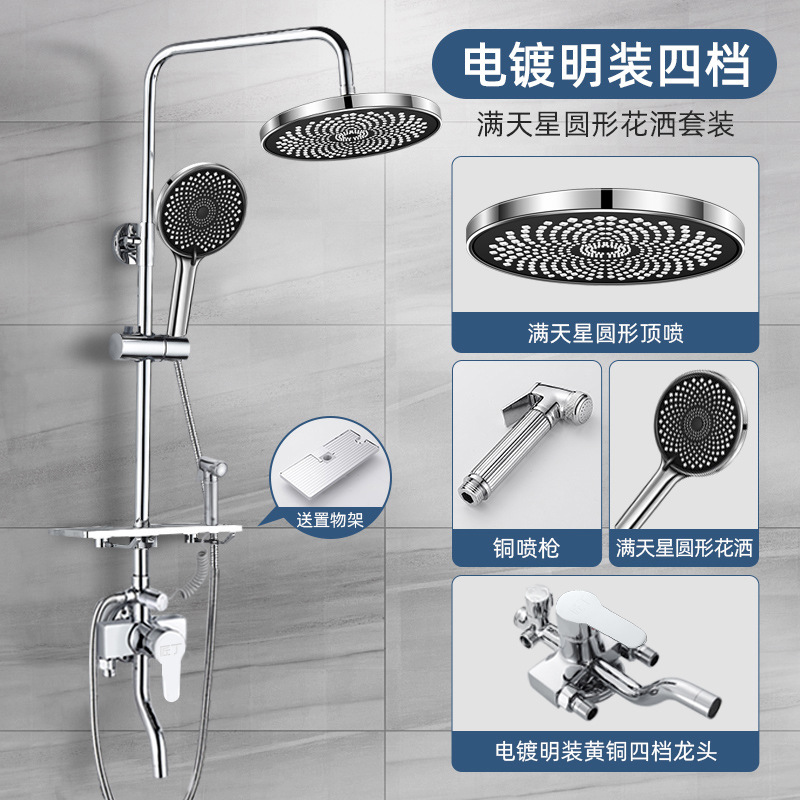 • 구리 4 단 기어 + gypsophila 라운드 샤워 세트 (노출)