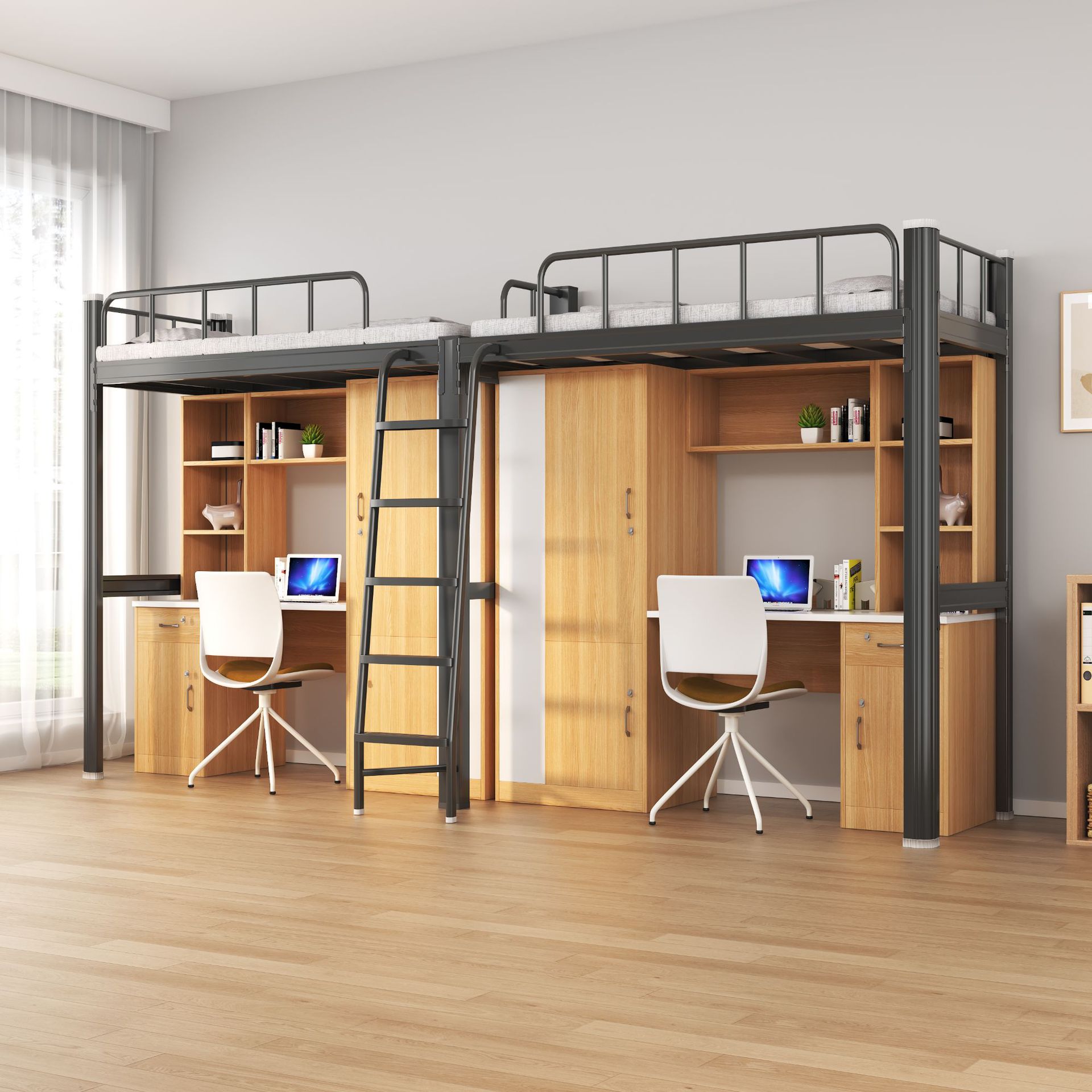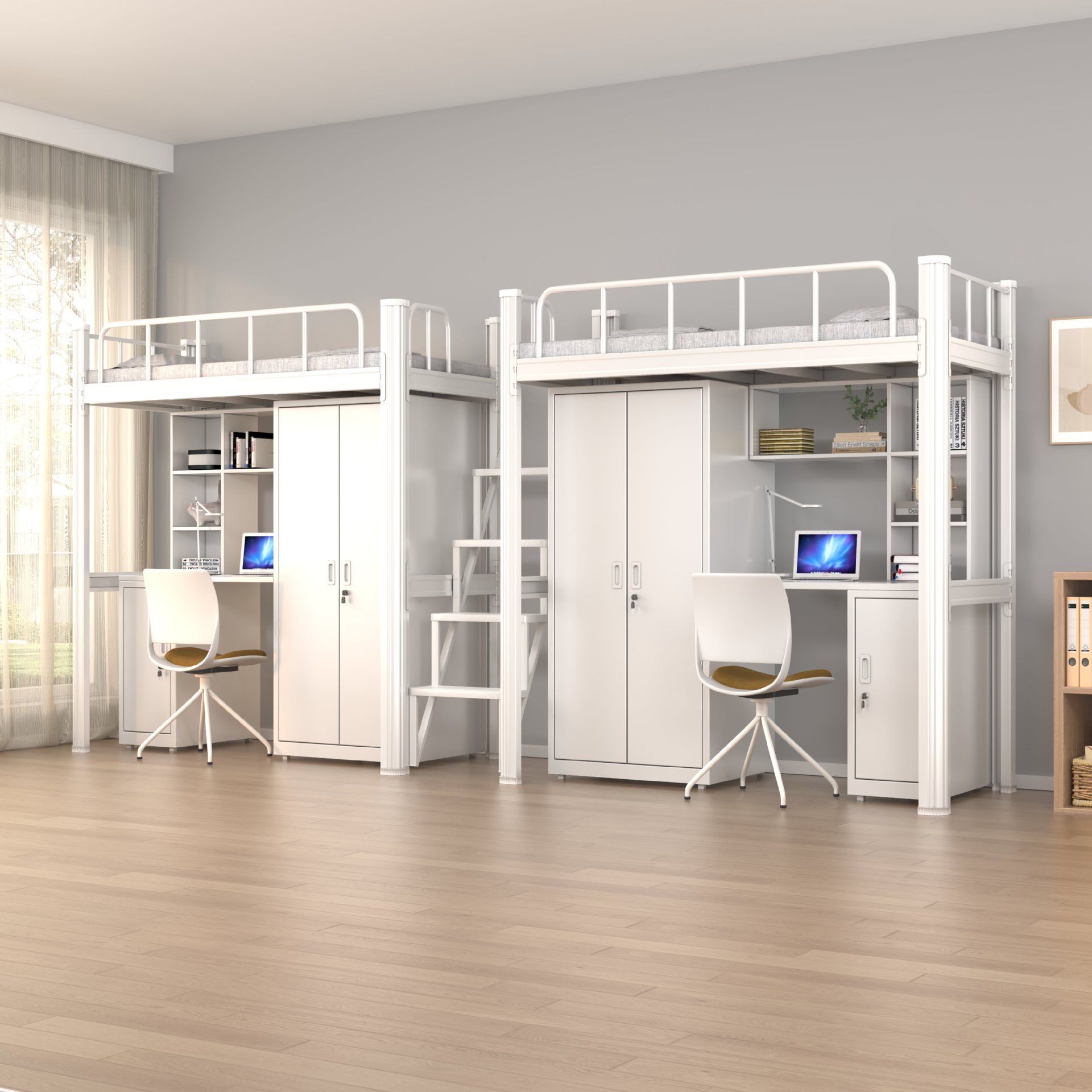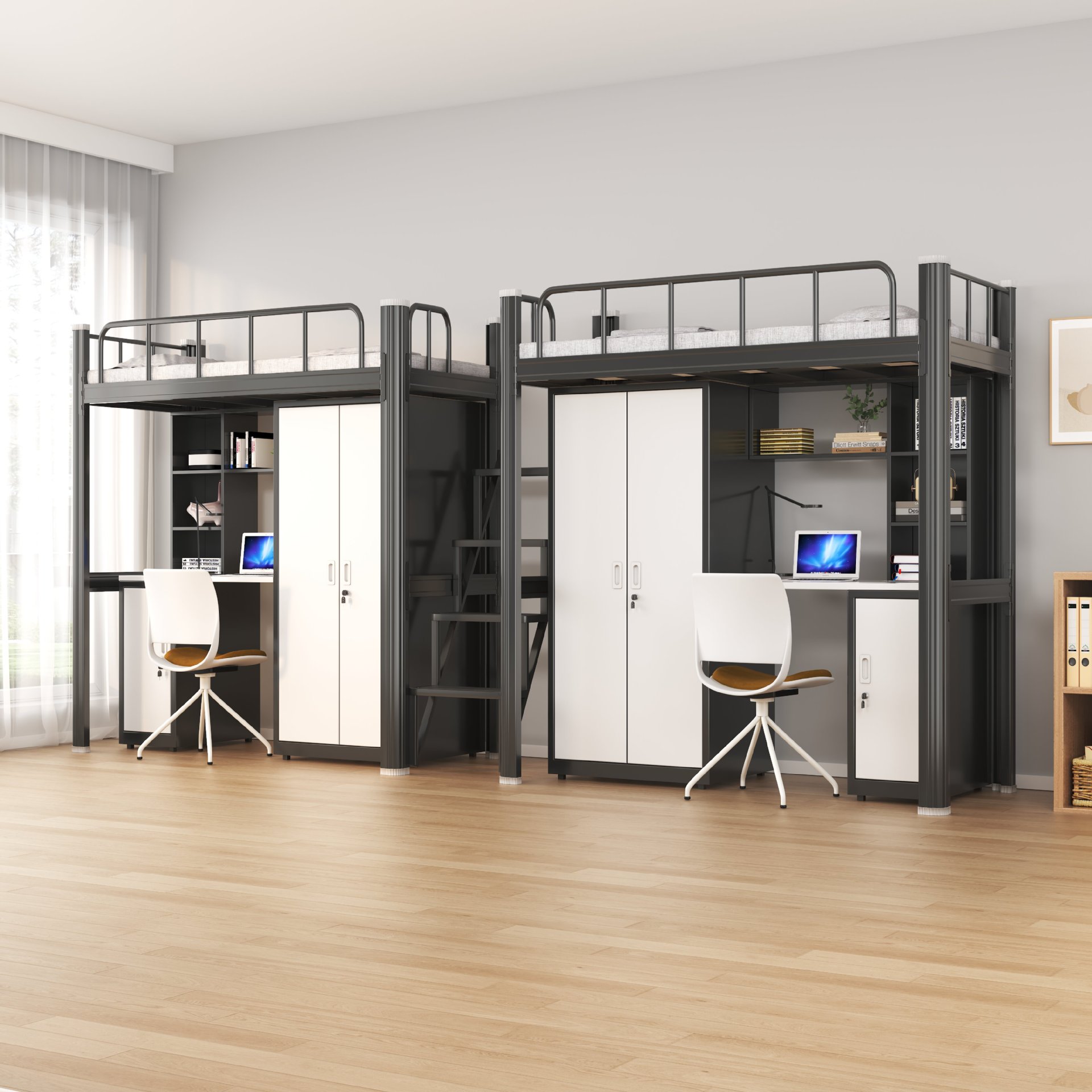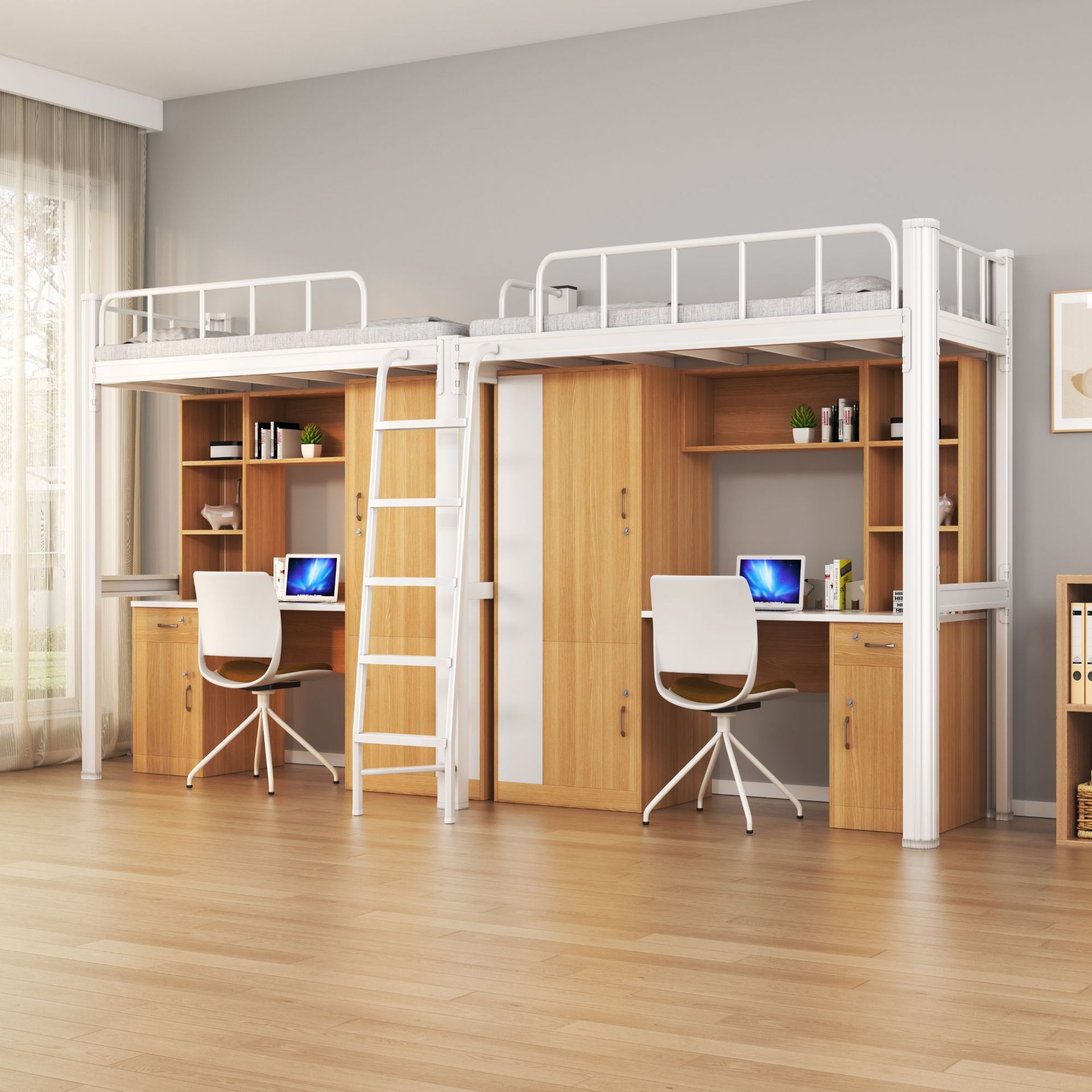 침대와 책상이 결합된 침대, 대학생 기숙사 침대, 학교 기숙사 침대, 이층 침대, 싱글 아파트 침대