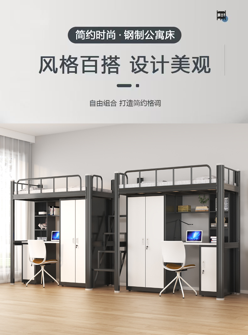 침대와 책상이 결합된 침대, 대학생 기숙사 침대, 학교 기숙사 침대, 이층 침대, 싱글 아파트 침대스토어 가기