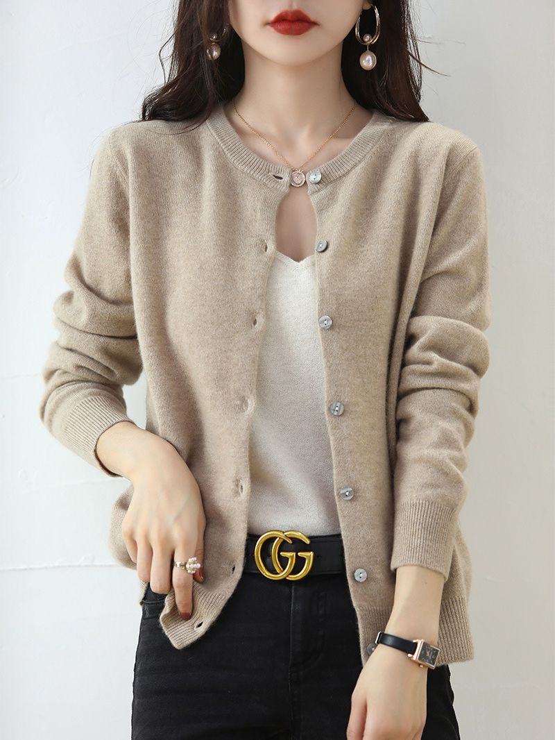 가을과 겨울 새로운 라운드 넥 솔리드 컬러 니트 가디건 여성용 루즈한 모든 매치 스웨터 재킷 긴팔 탑 퍼플 아우터스토어 가기