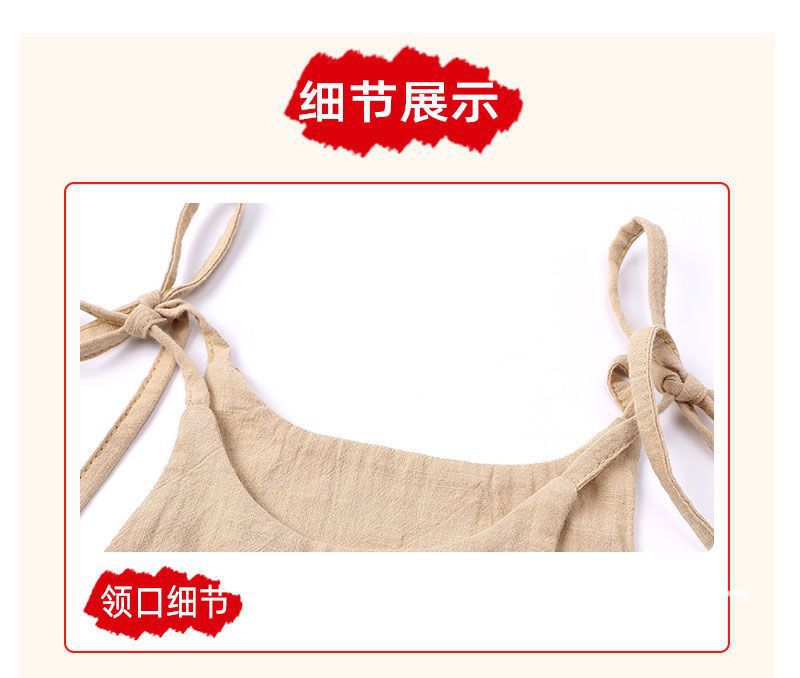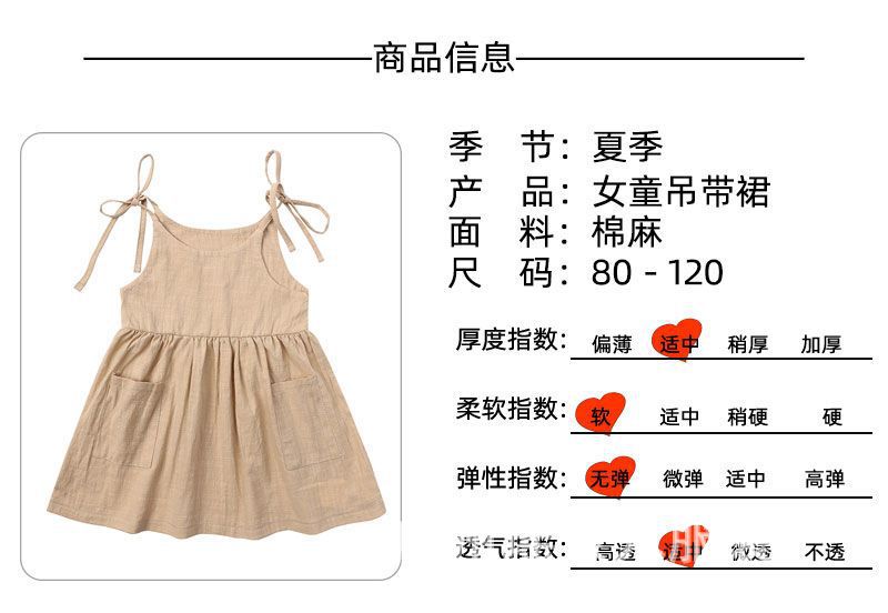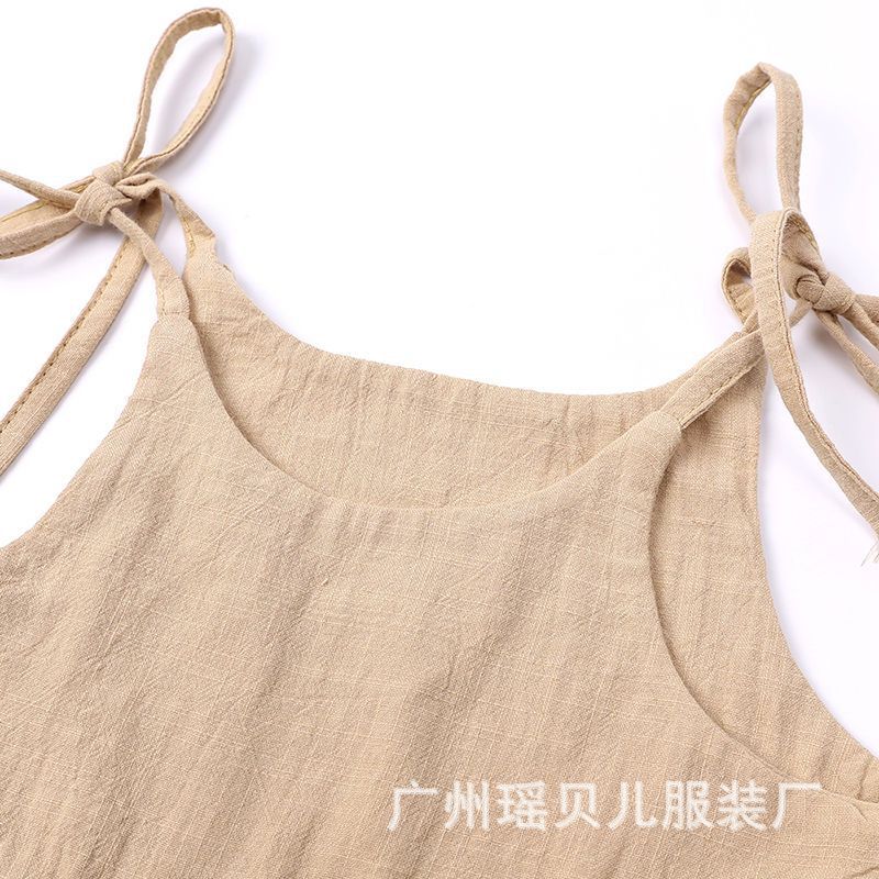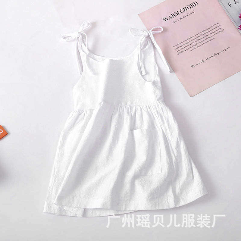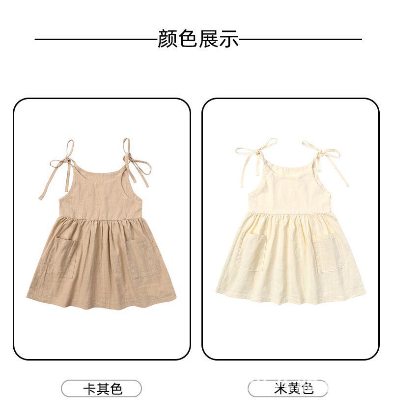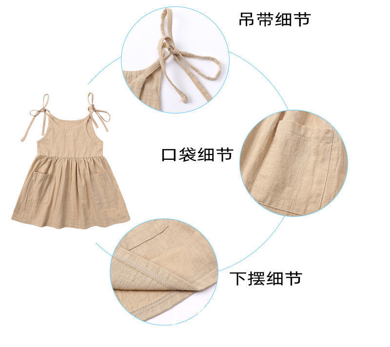 유럽과 미국 소녀 여름 단색 면 린넨 2 사이드 포켓 슬링 원피스 레이스 어린이 슬링 원피스 트렌디스토어 가기