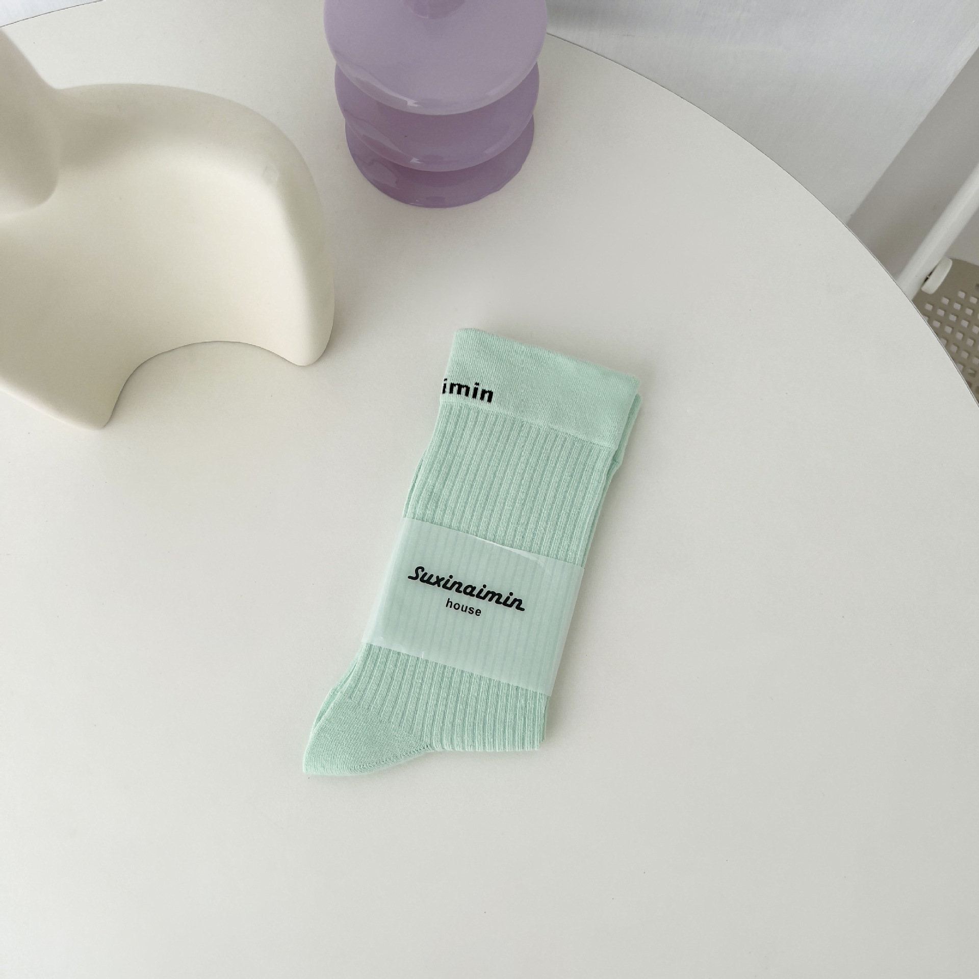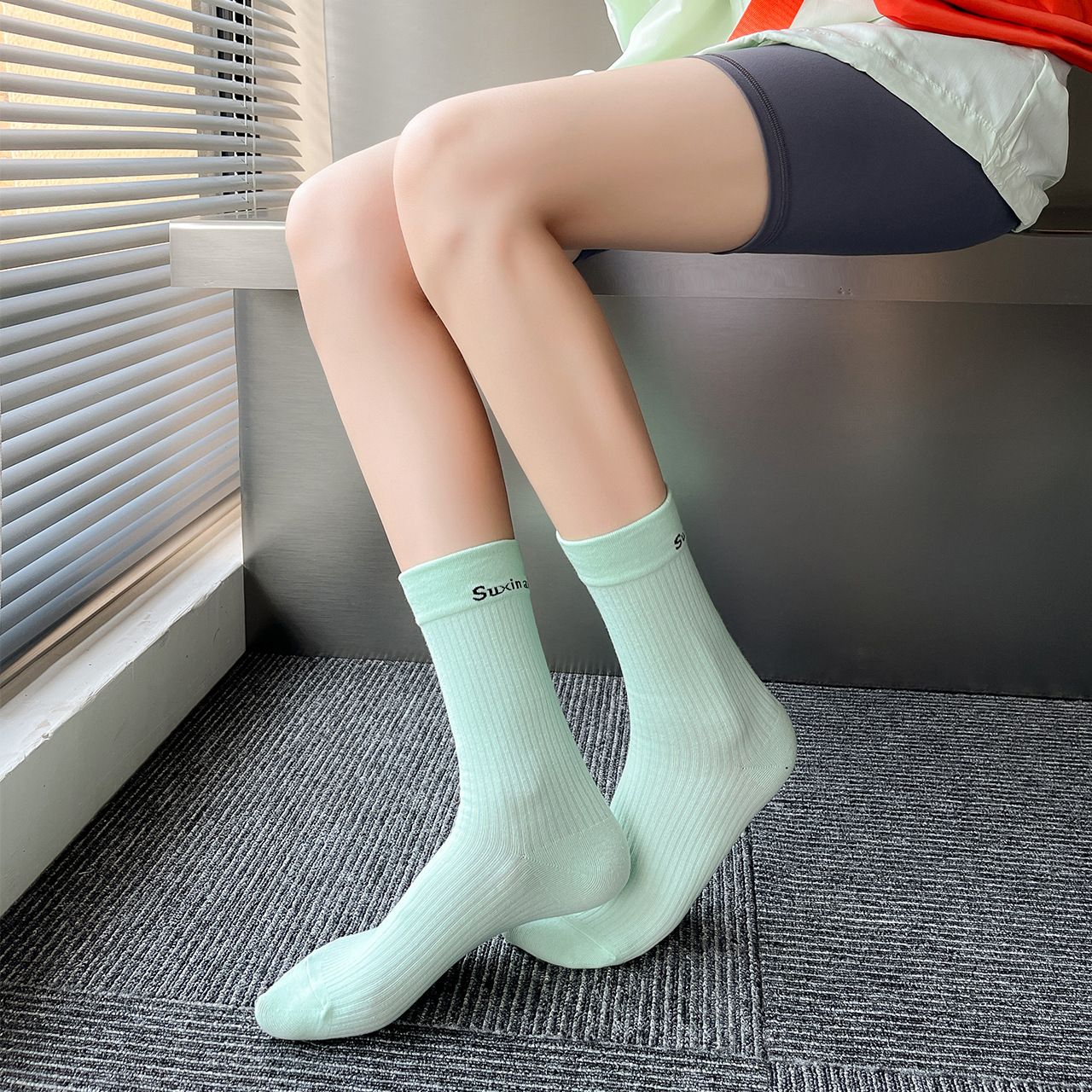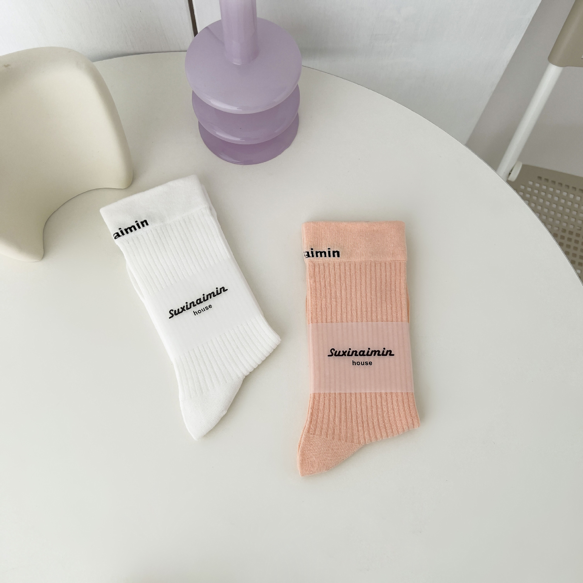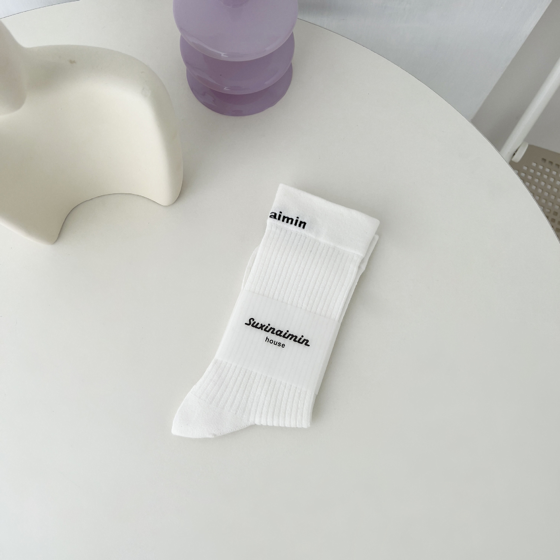 힐 편지 양말 여성용 봄과 가을 중간 길이 양말 단색 면 유행 스포츠 스택 양말 흰색 여름 스타킹