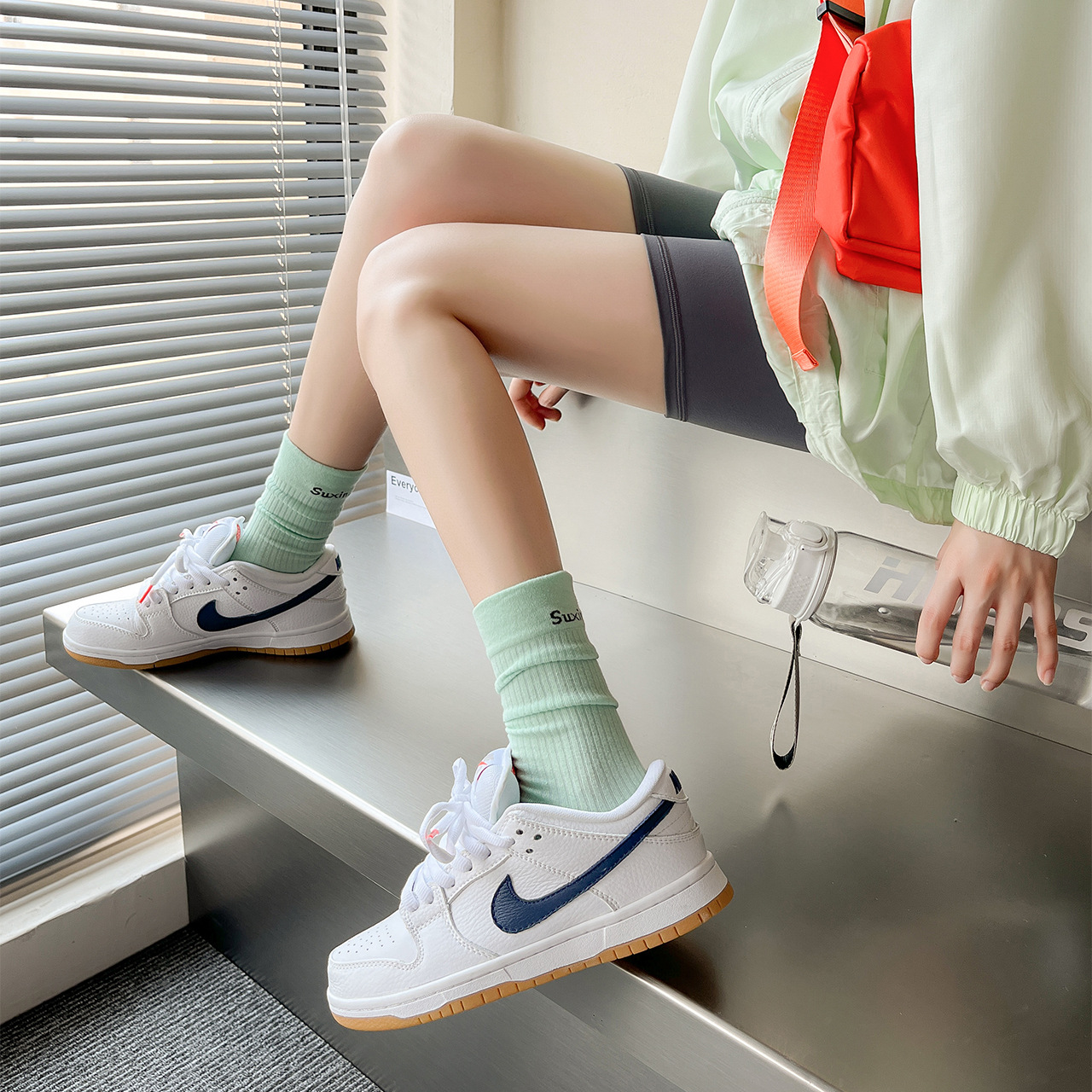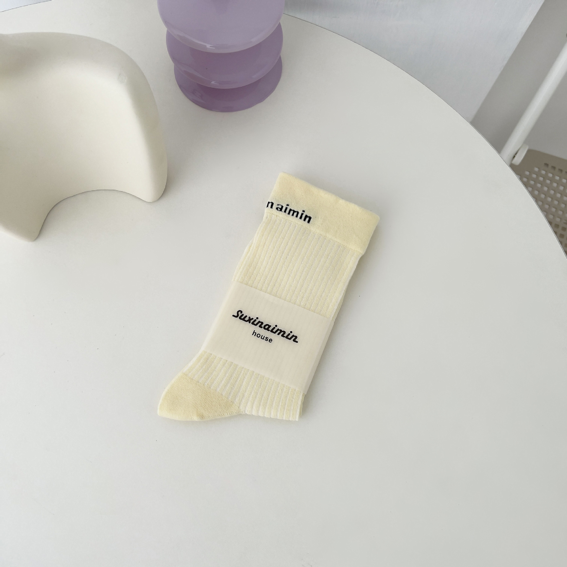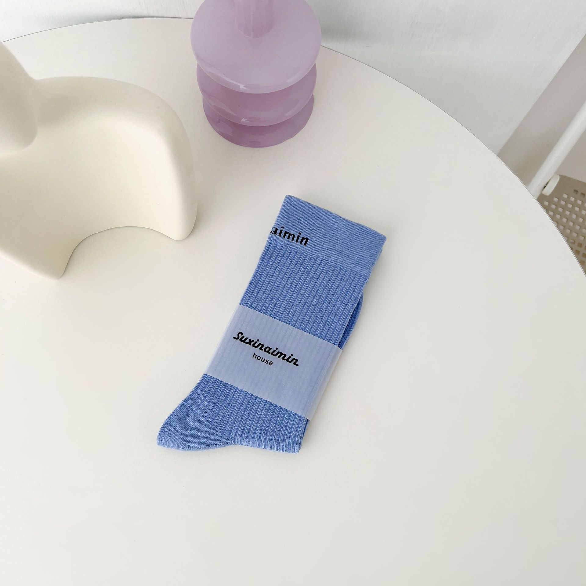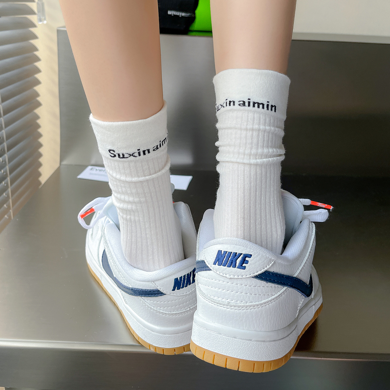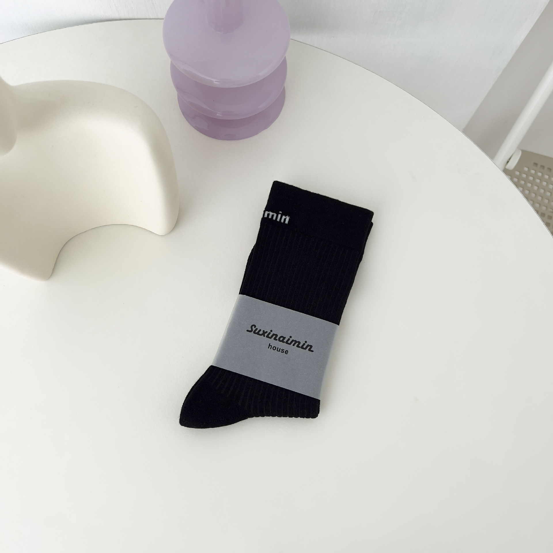 힐 편지 양말 여성용 봄과 가을 중간 길이 양말 단색 면 유행 스포츠 스택 양말 흰색 여름 스타킹