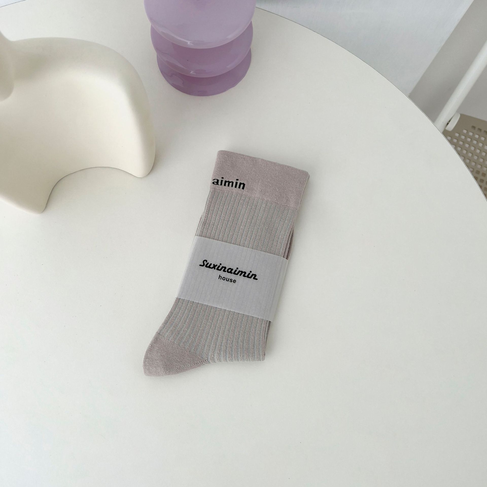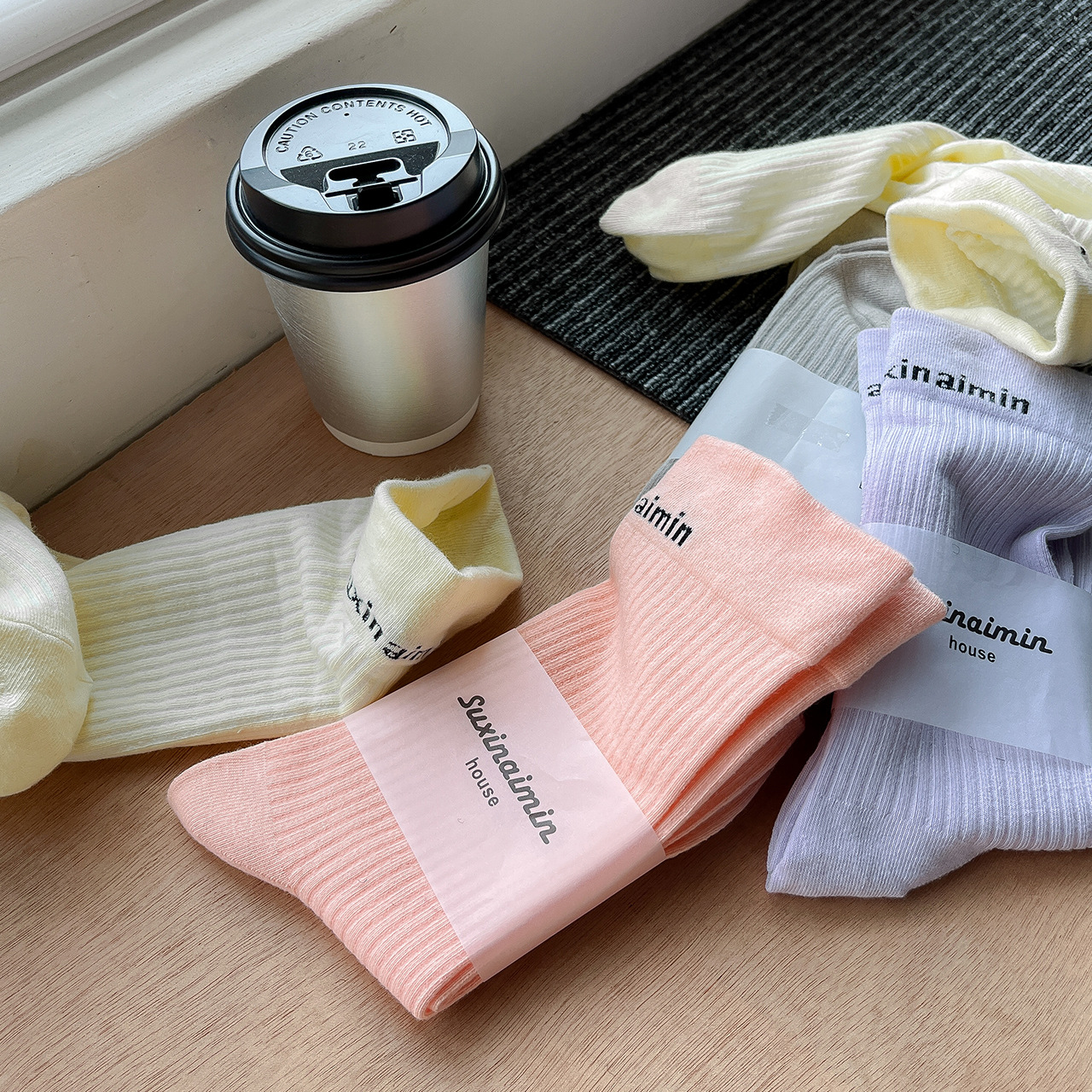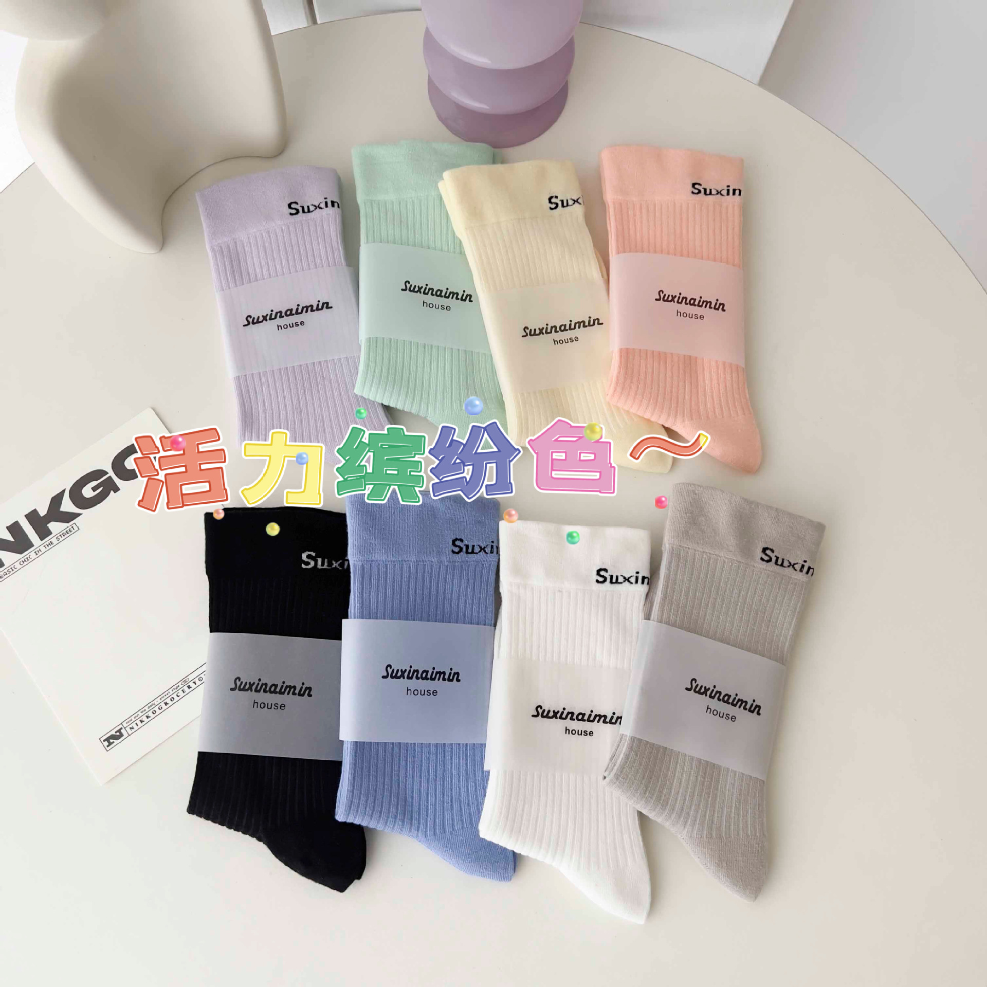 힐 편지 양말 여성용 봄과 가을 중간 길이 양말 단색 면 유행 스포츠 스택 양말 흰색 여름 스타킹스토어 가기