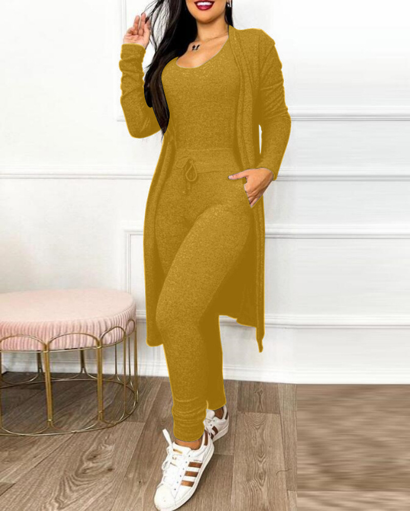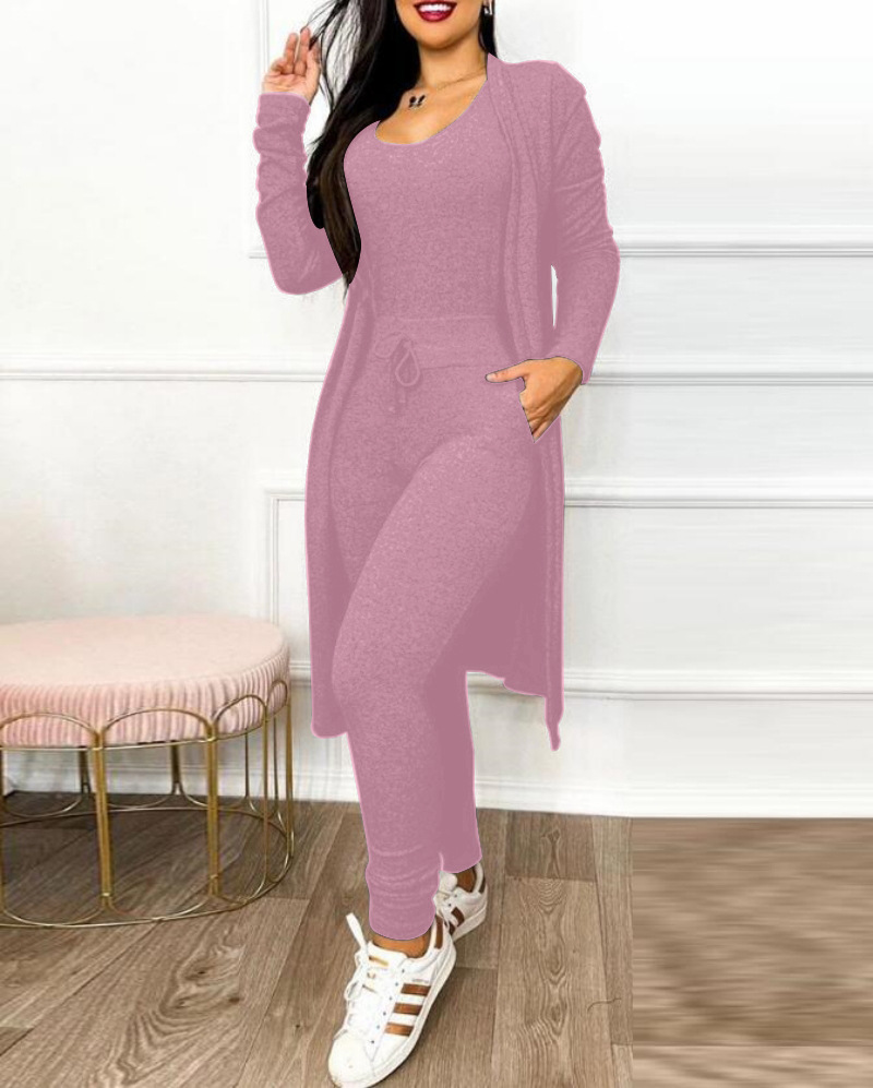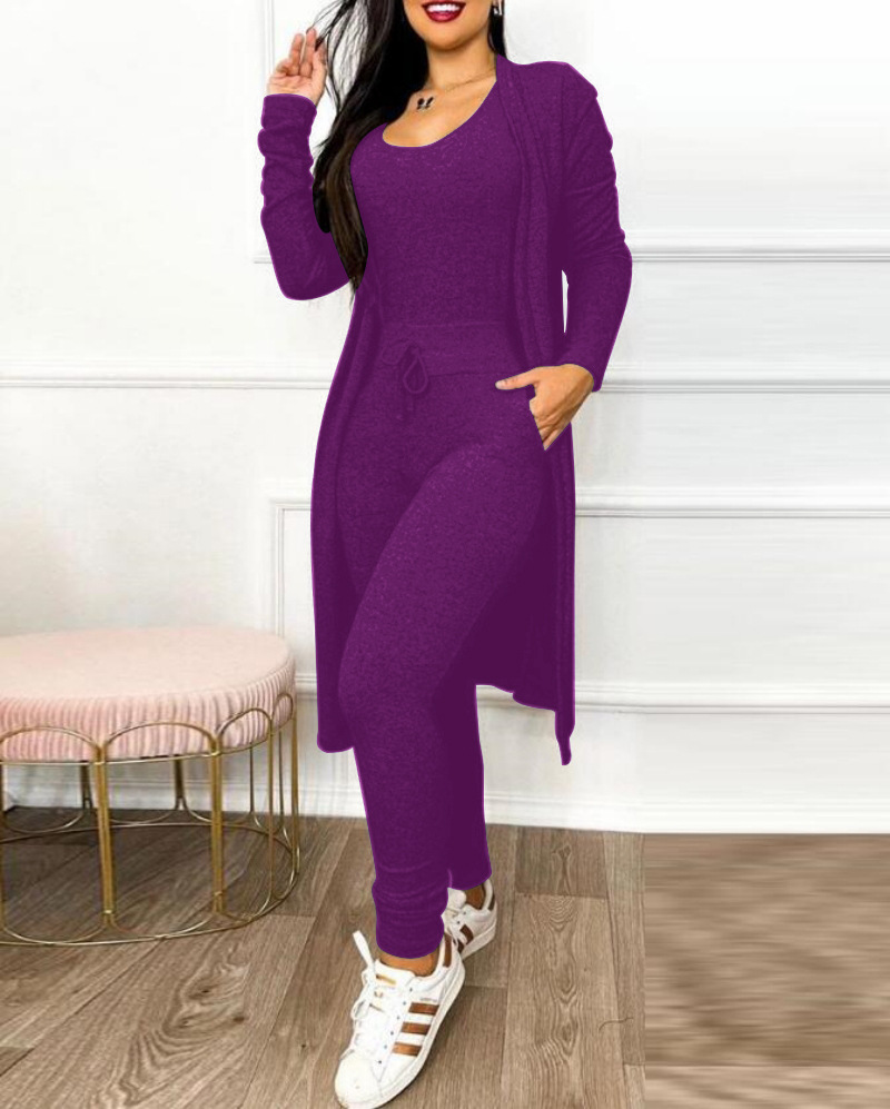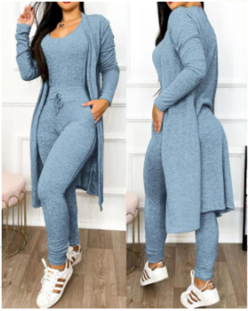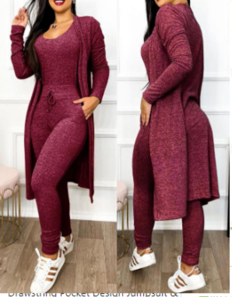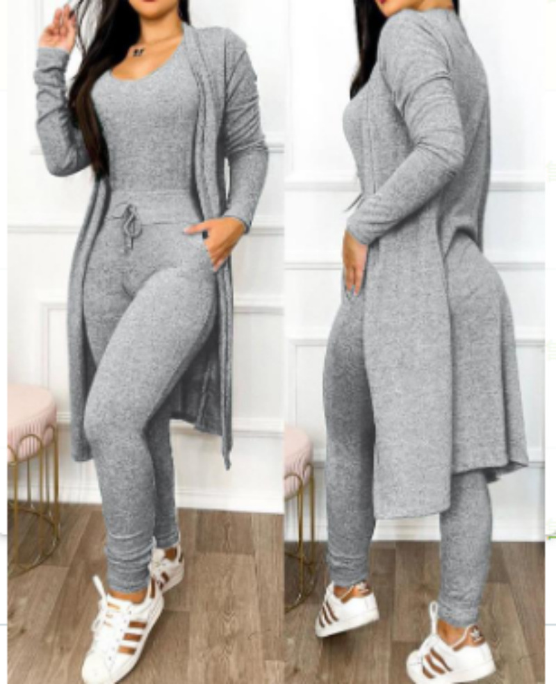 국경 간 유럽과 미국의 대외 무역 새로운 가을과 겨울 패션 긴 점프 수트 긴 카디건 캐주얼 세트 긴 소매 재고