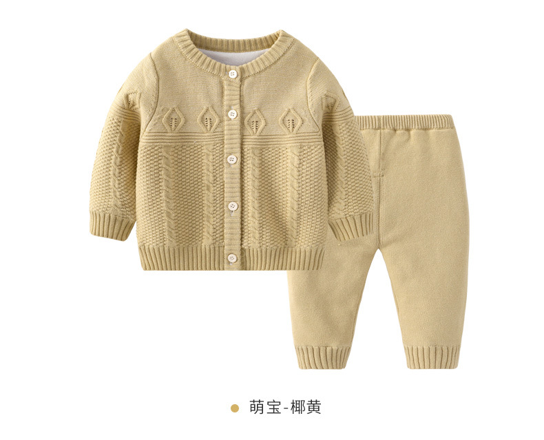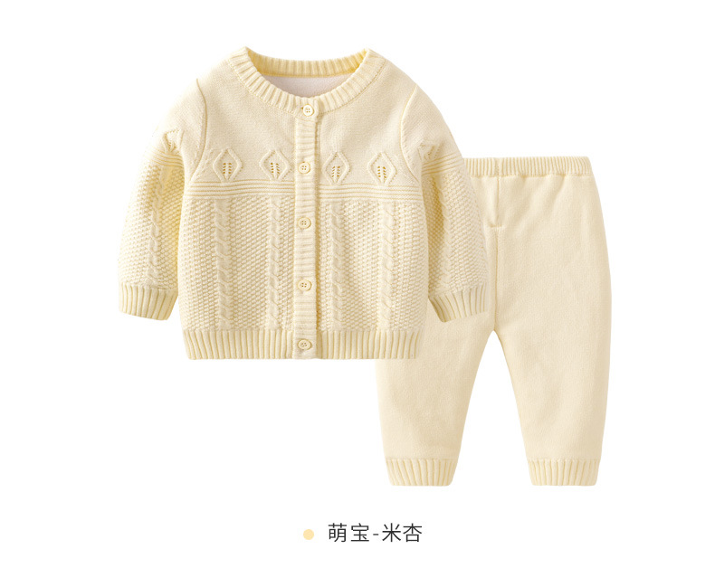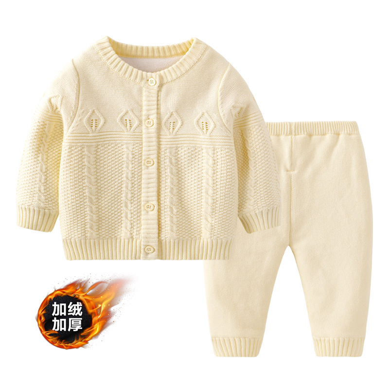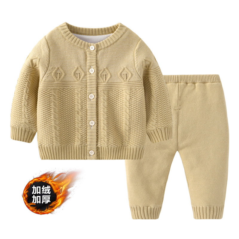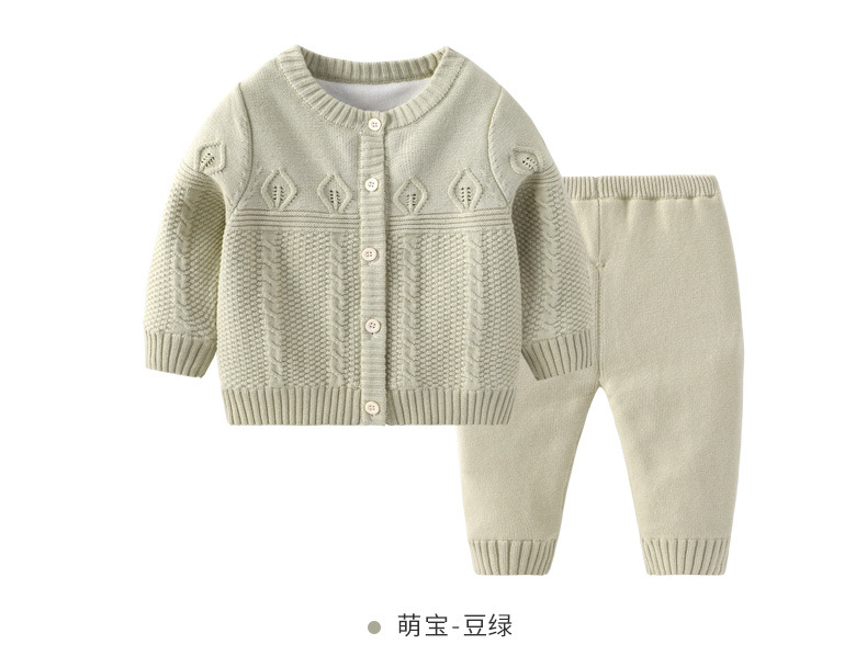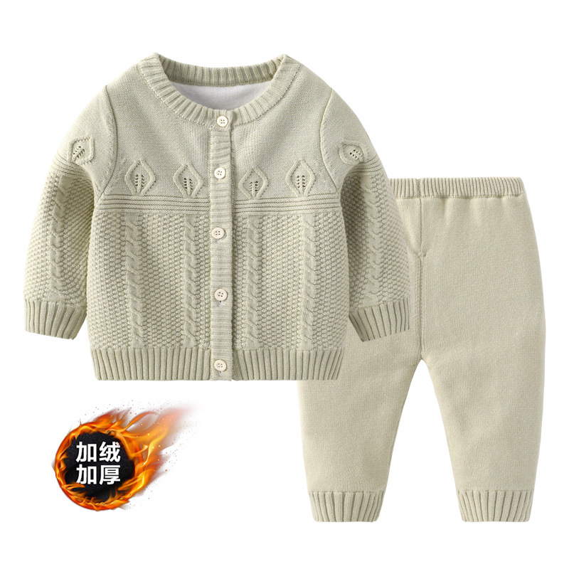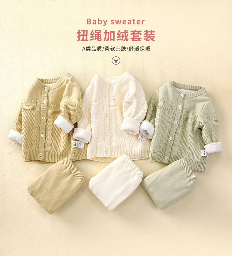 아기 겨울 옷 아기 기모 두꺼운 니트 세트 0-1-2-3 세 따뜻한 카디건 재킷 바지베이스
