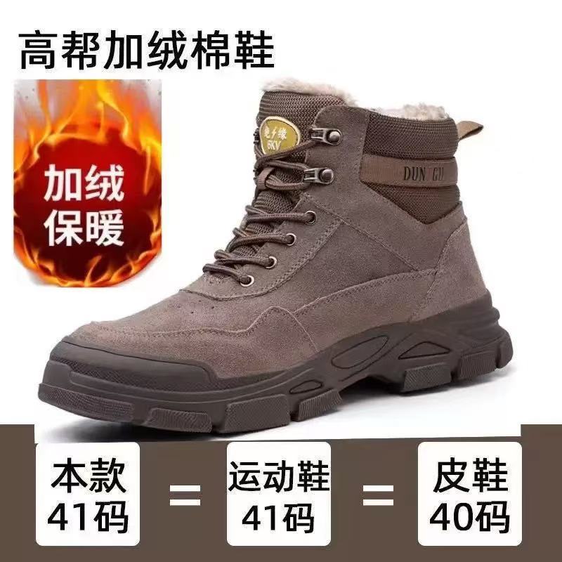 겨울 보호 신발면 패딩 신발 남성용 스매싱 방지 피어싱 플라스틱 강철 발가락 절연 안전 신발 기모 미끄럼 방지 내화 꽃스토어 가기