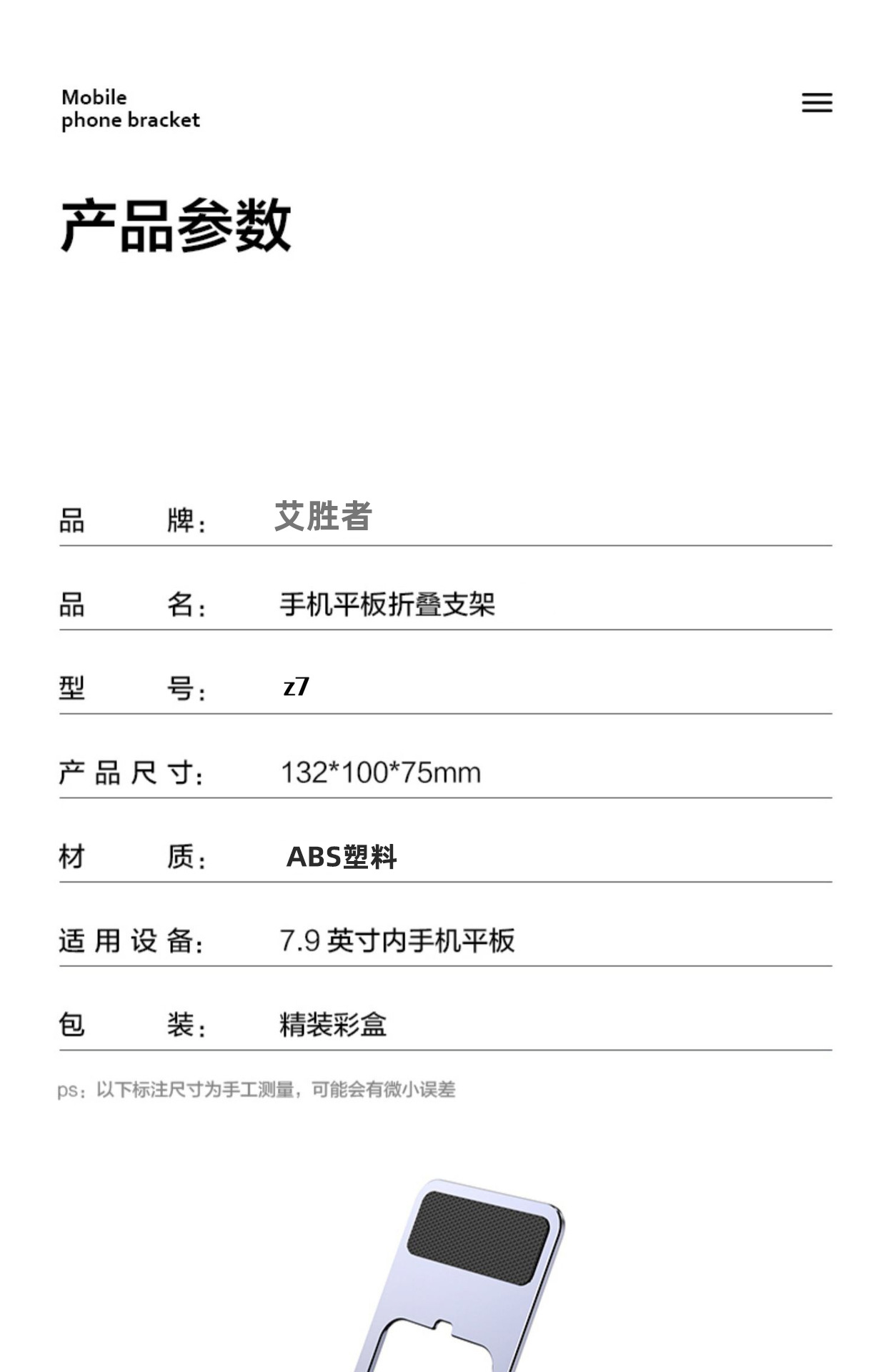 Z7 휴대 전화 스탠드 휴대용 게으른 태블릿 접이식 스탠드 창조적 인 데스크탑 휴대 전화 스탠드 로고 인쇄 도매스토어 가기