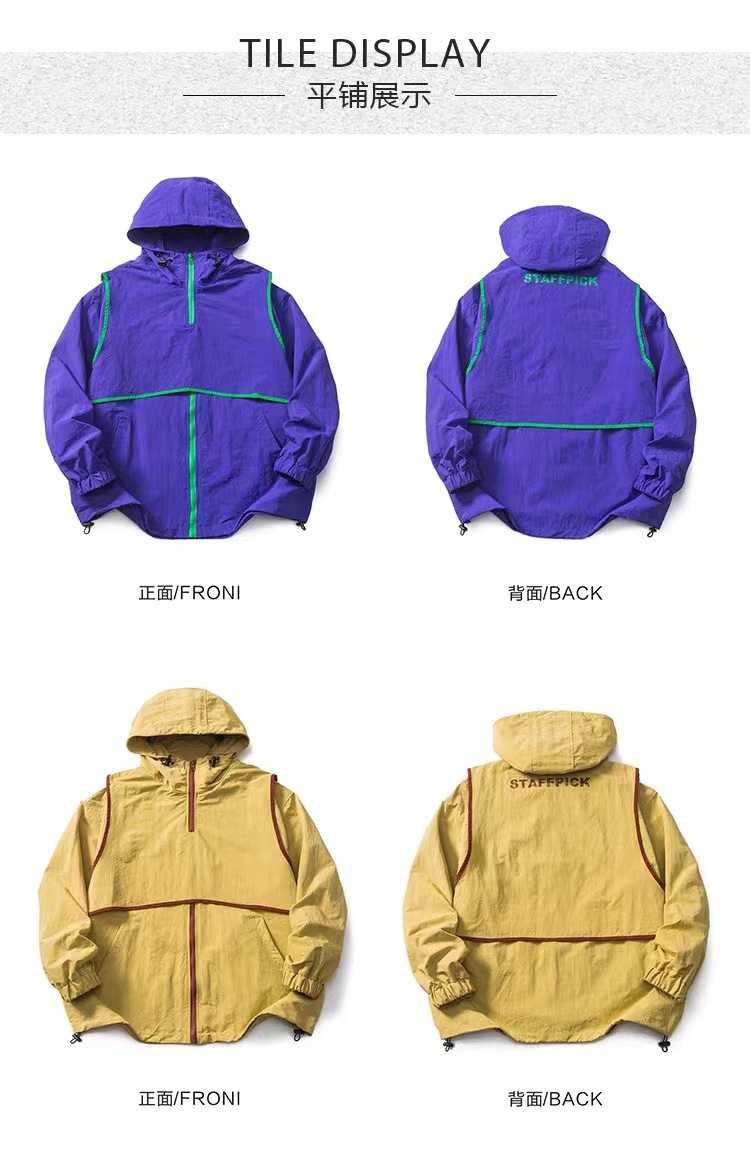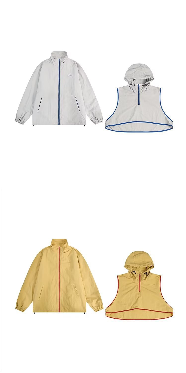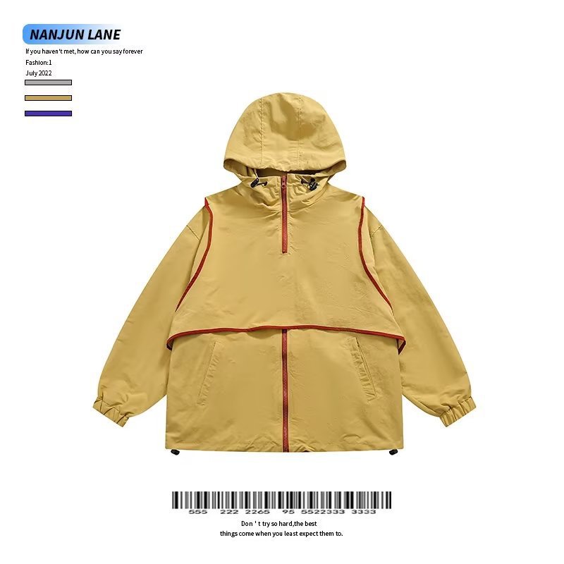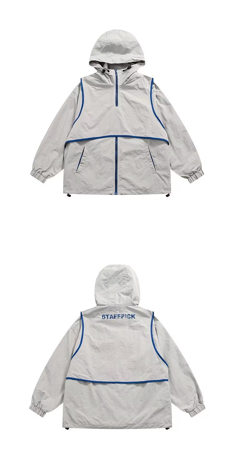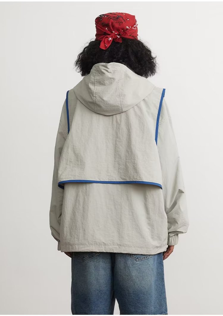 미국 복고풍 트렌디 브랜드 대비 색상 분리 조끼 후드 재킷 남성용 봄과 가을 디자인 감각 기능성 외부스토어 가기