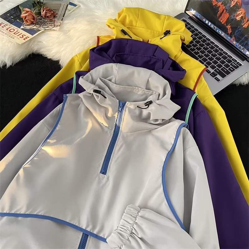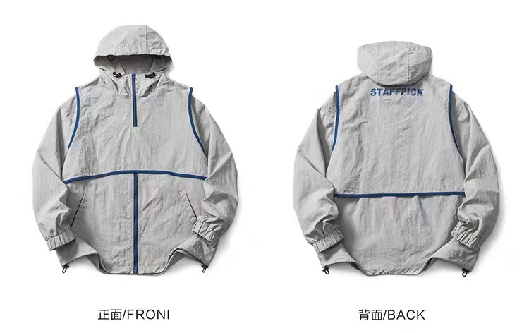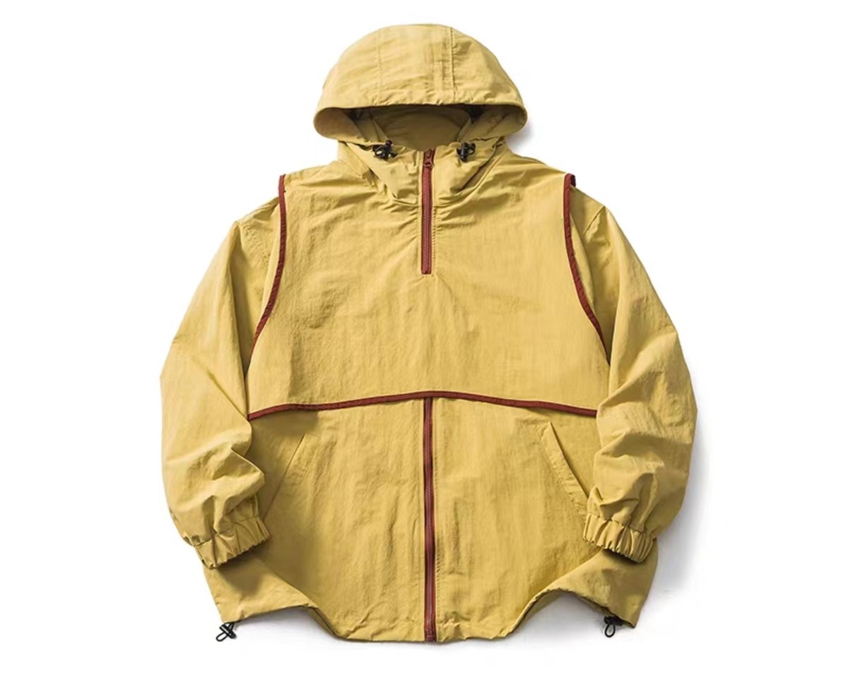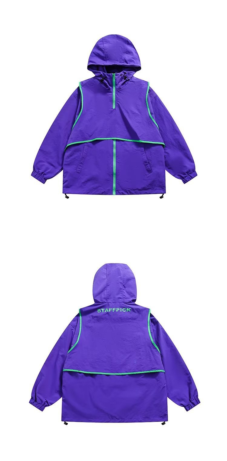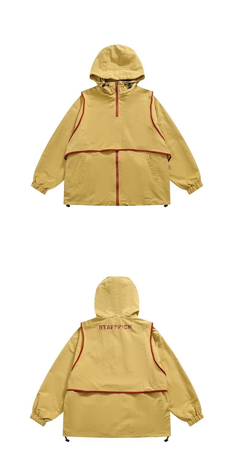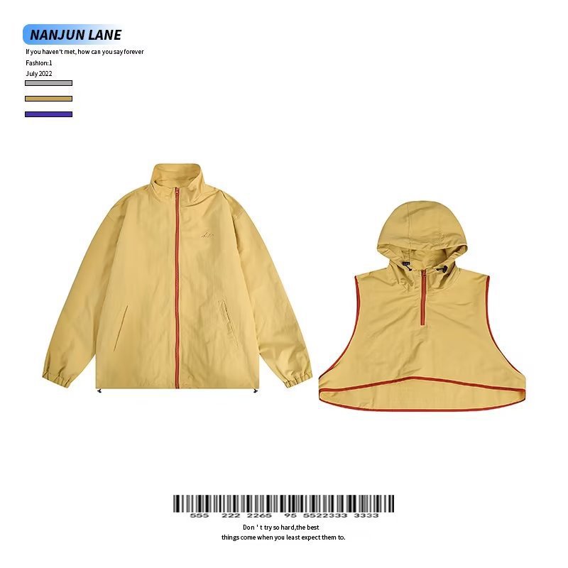 미국 복고풍 트렌디 브랜드 대비 색상 분리 조끼 후드 재킷 남성용 봄과 가을 디자인 감각 기능성 외부스토어 가기