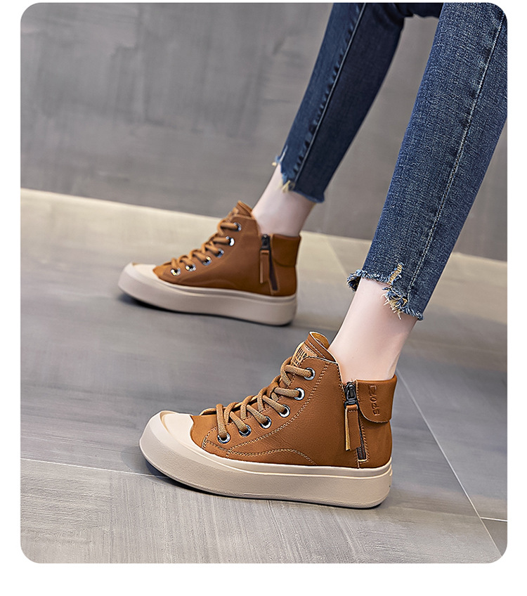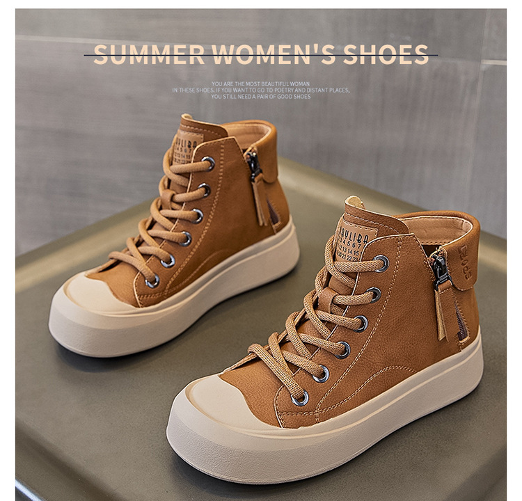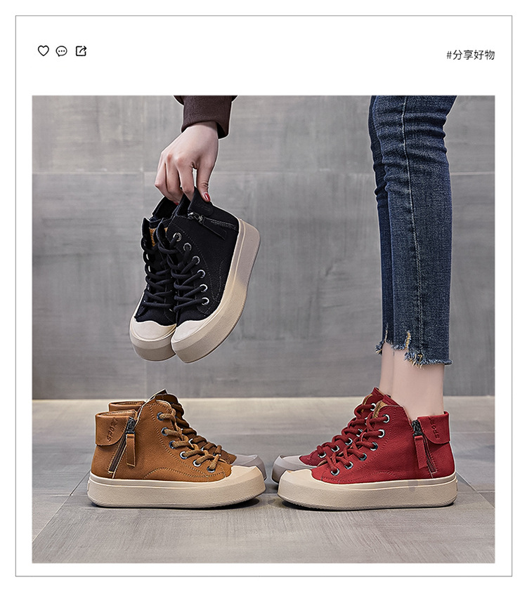 정품 가죽 소가죽 신발 여성용 소프트 솔 웨스턴 스타일 2023 가을 새로운 모든 경기 스포츠 캐주얼 스니커즈 하이탑 통기성 싱글 레이어 신발스토어 가기