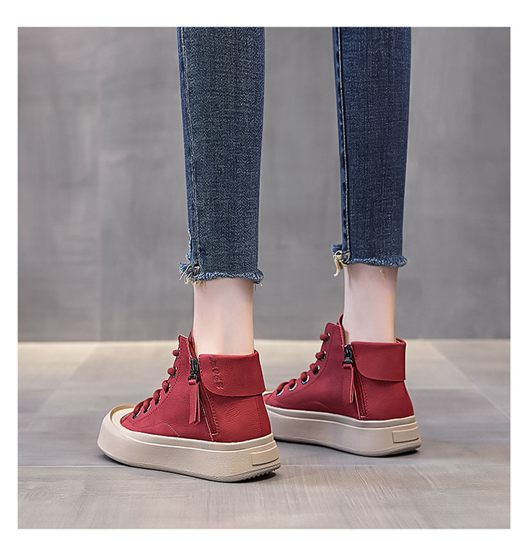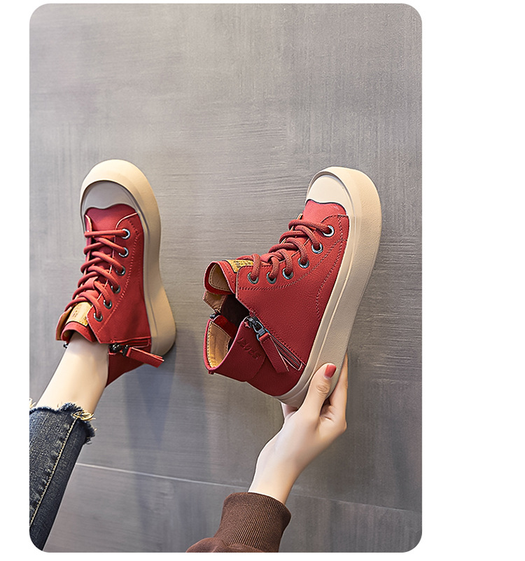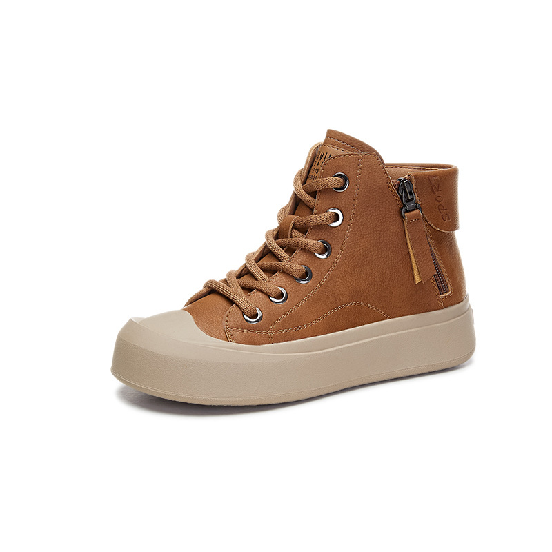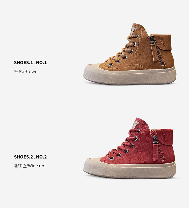 정품 가죽 소가죽 신발 여성용 소프트 솔 웨스턴 스타일 2023 가을 새로운 모든 경기 스포츠 캐주얼 스니커즈 하이탑 통기성 싱글 레이어 신발