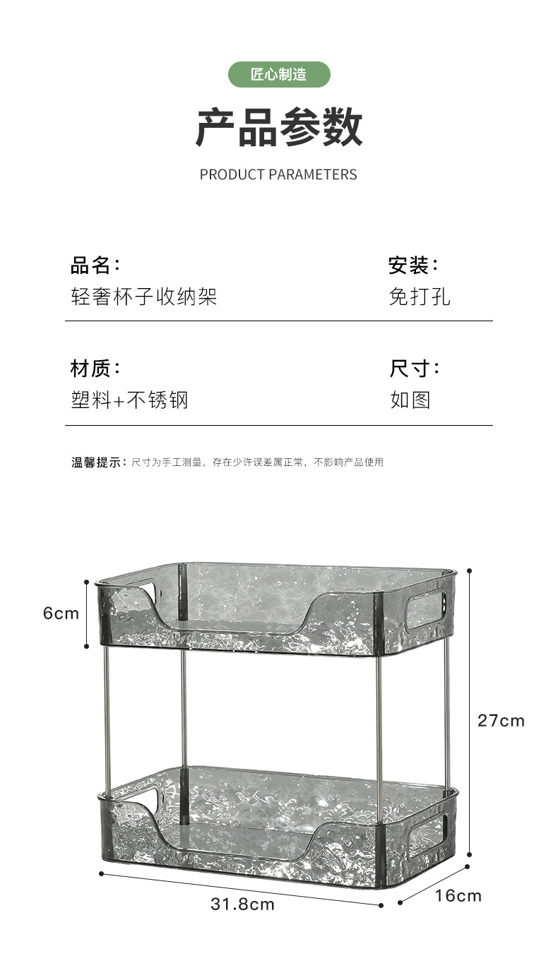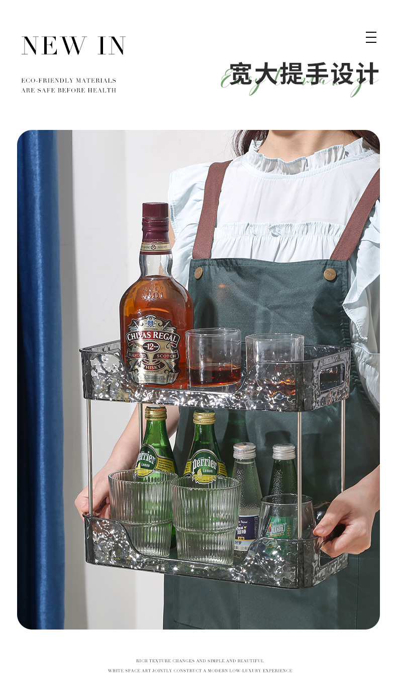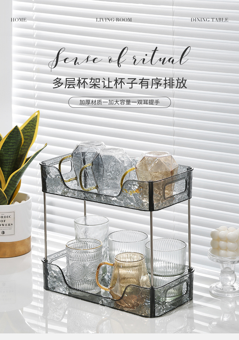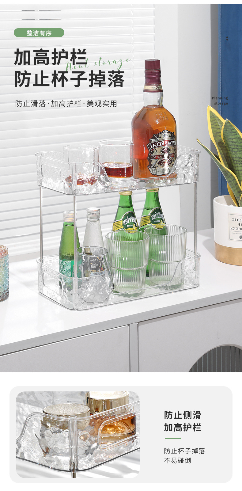 Y ZT2289 빙하 패턴 스토리지 랙 거실 티 컵 홀더 워터 컵 홀더 스토리지 랙 트레이 커피 컵 랙 더블 레이어스토어 가기