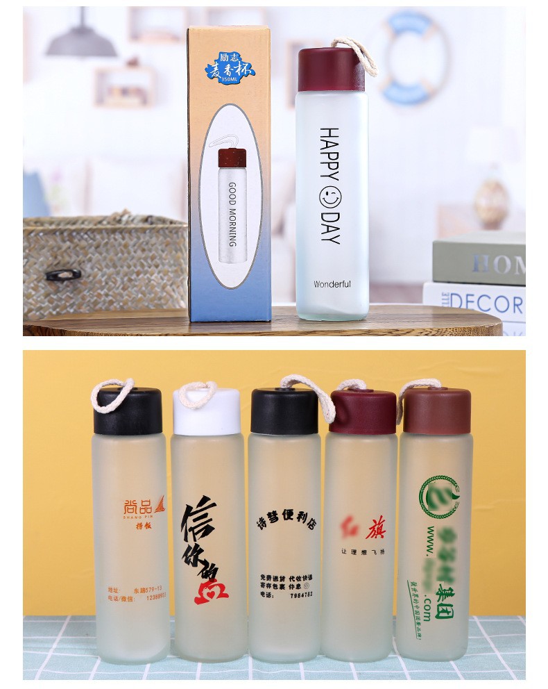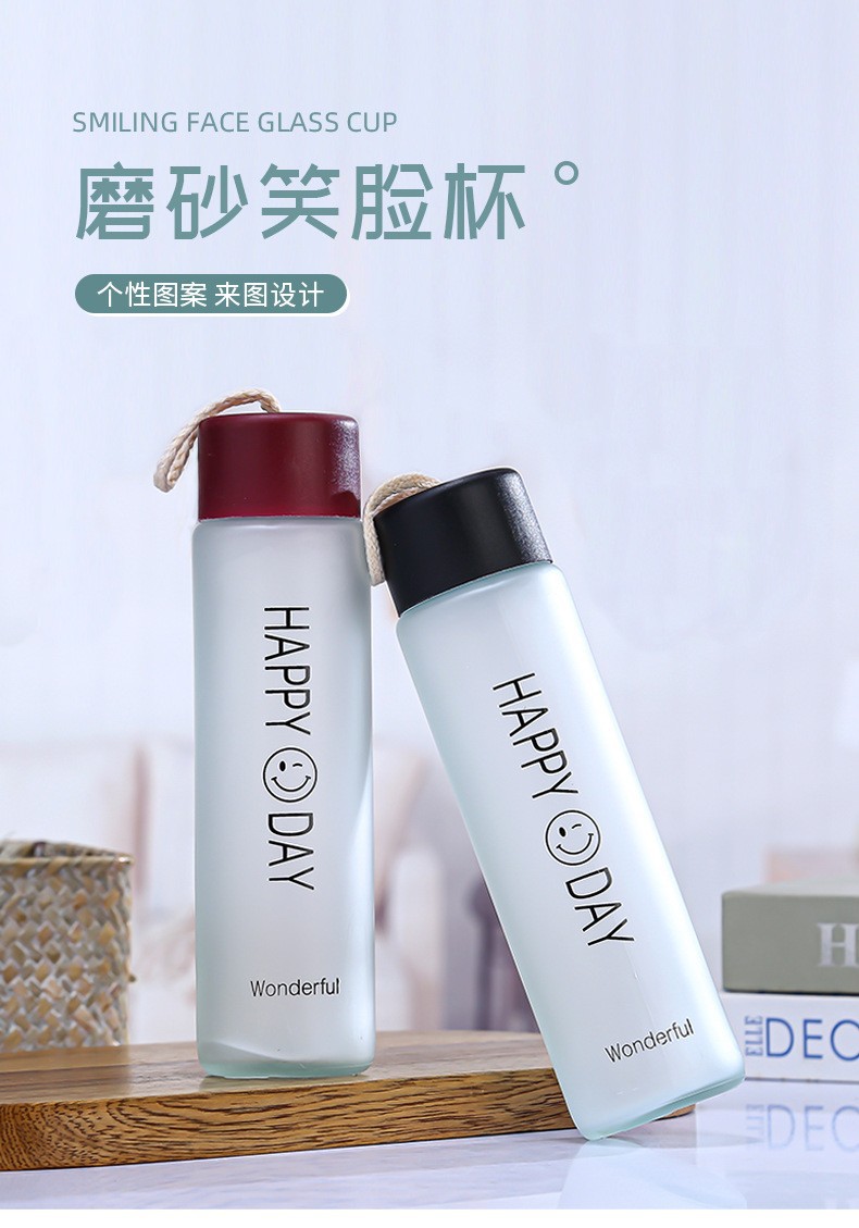 유리 물컵, 반투명 유리 웃는 얼굴 물컵, 광고컵, 판촉용 선물컵, 대마줄 손잡이 유리컵