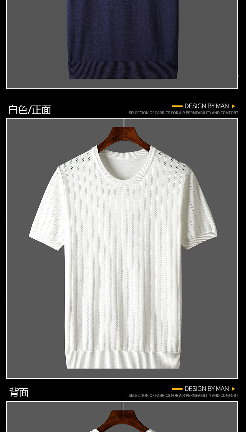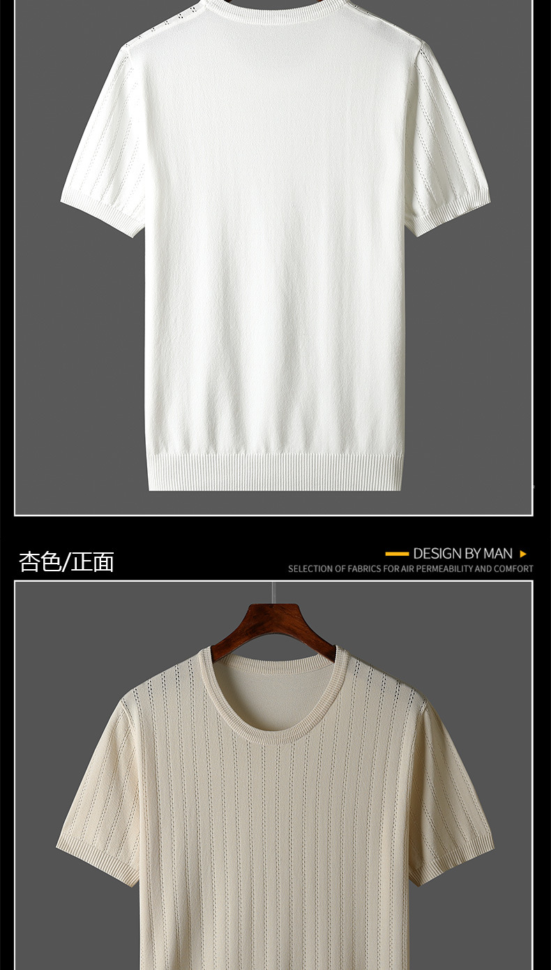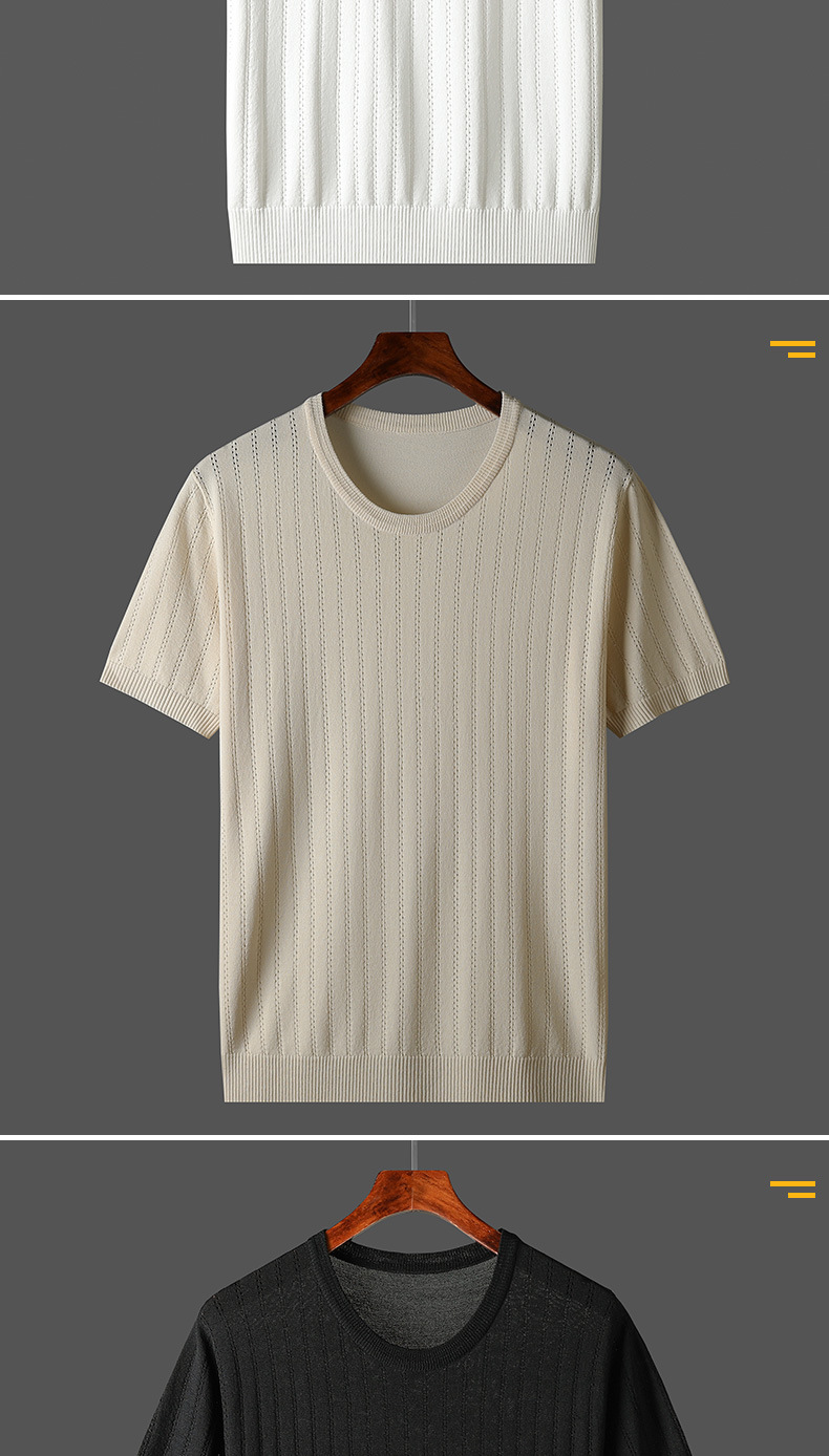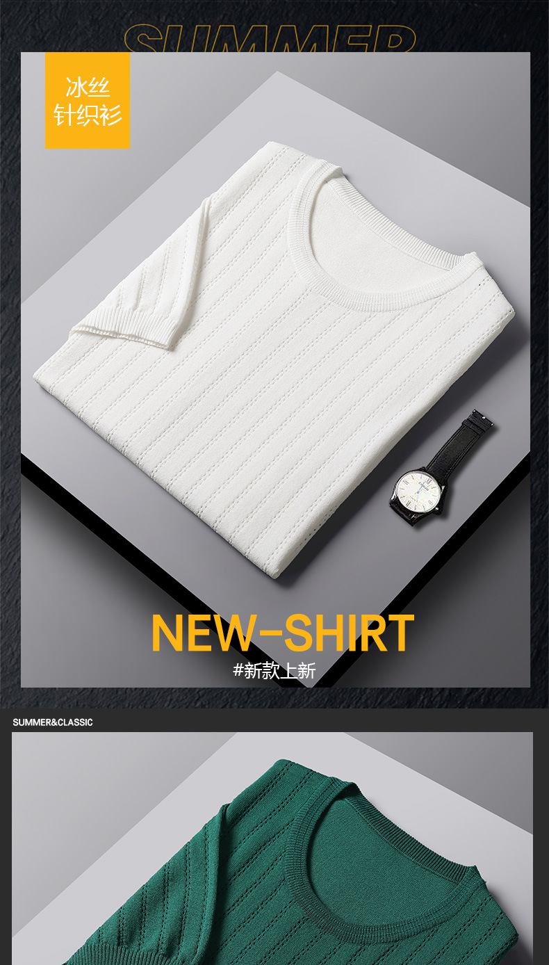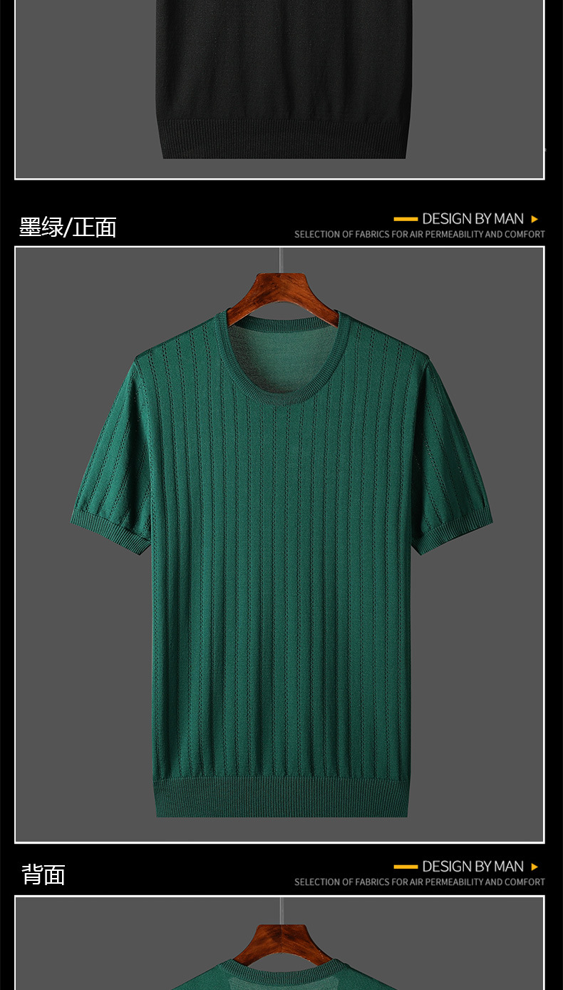 2025년 신상 여름 빈티지 아이스 실크 니트 남성 반팔 티셔츠 얇은 대형 사이즈 트렌디 통기성 라운드넥 스웨터스토어 가기