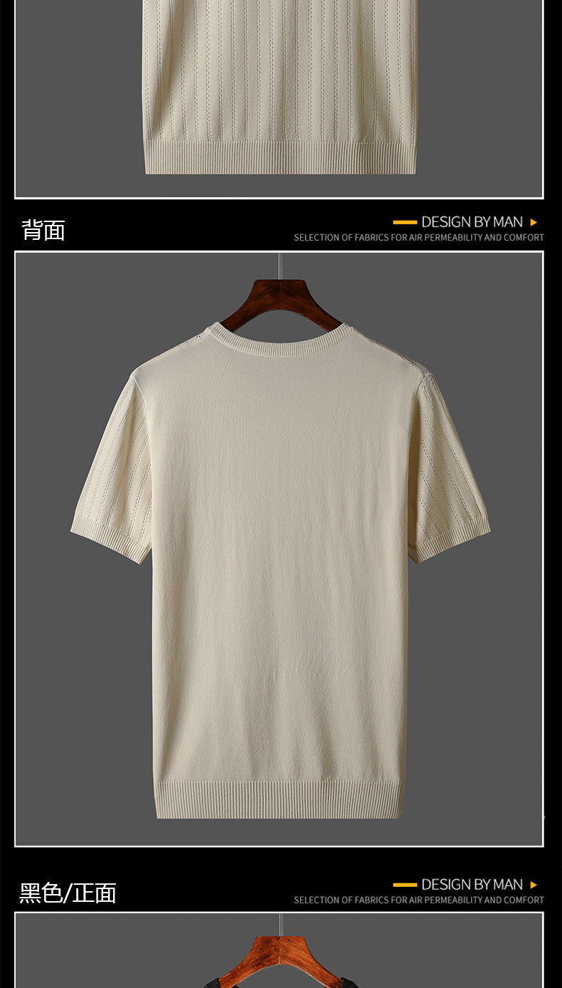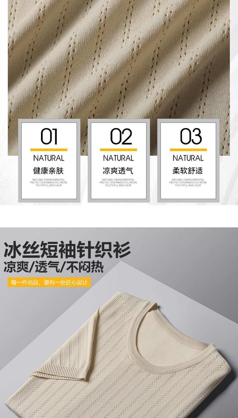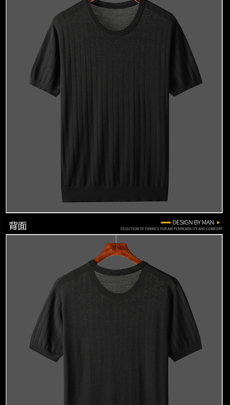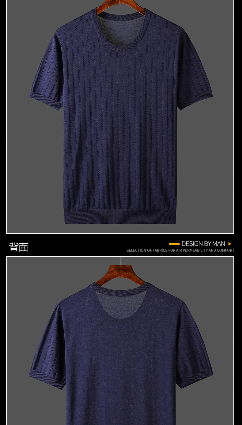 2025년 신상 여름 빈티지 아이스 실크 니트 남성 반팔 티셔츠 얇은 대형 사이즈 트렌디 통기성 라운드넥 스웨터스토어 가기