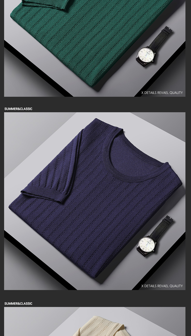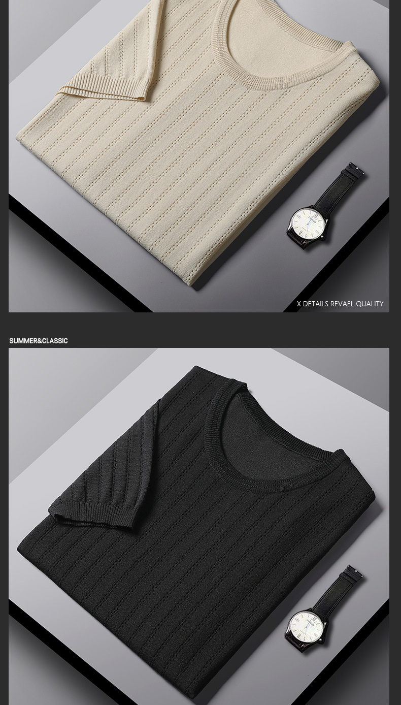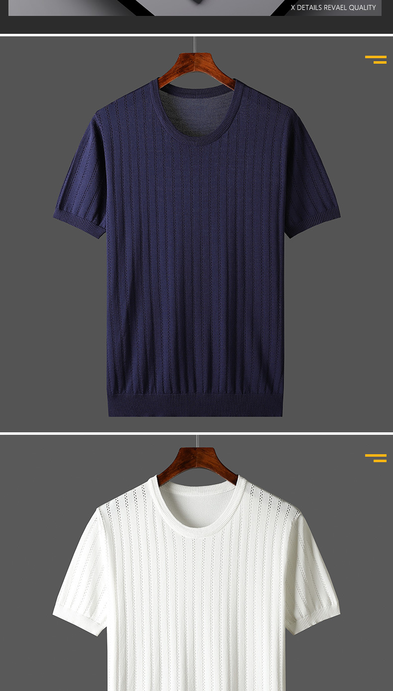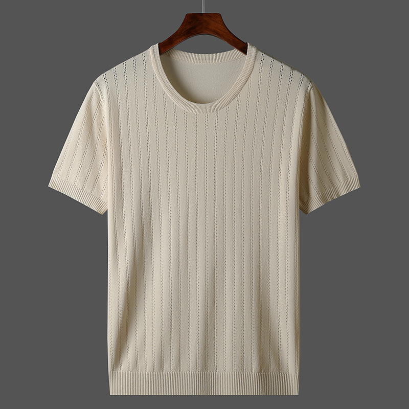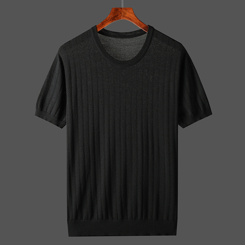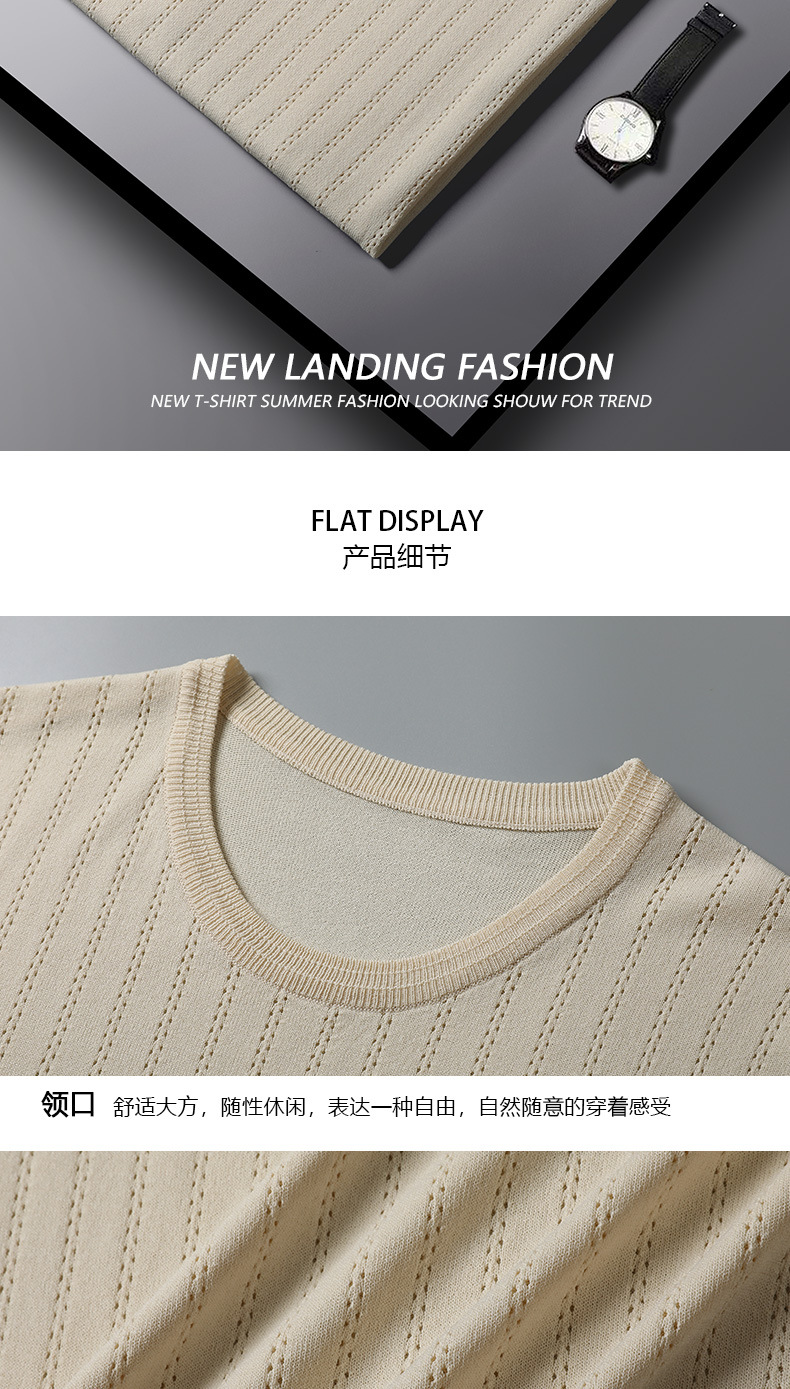 2025년 신상 여름 빈티지 아이스 실크 니트 남성 반팔 티셔츠 얇은 대형 사이즈 트렌디 통기성 라운드넥 스웨터스토어 가기