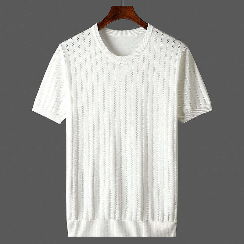 2025년 신상 여름 빈티지 아이스 실크 니트 남성 반팔 티셔츠 얇은 대형 사이즈 트렌디 통기성 라운드넥 스웨터
