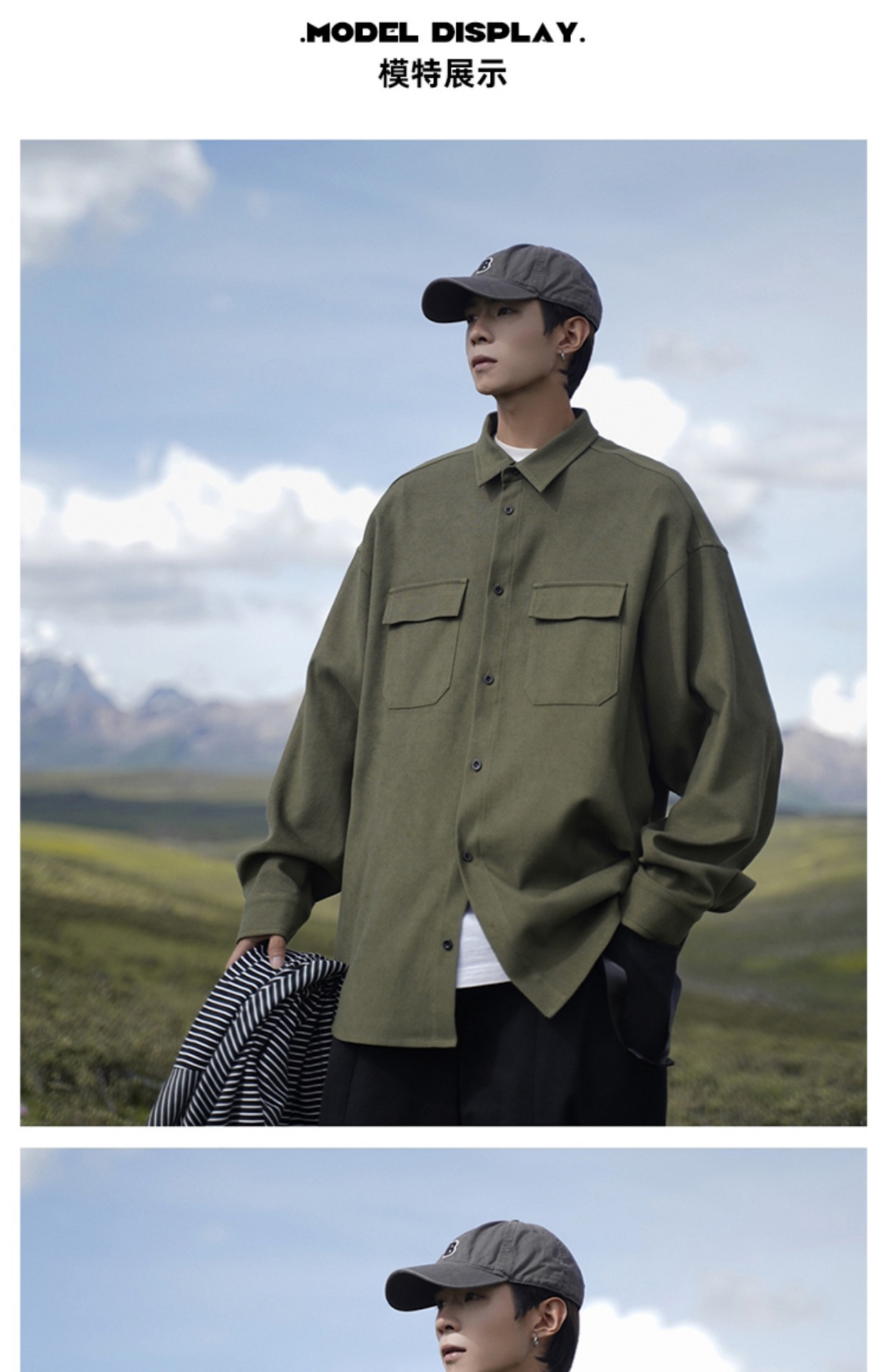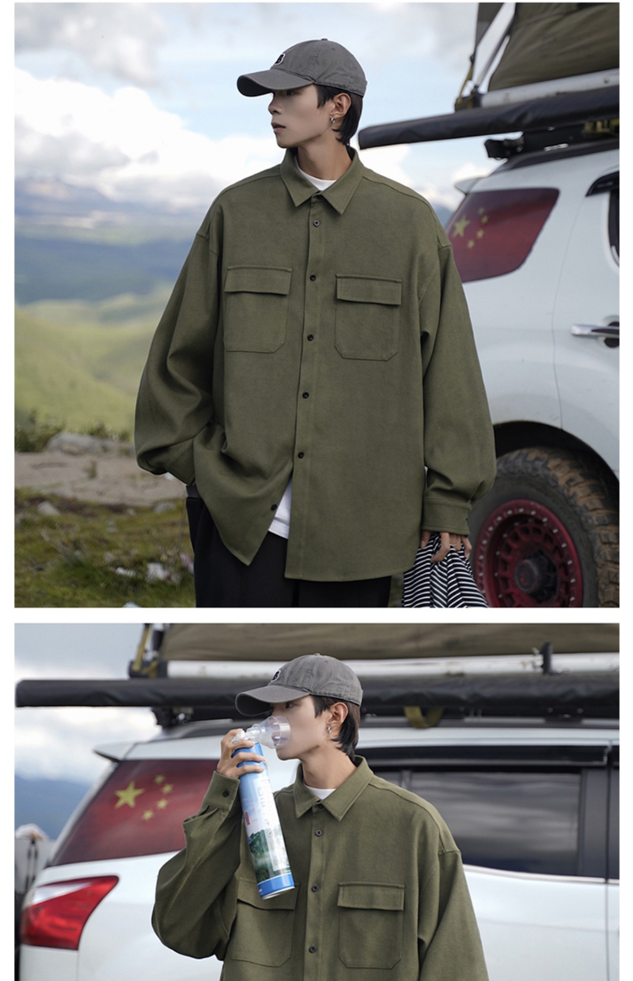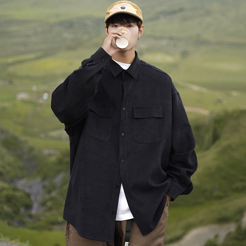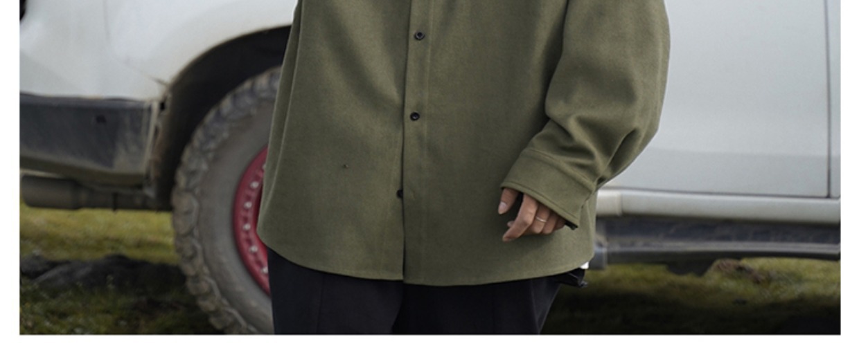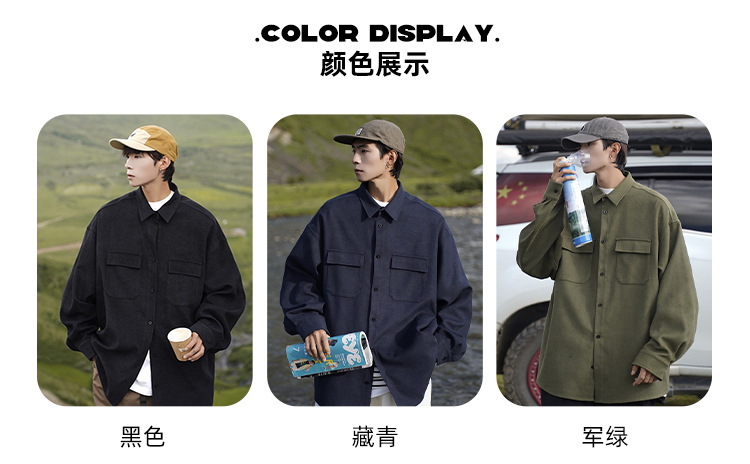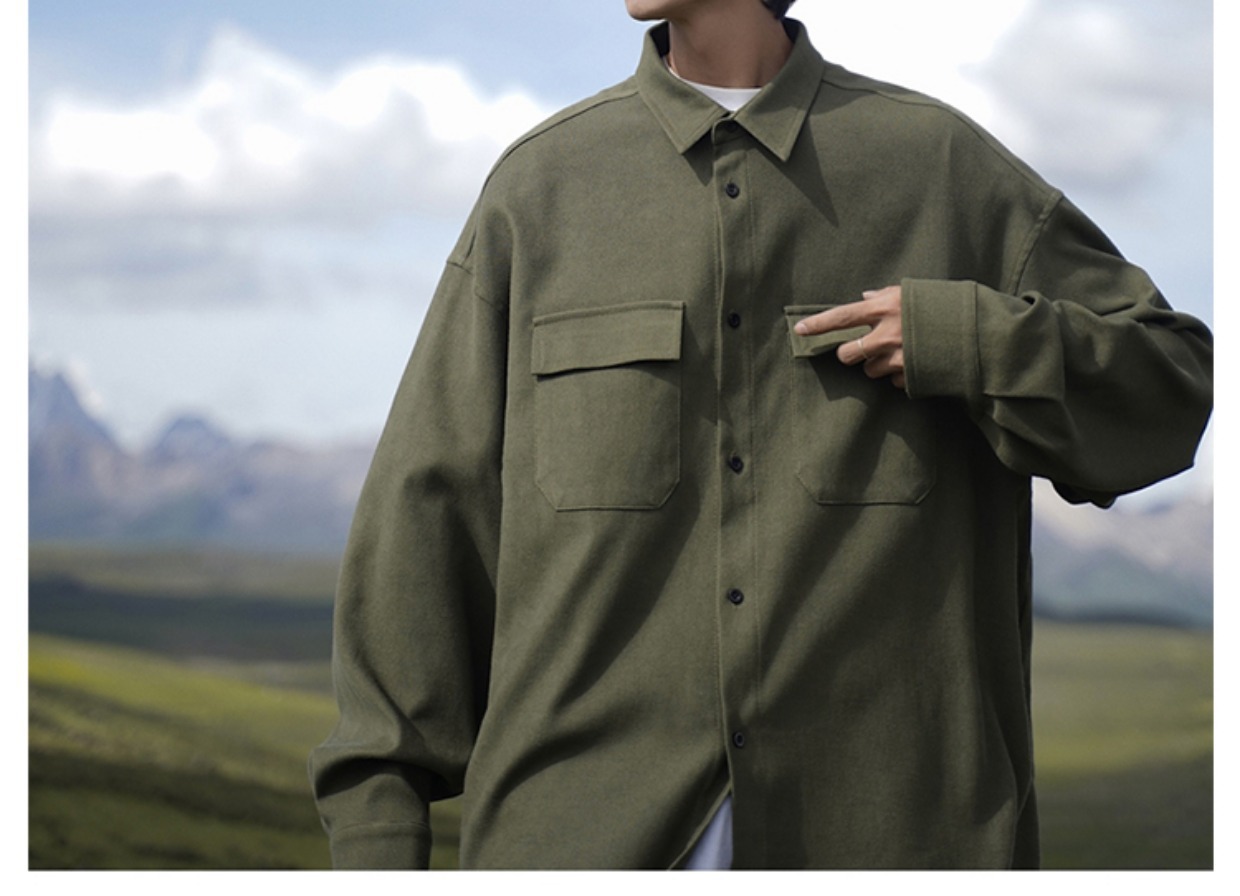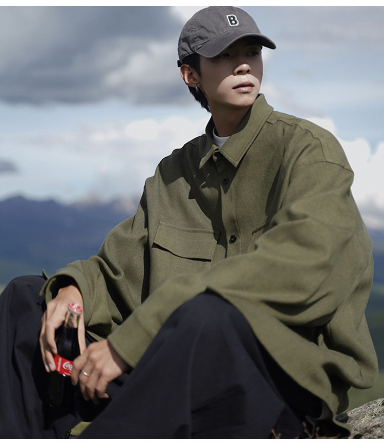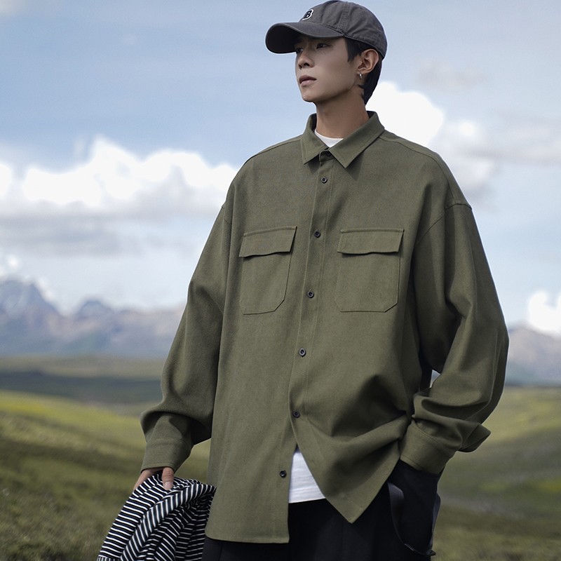 日系cityboy长袖衬衫男款春秋季工装宽松大码潮牌潮流军绿色外套