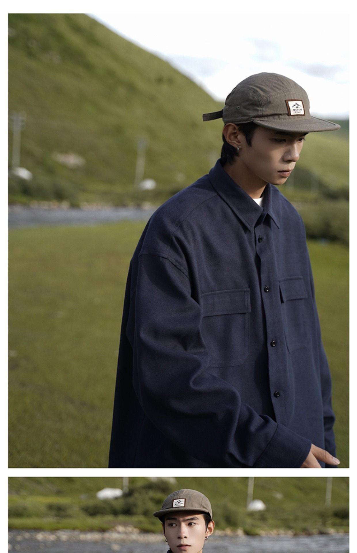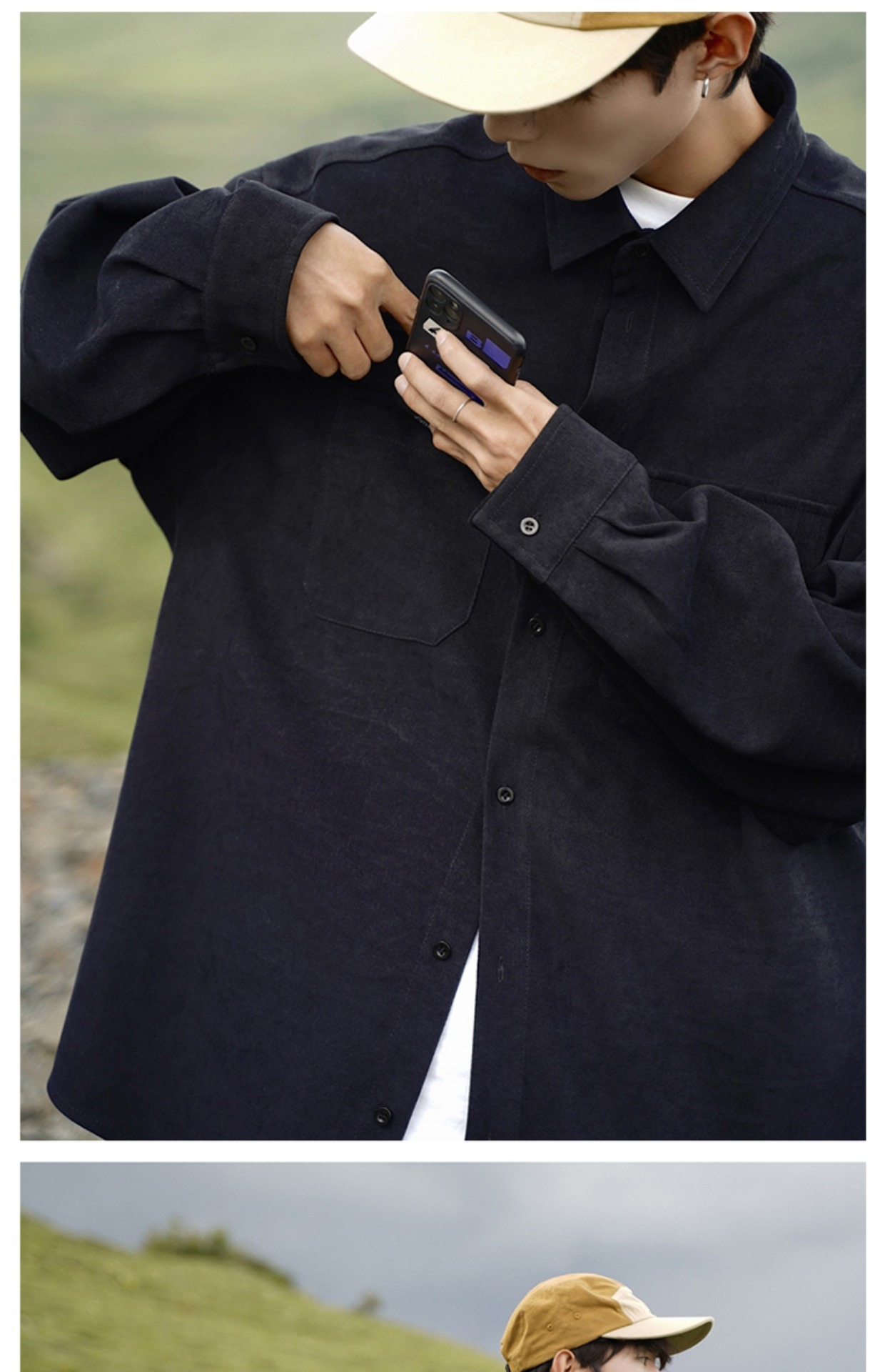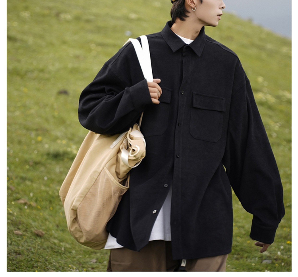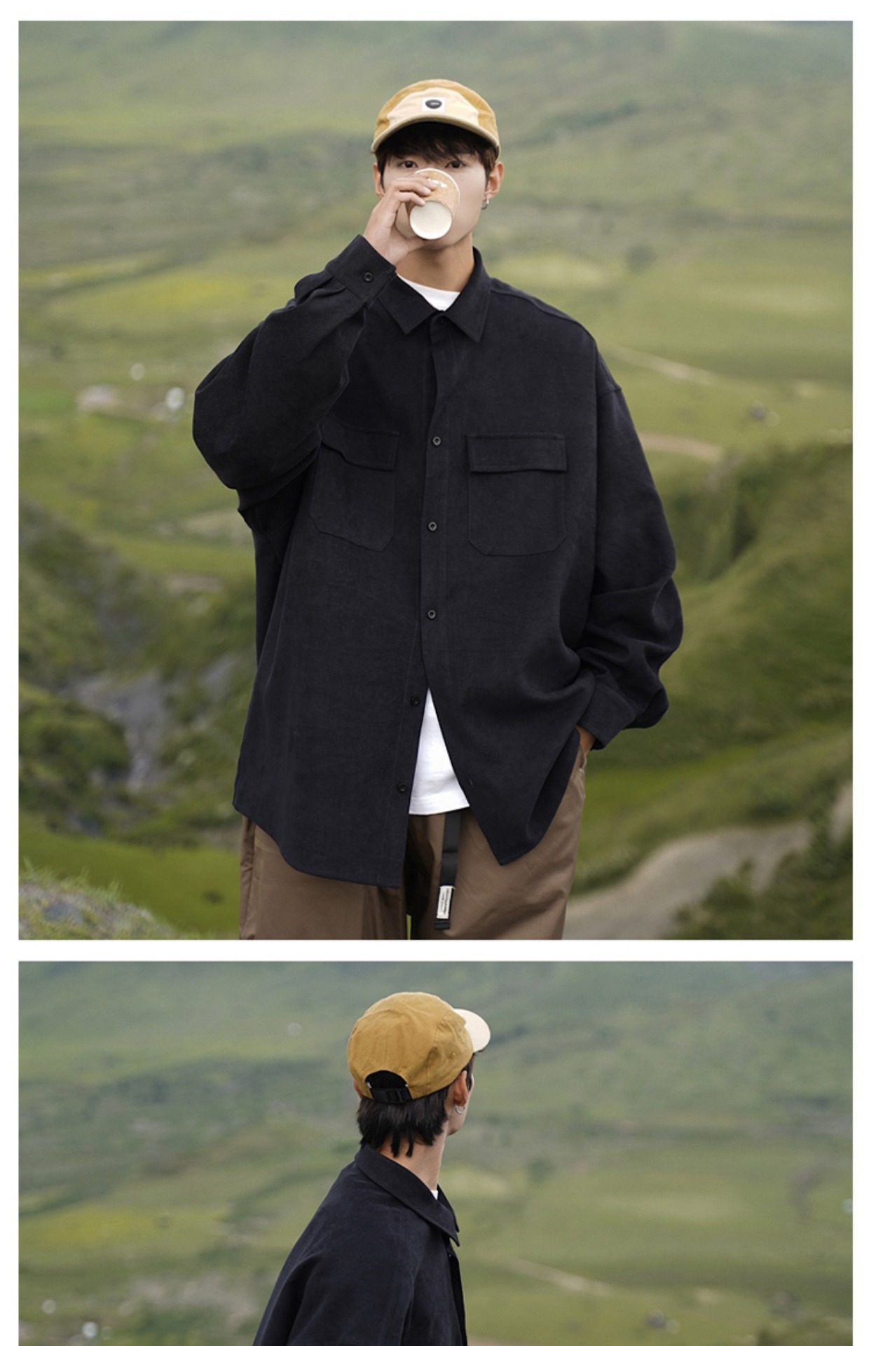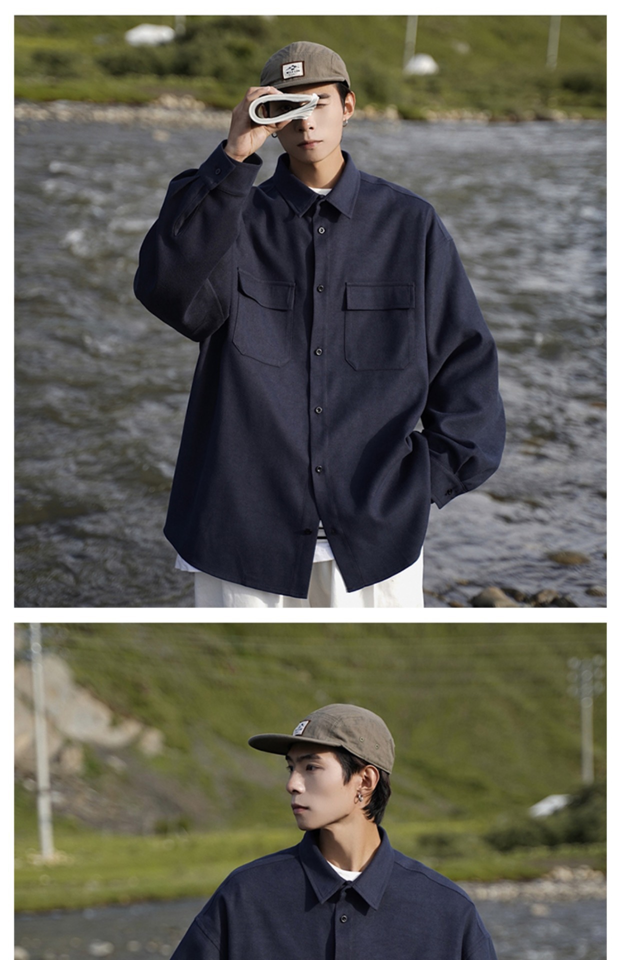 日系cityboy长袖衬衫男款春秋季工装宽松大码潮牌潮流军绿色外套