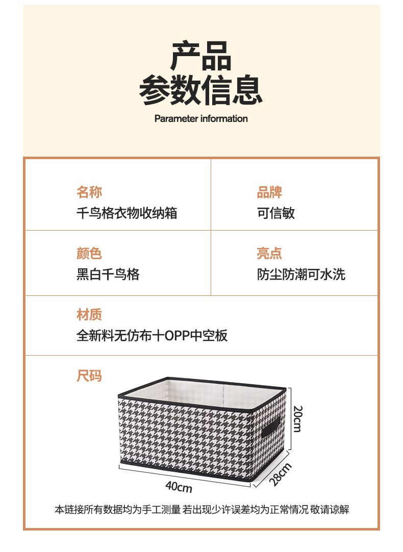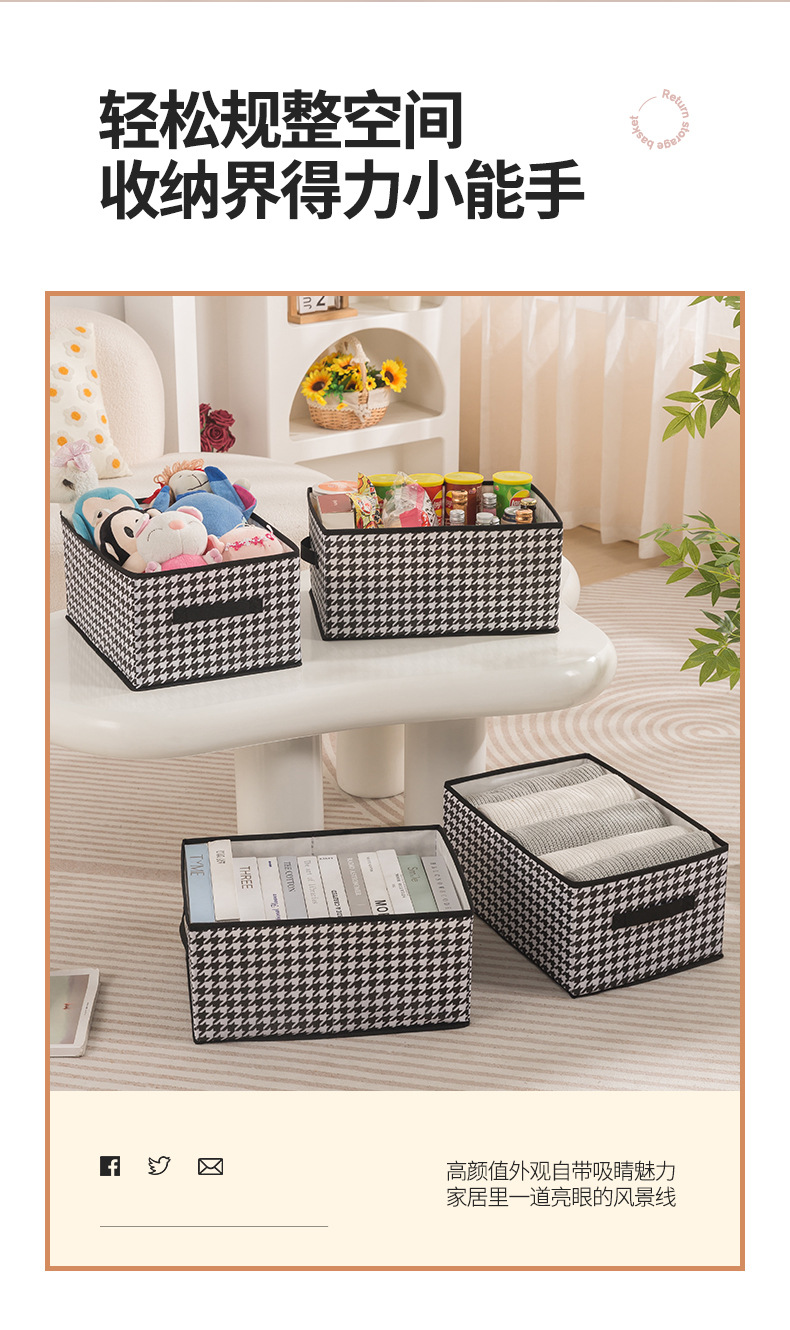 블랙 물떼새 격자 무늬 수납함 생활용품 기숙사 의류 수납 접이식 침실 옷장 수납