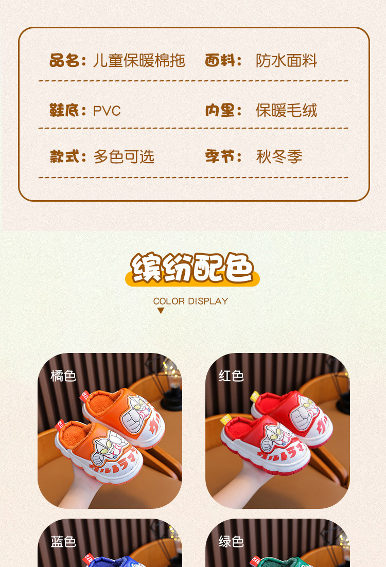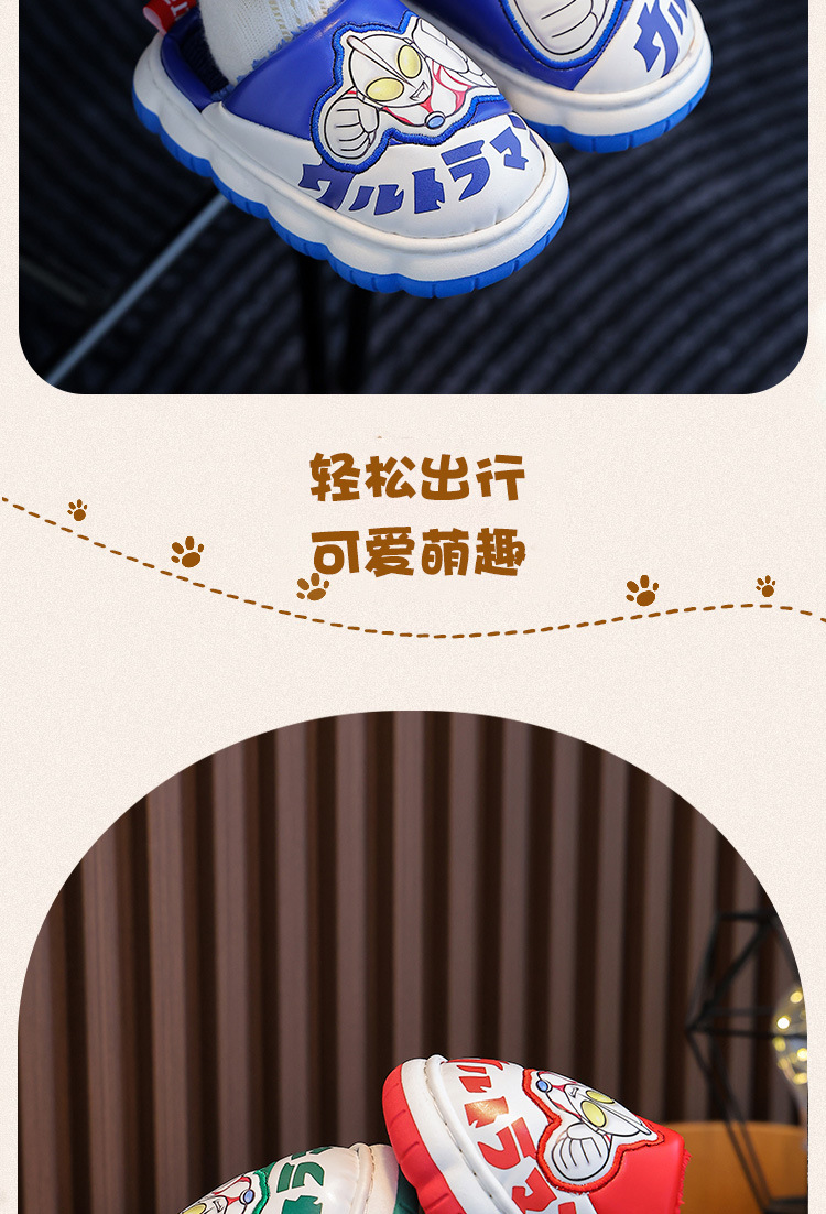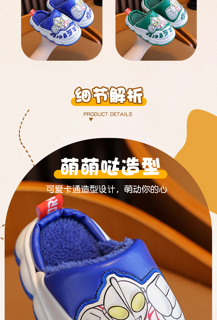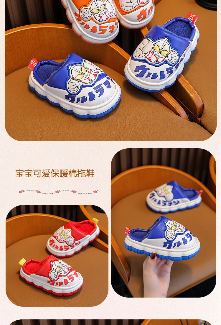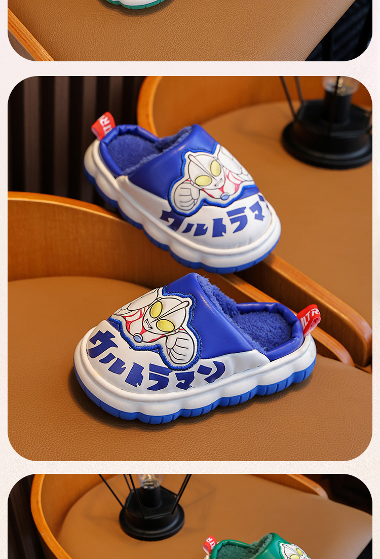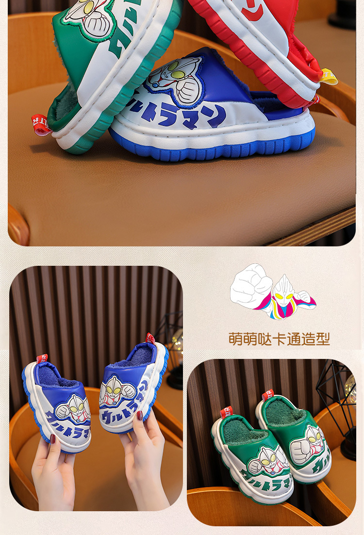 울트라맨 어린이 슬리퍼 남아 겨울용 아기 실내용 가정용 아동용 풋웨어 PU 가죽 여아용 면 슬리퍼 만화 스타일스토어 가기