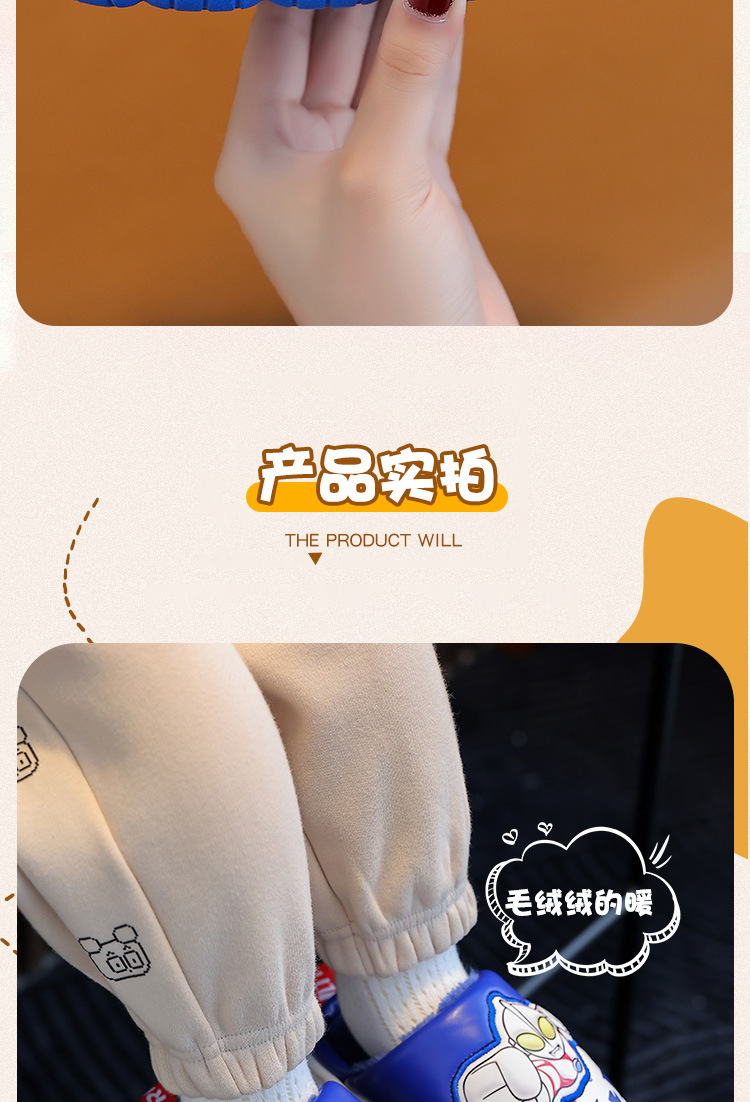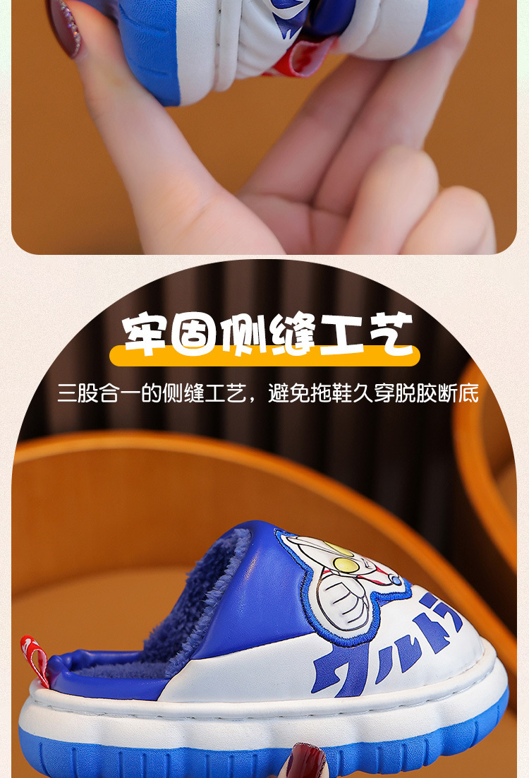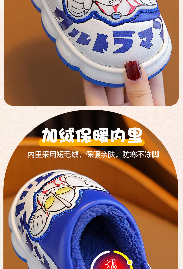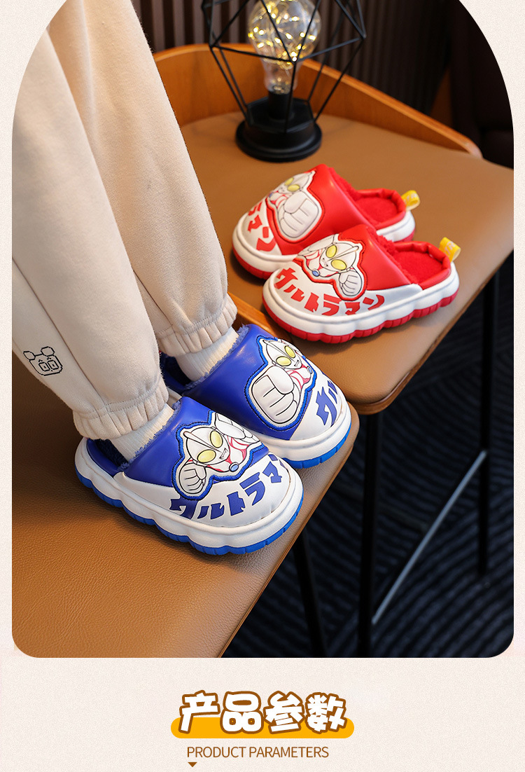 울트라맨 어린이 슬리퍼 남아 겨울용 아기 실내용 가정용 아동용 풋웨어 PU 가죽 여아용 면 슬리퍼 만화 스타일