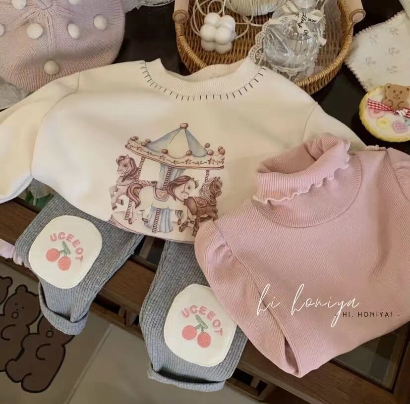 女童公主风打底裤新款洋气长裤女宝宝甜美风贴布可爱外穿秋款裤子