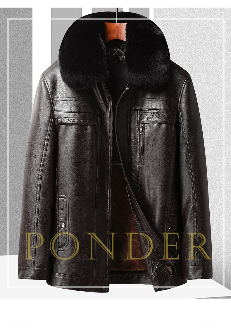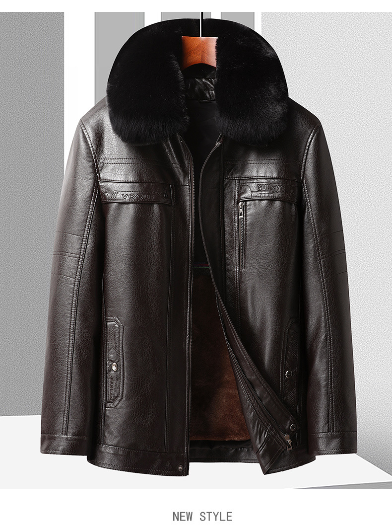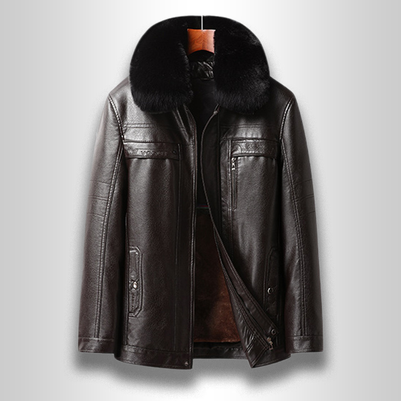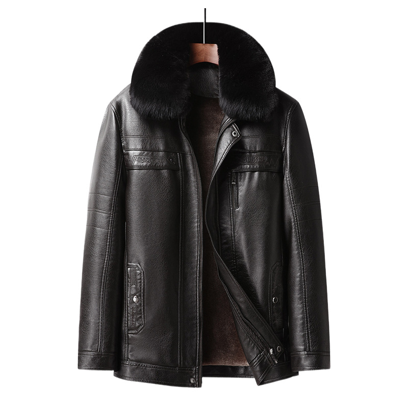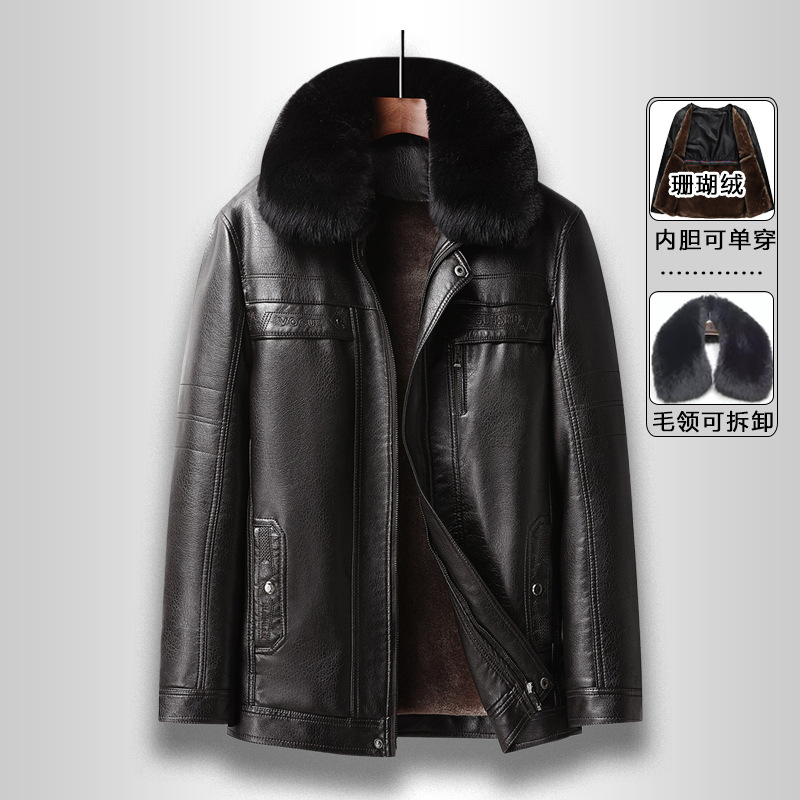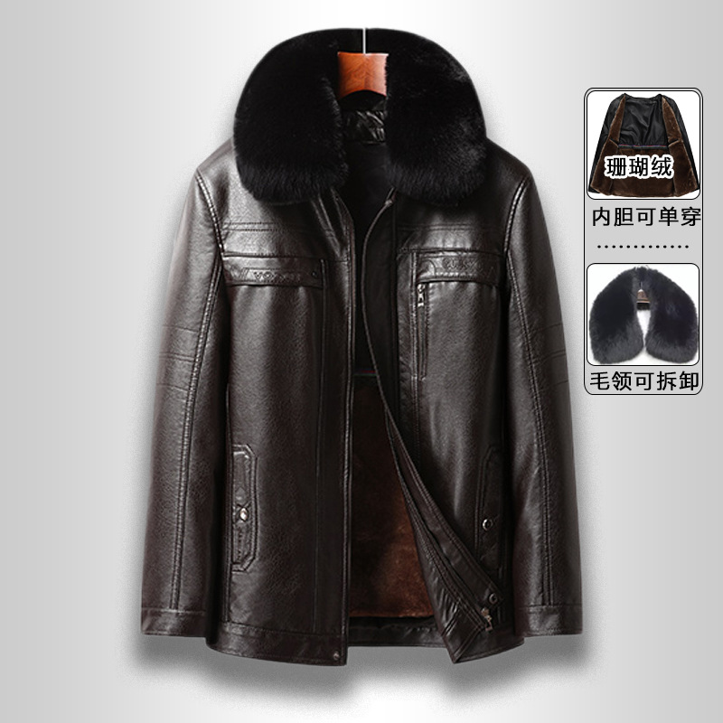 국경 간 플러스 사이즈 분리 가능한 라이너 남성 가죽 자켓 비즈니스 캐주얼 아빠의 가죽 자켓 기모 두꺼운 가죽 재킷