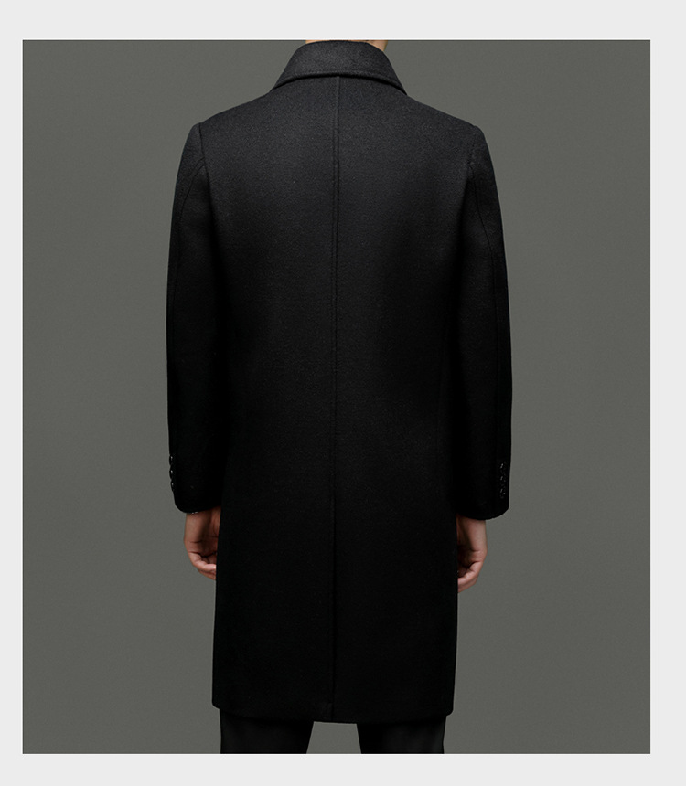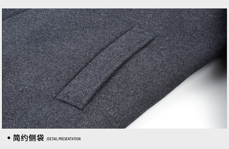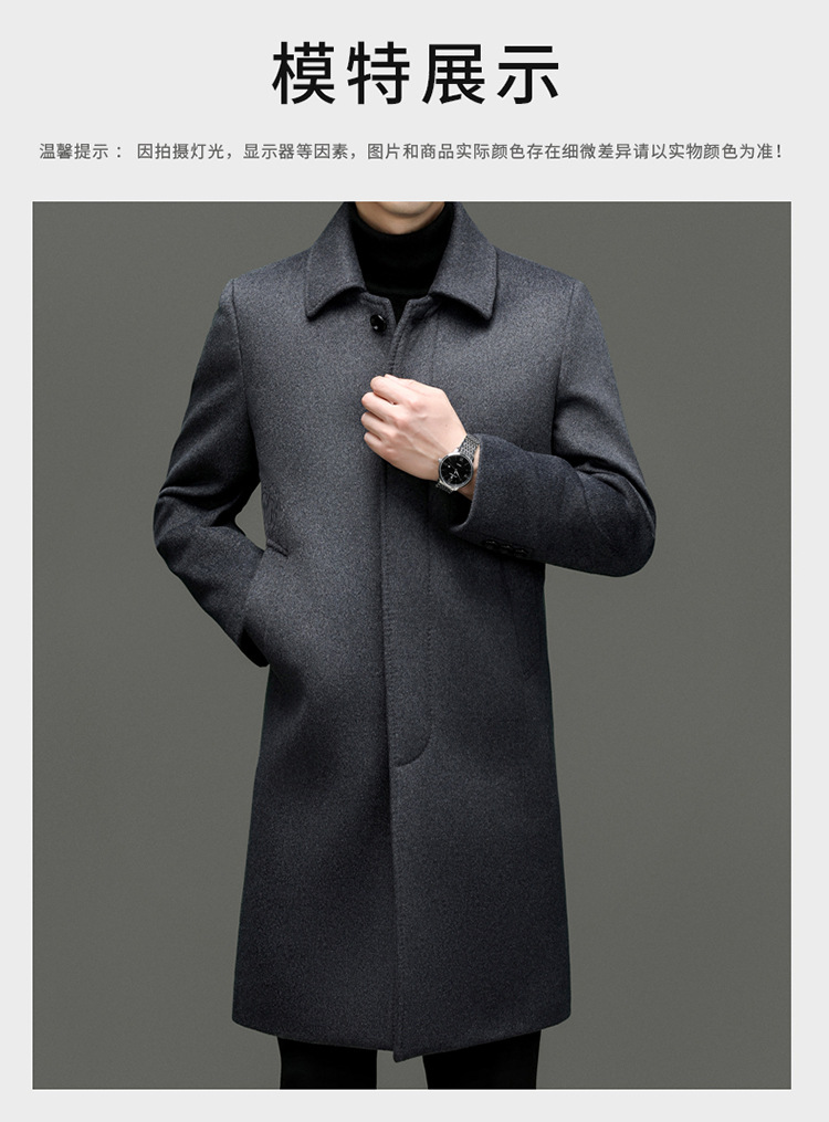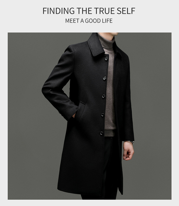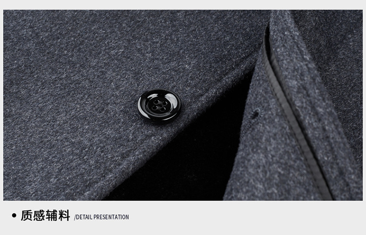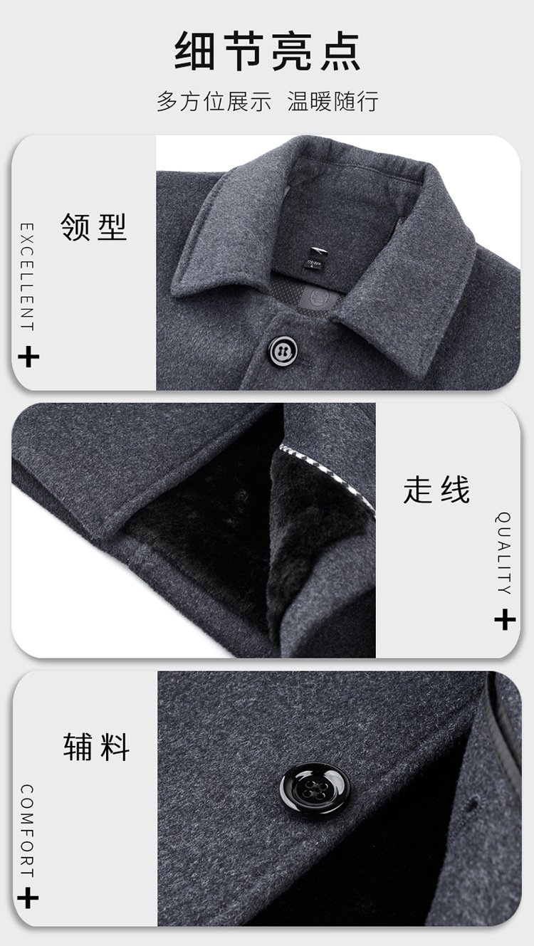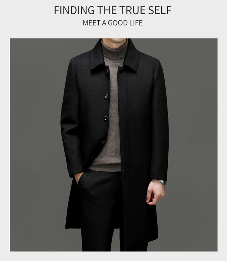 새로운 중간 길이 모직 모직 코트 남성 겨울 아빠 착용 비즈니스 캐주얼 플러시 모직 윈드 브레이커 재킷