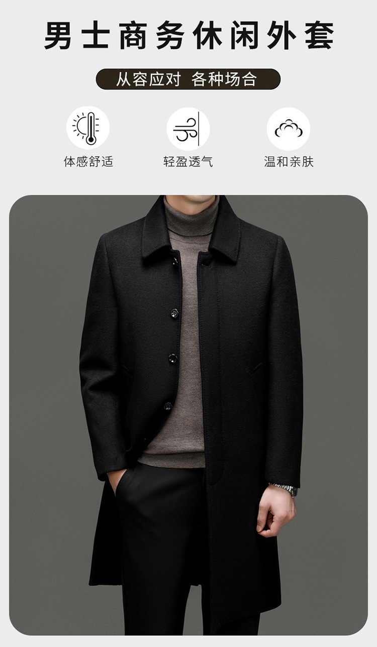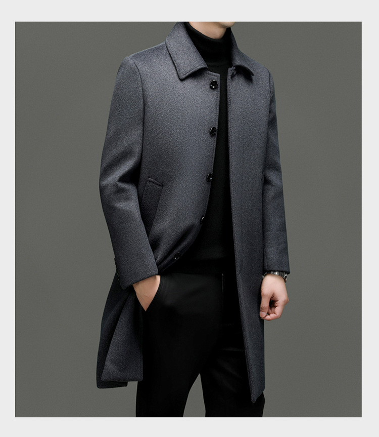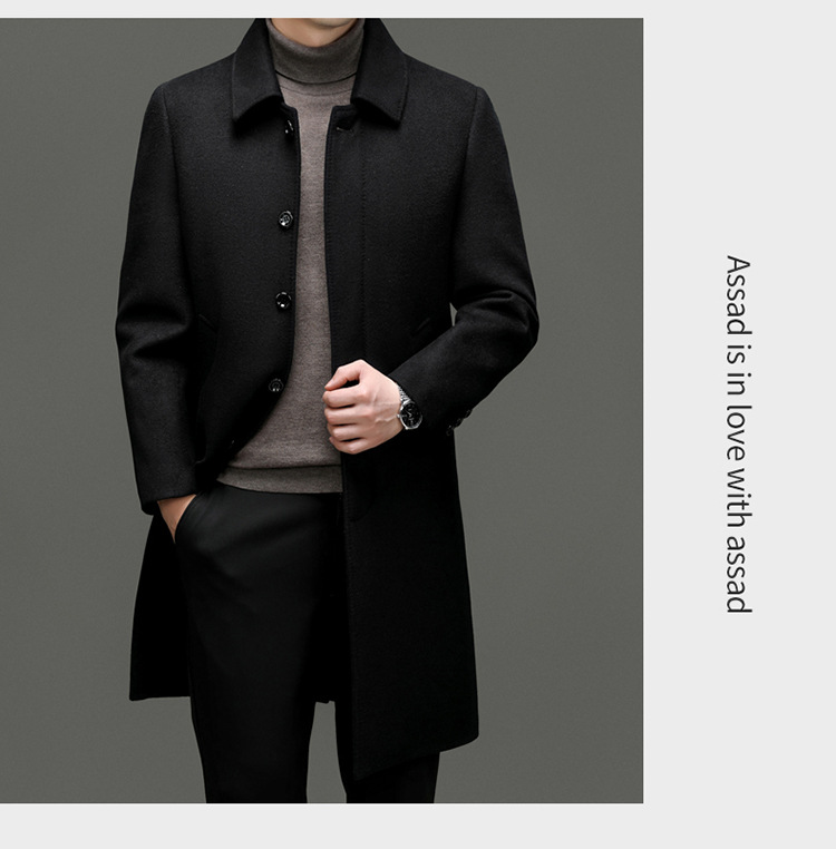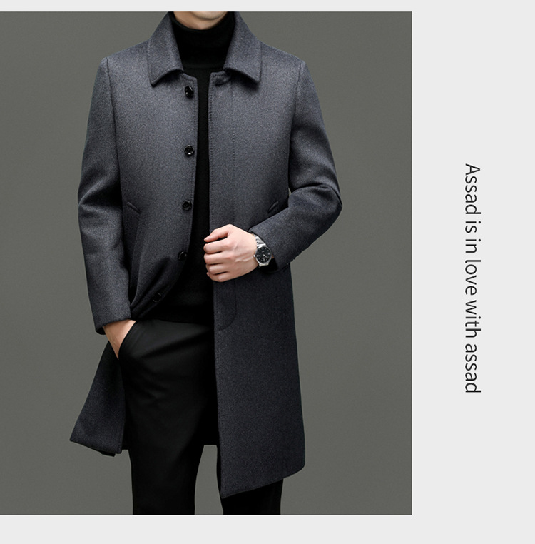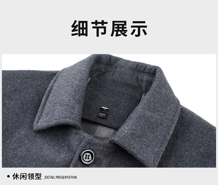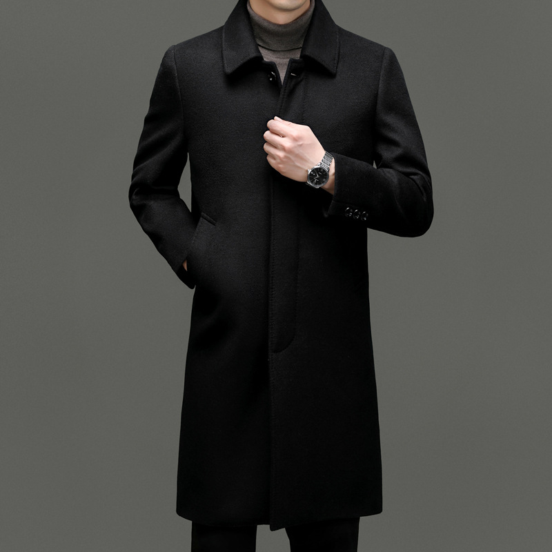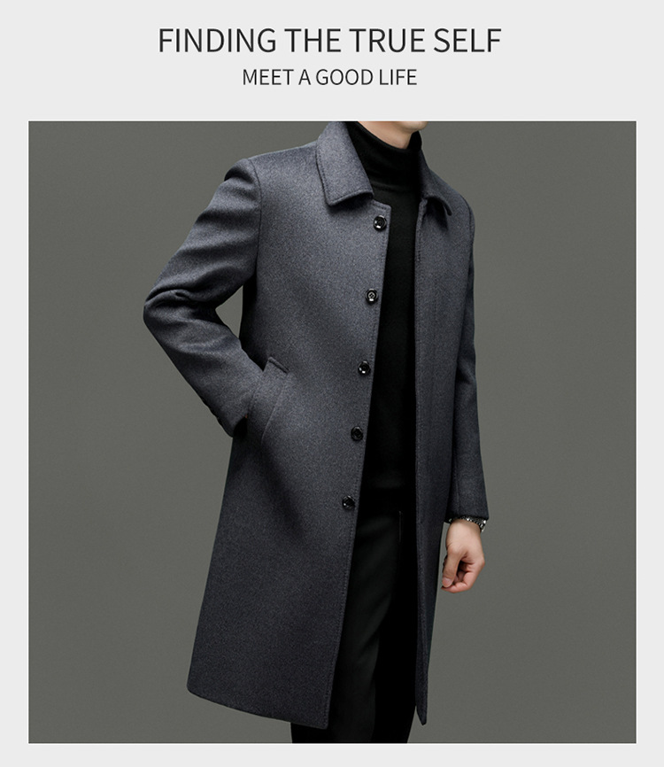 새로운 중간 길이 모직 모직 코트 남성 겨울 아빠 착용 비즈니스 캐주얼 플러시 모직 윈드 브레이커 재킷