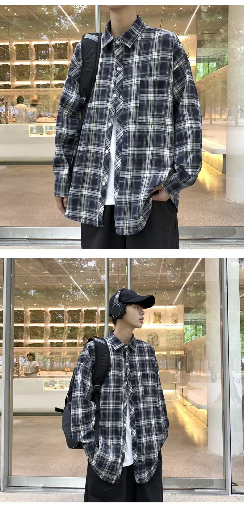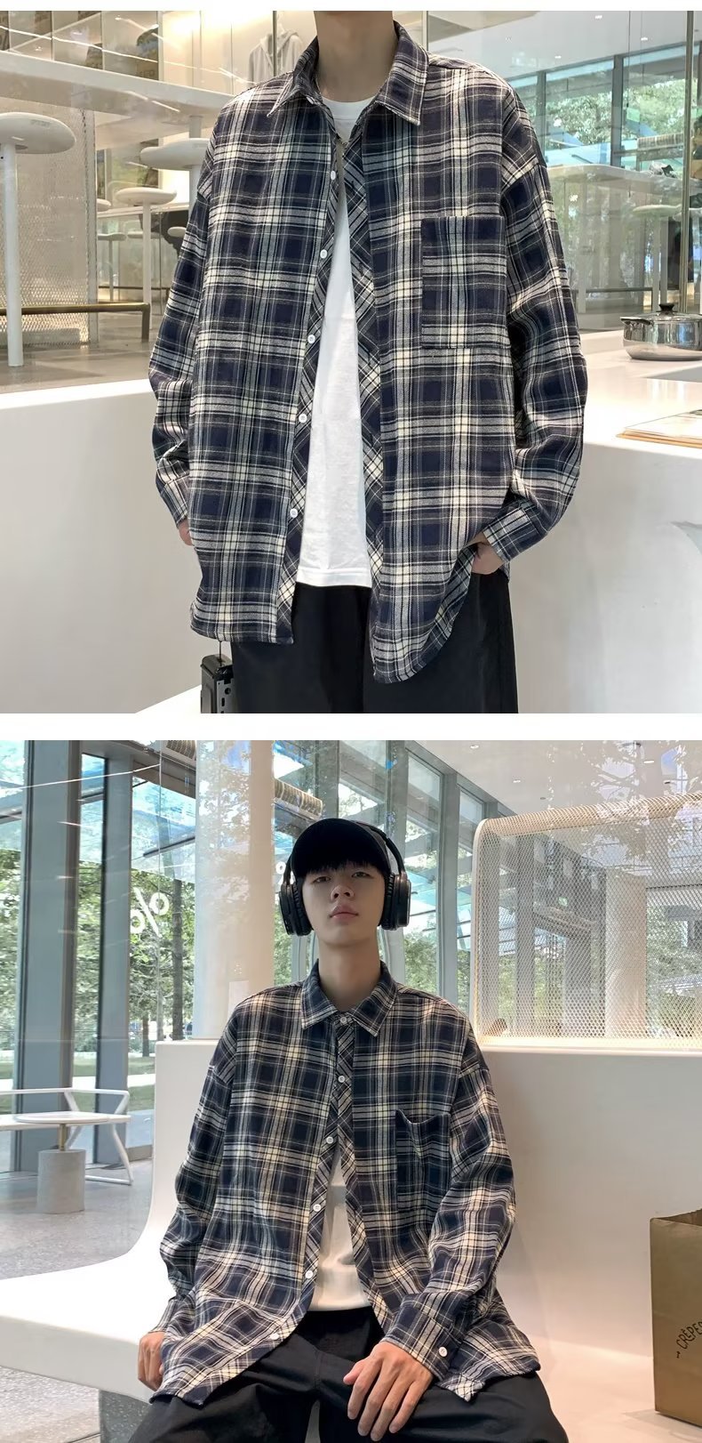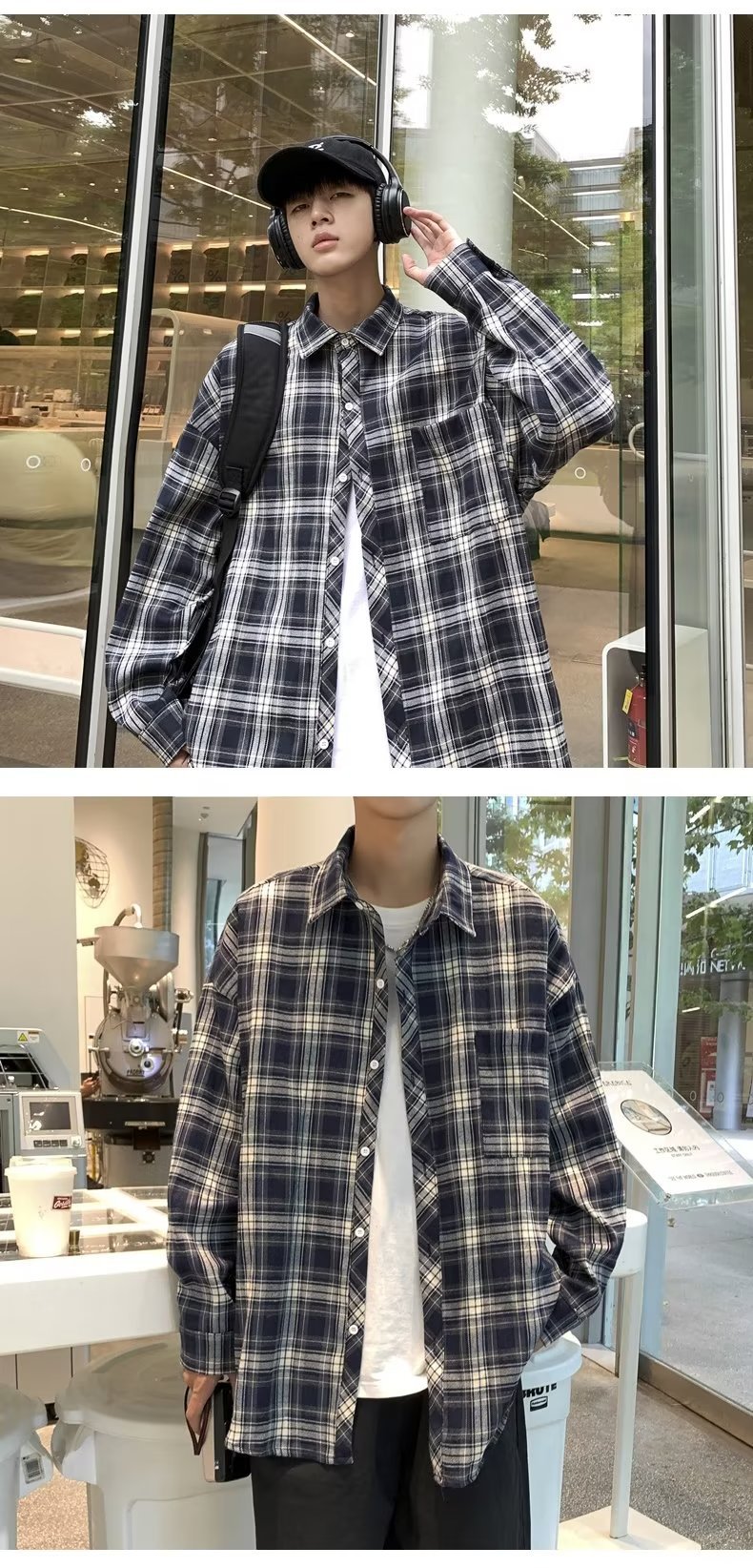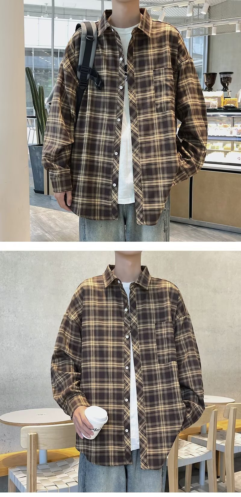 가을 2023 새로운 체크 셔츠 남성용 긴팔 한국 유행 루즈한 셔츠 캐주얼 셔츠 만능 재킷 남성스토어 가기