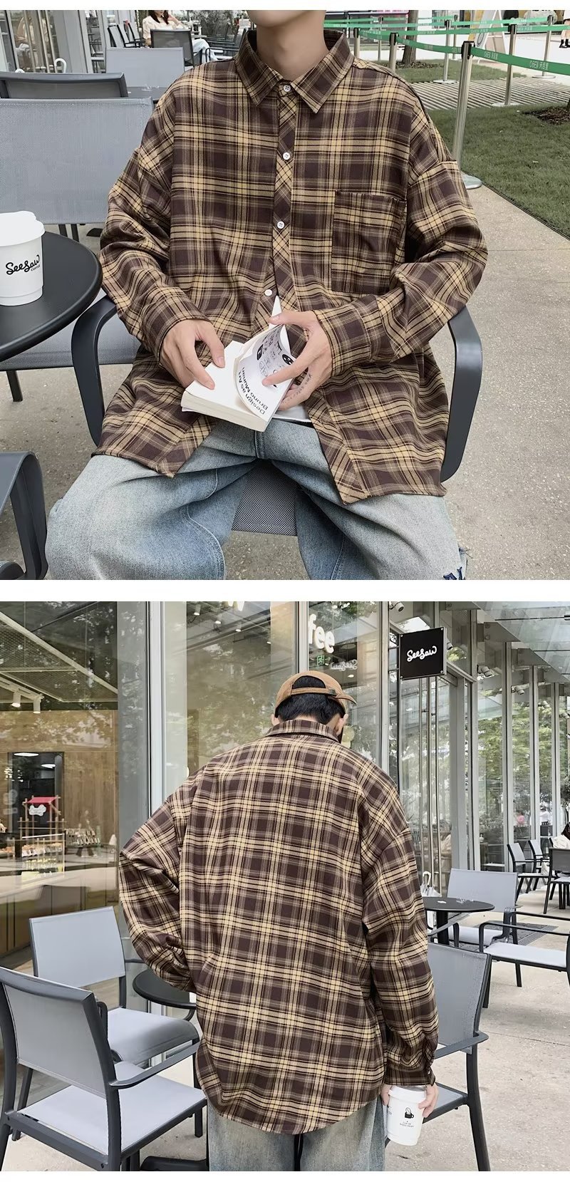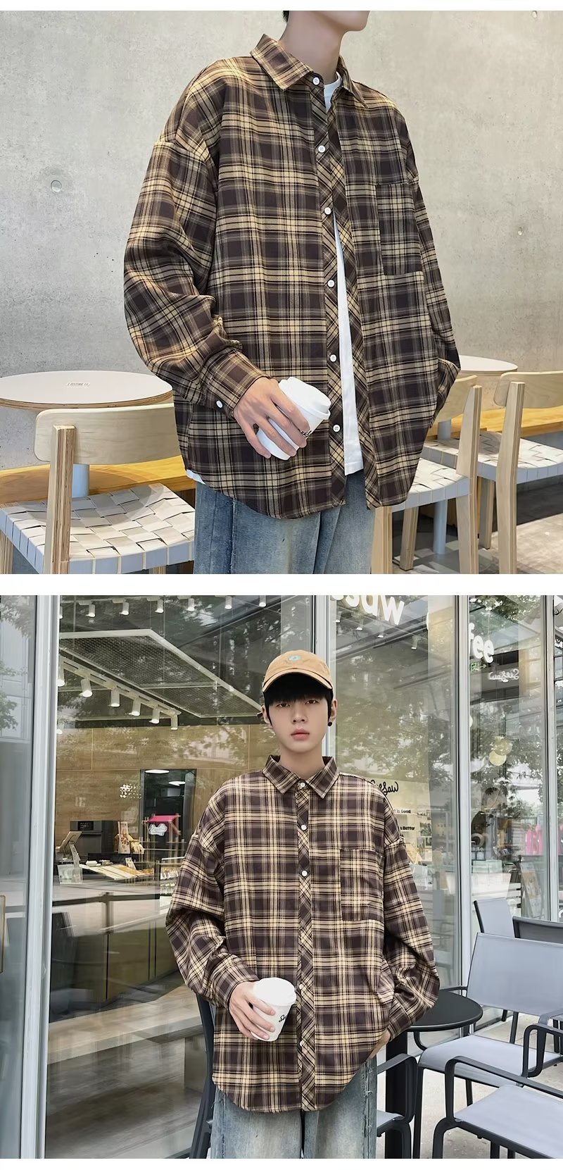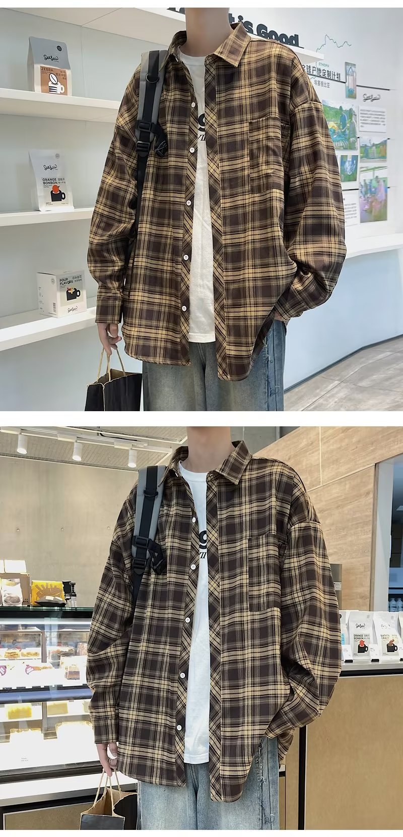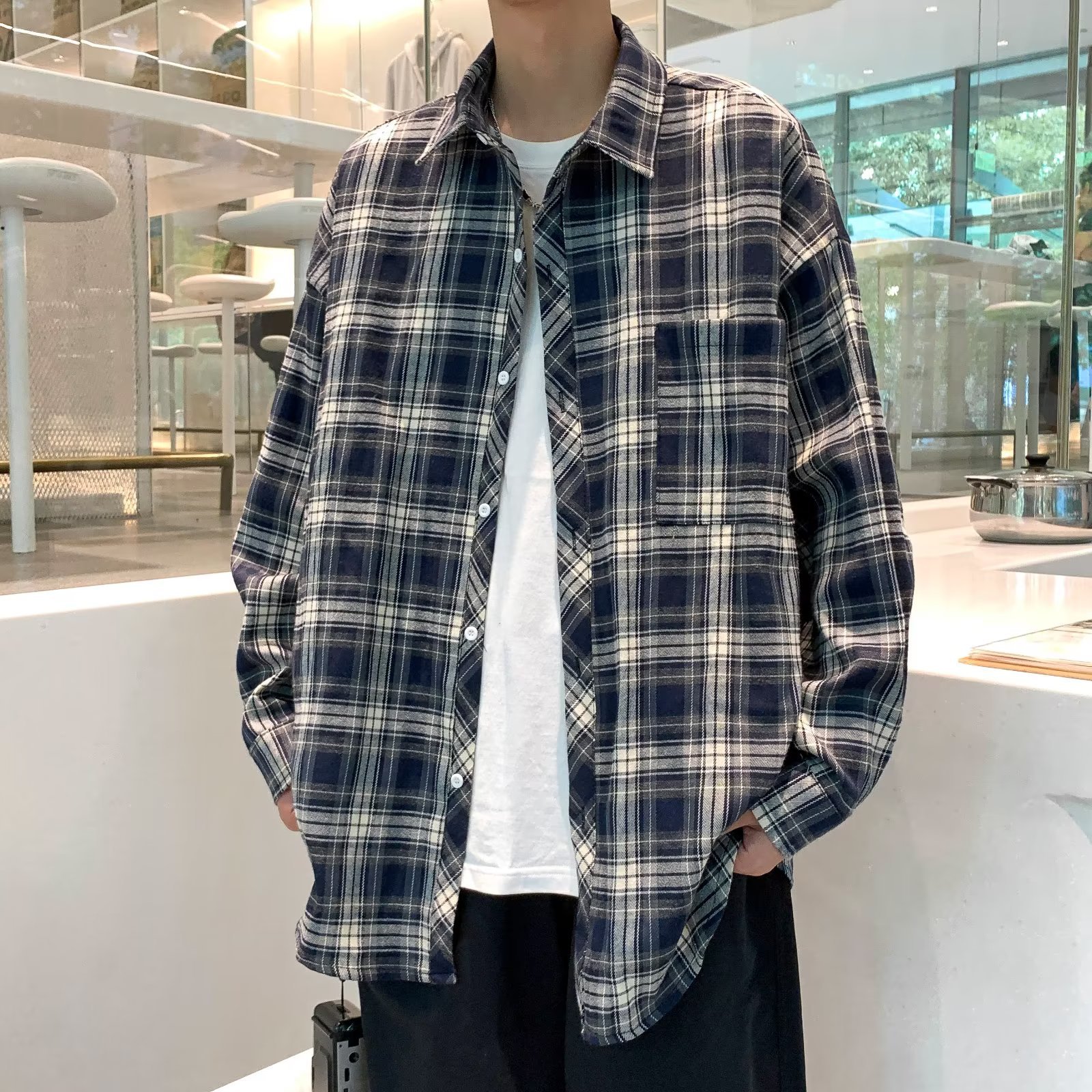 가을 2023 새로운 체크 셔츠 남성용 긴팔 한국 유행 루즈한 셔츠 캐주얼 셔츠 만능 재킷 남성스토어 가기