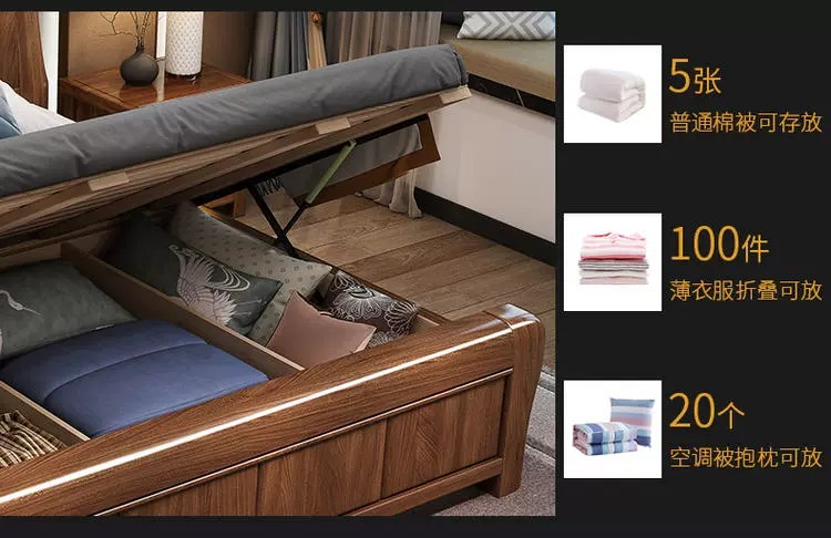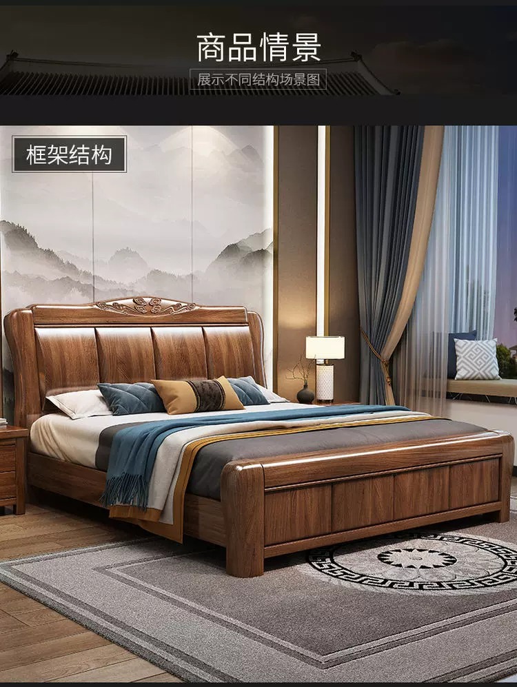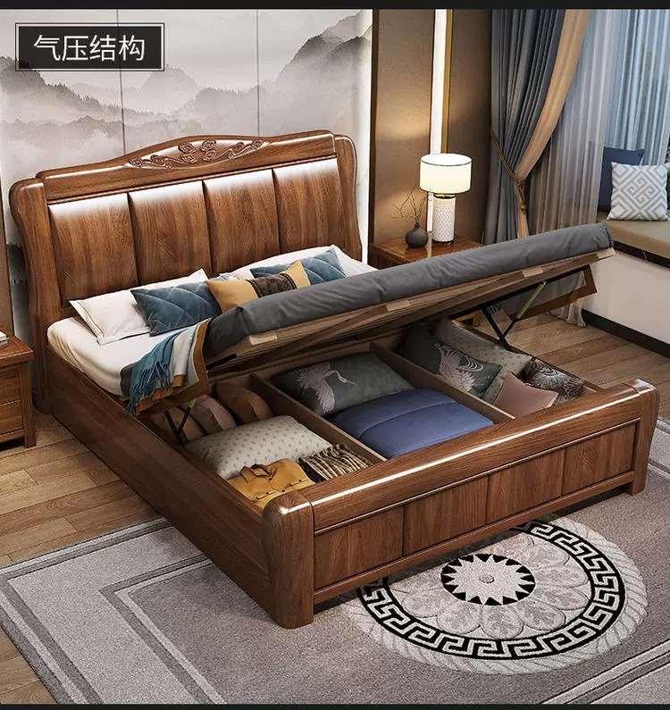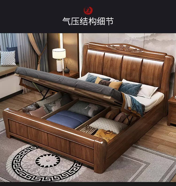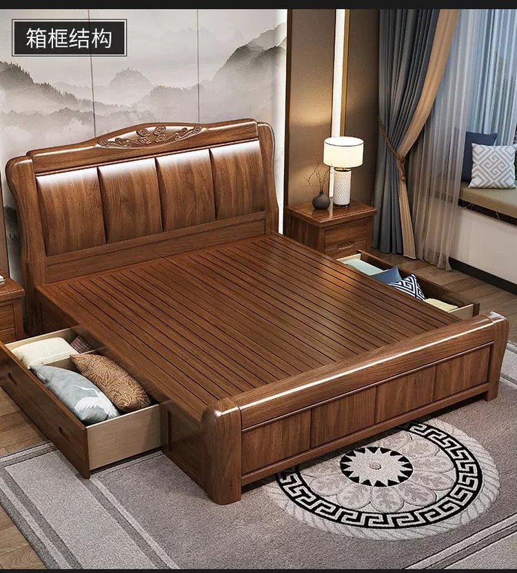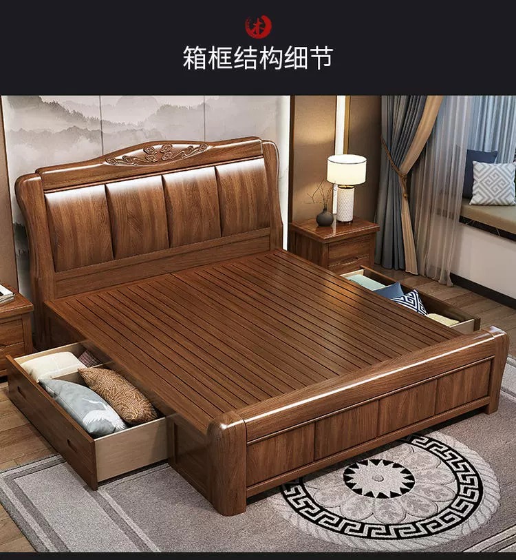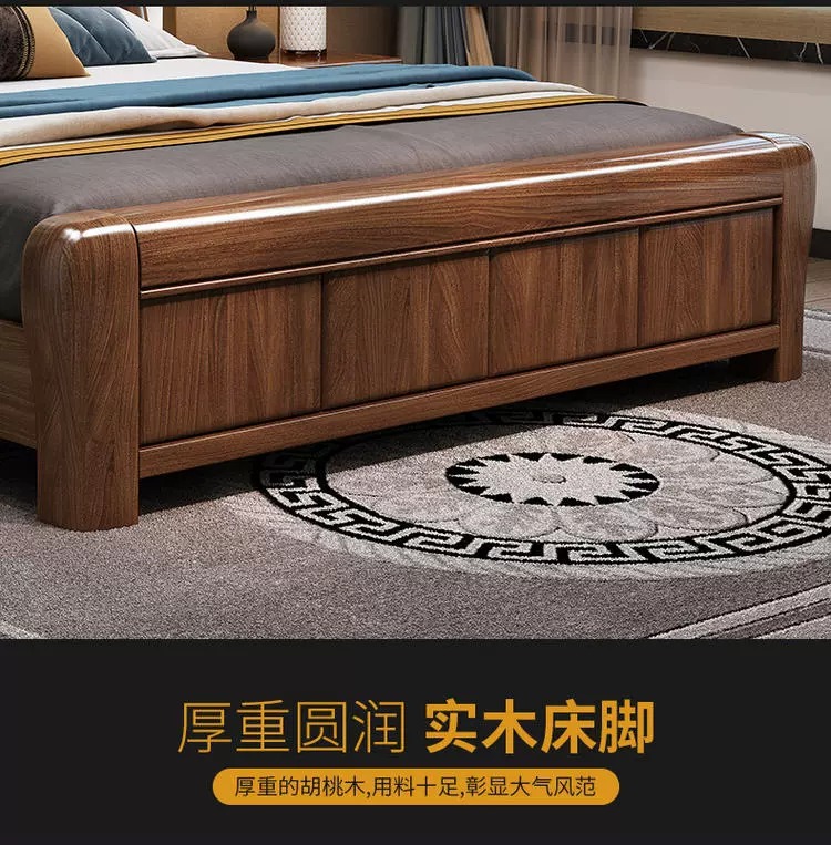월넛 단단한 나무 침대 1.8 m 더블 침대 현대 간단한 마스터 침실 중국 스타일 1.5 m 침실 높은 상자 보관 웨딩 침대스토어 가기