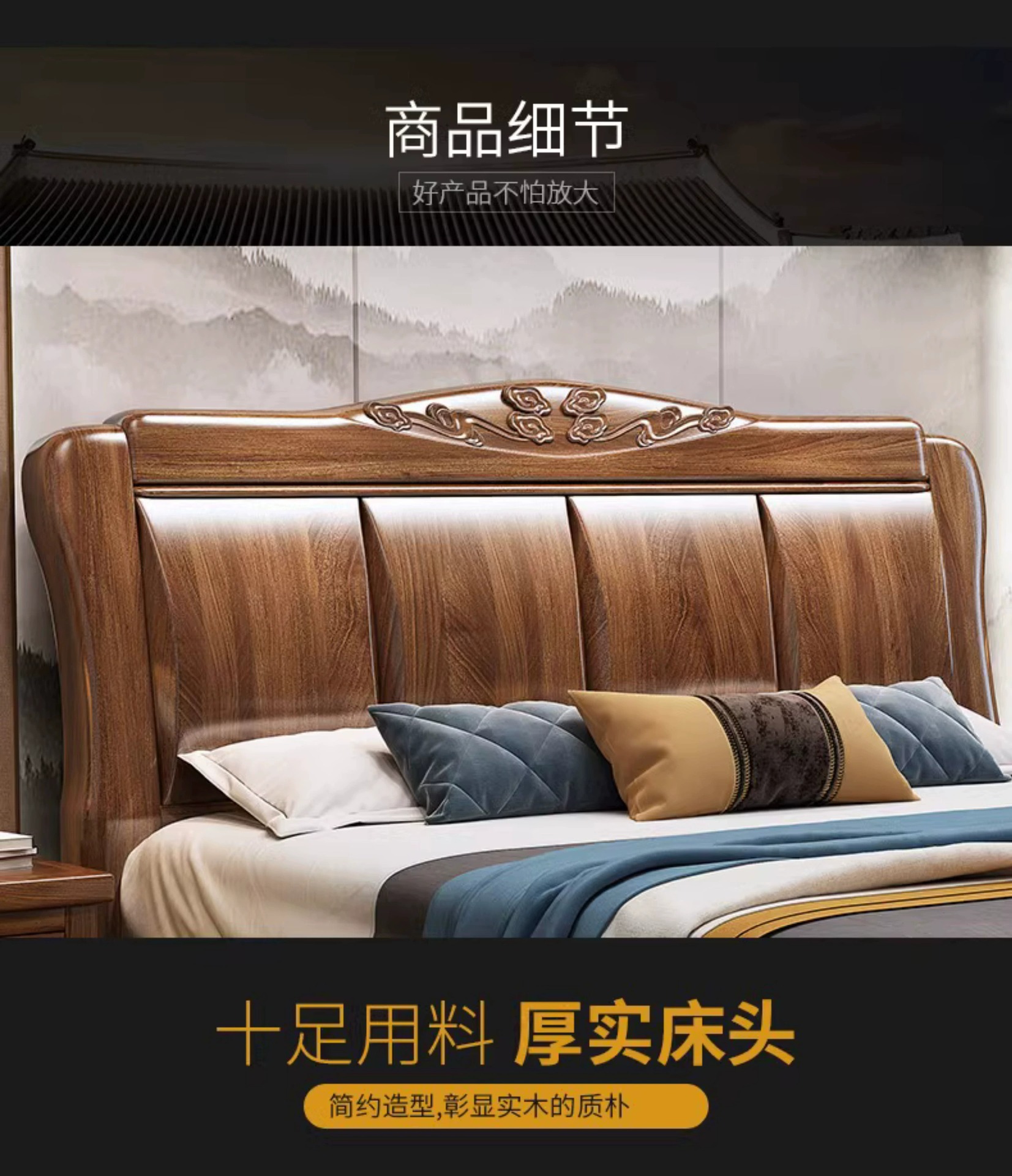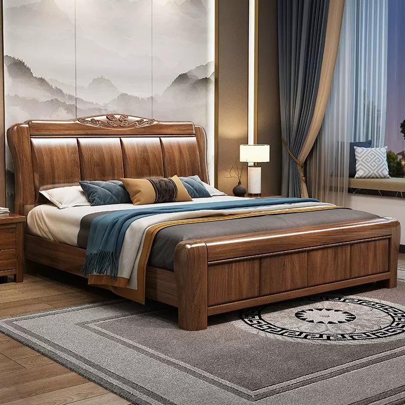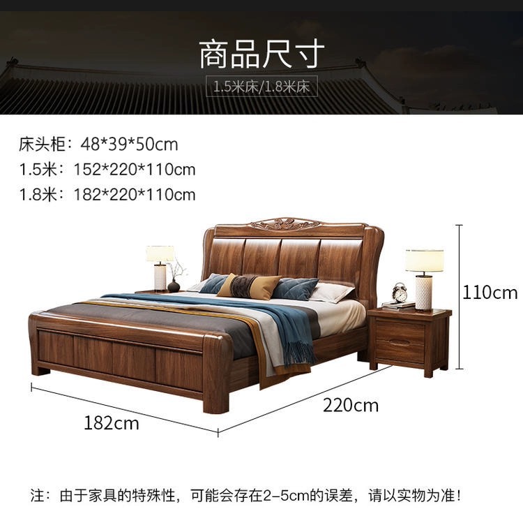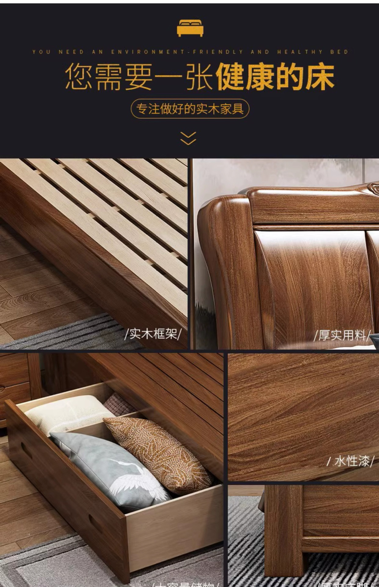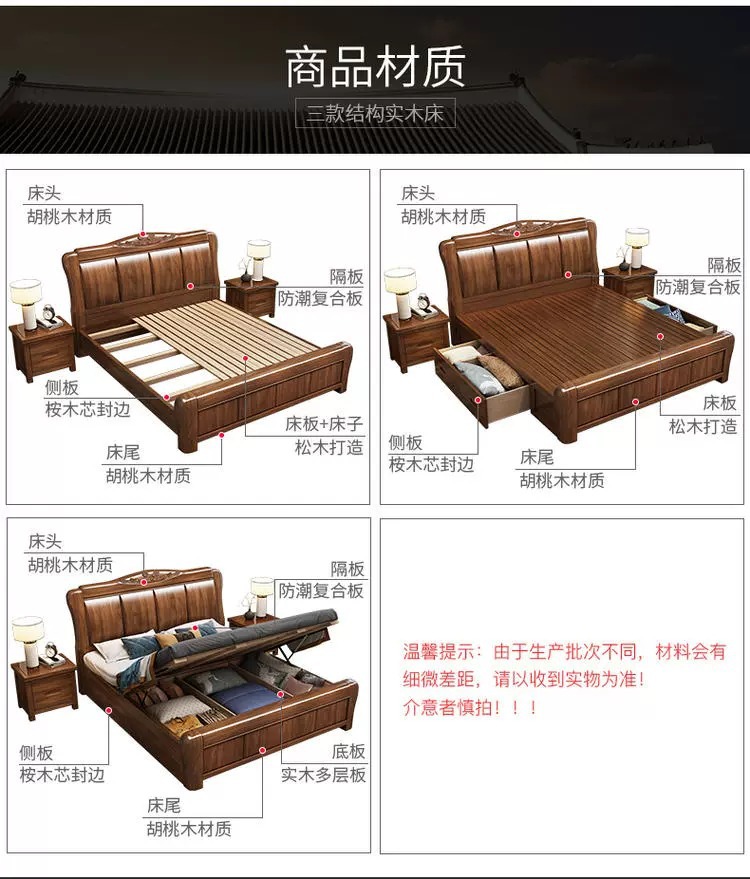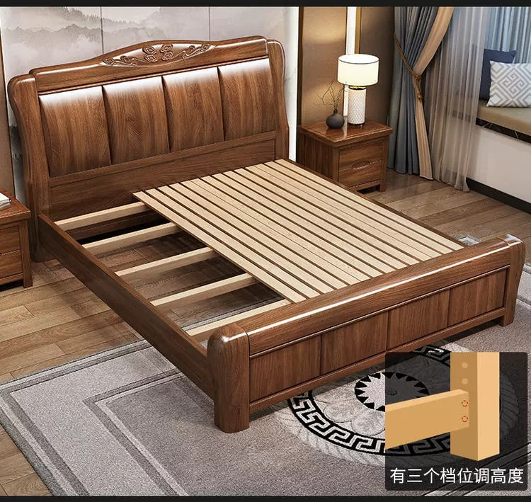 월넛 단단한 나무 침대 1.8 m 더블 침대 현대 간단한 마스터 침실 중국 스타일 1.5 m 침실 높은 상자 보관 웨딩 침대스토어 가기