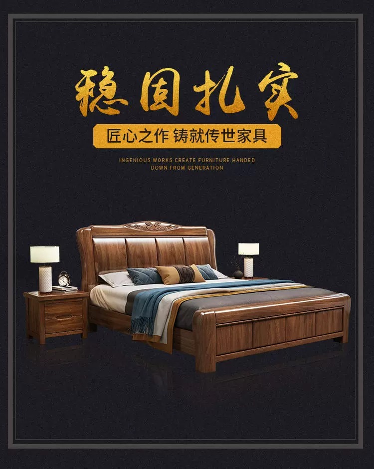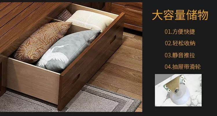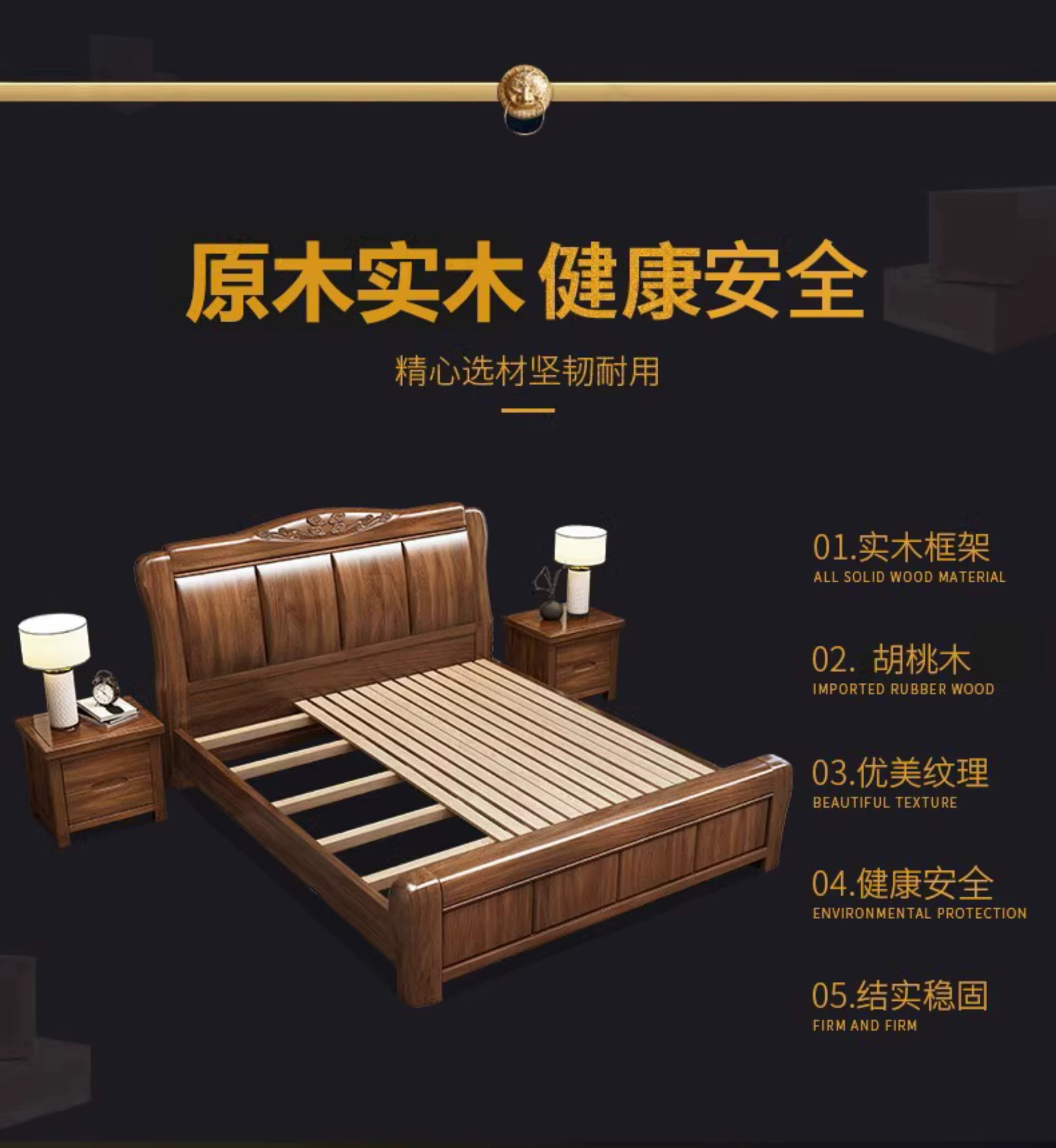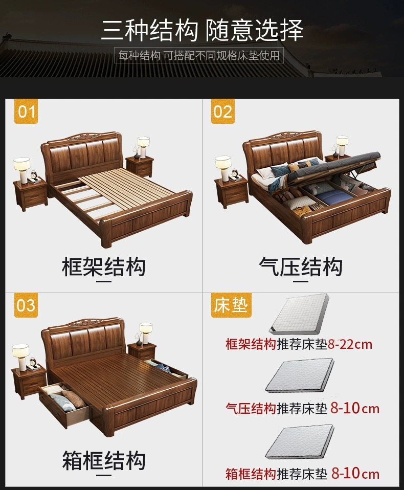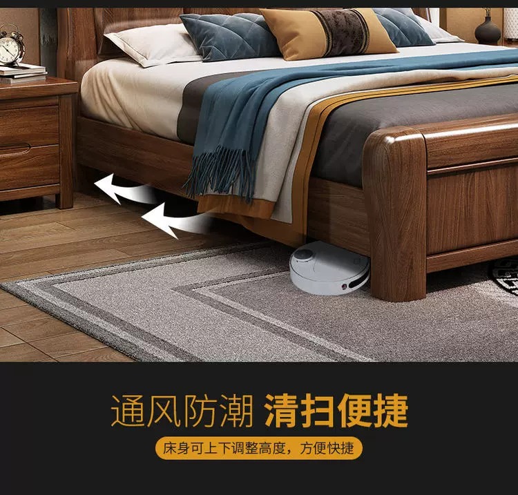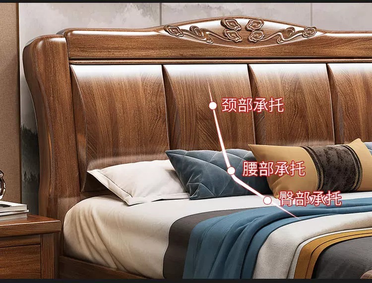 월넛 단단한 나무 침대 1.8 m 더블 침대 현대 간단한 마스터 침실 중국 스타일 1.5 m 침실 높은 상자 보관 웨딩 침대스토어 가기
