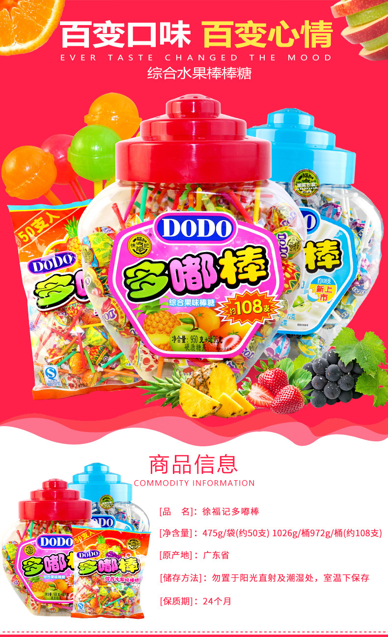 도매 Xu Fuji Lollipop dodo Duodu 스틱 108 배럴 혼합 맛 놀이 공원 사탕 기계스토어 가기