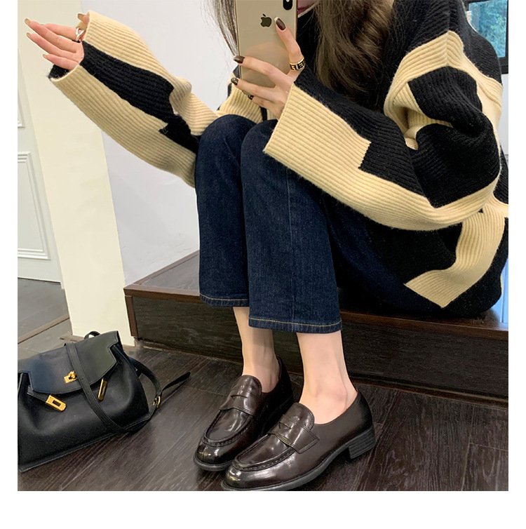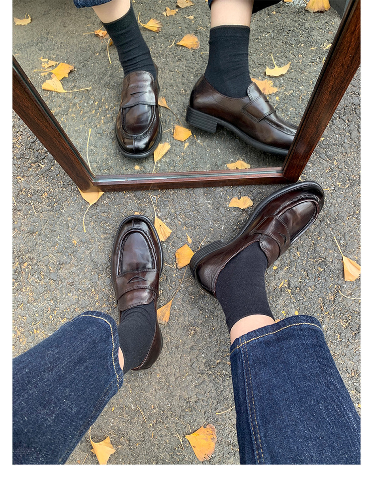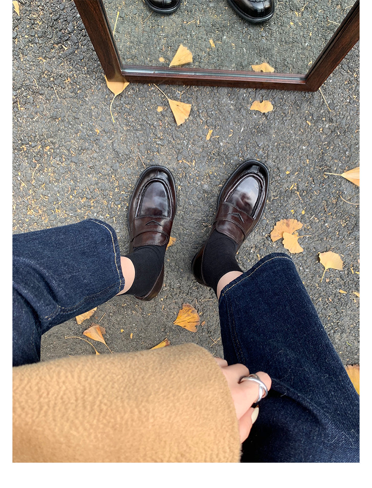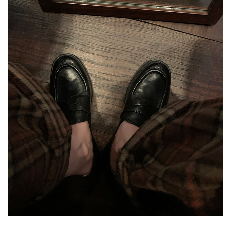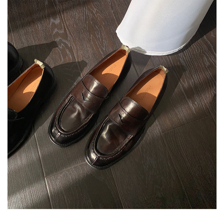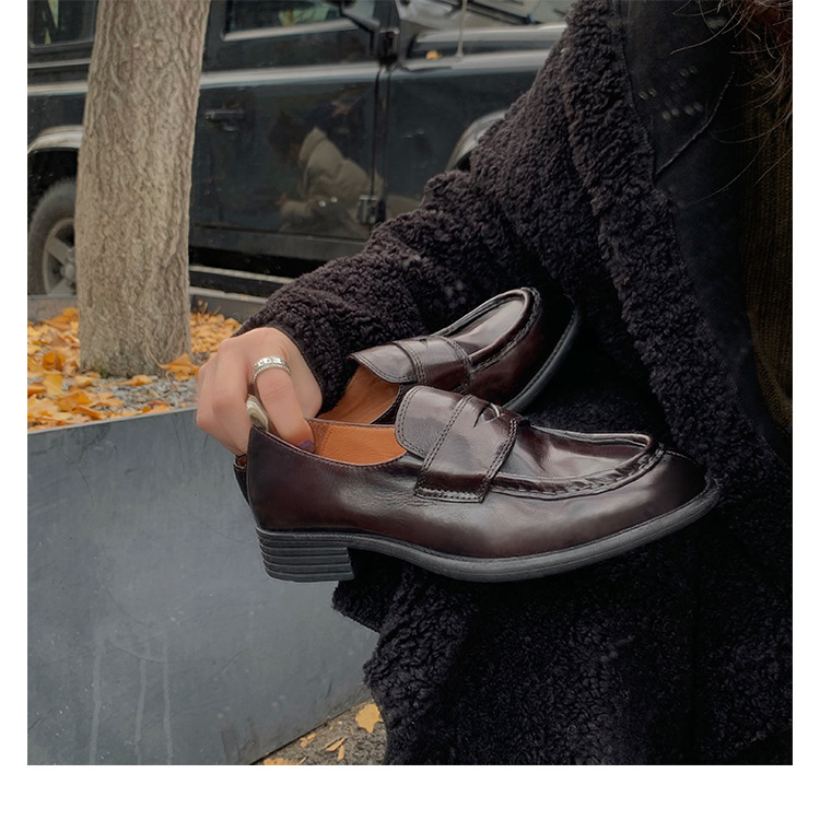 소가죽 버전~신상 레트로 스타일 여성용 가죽 신발, 영국풍 수제 옥스포드 슈즈, 슬립온 로퍼