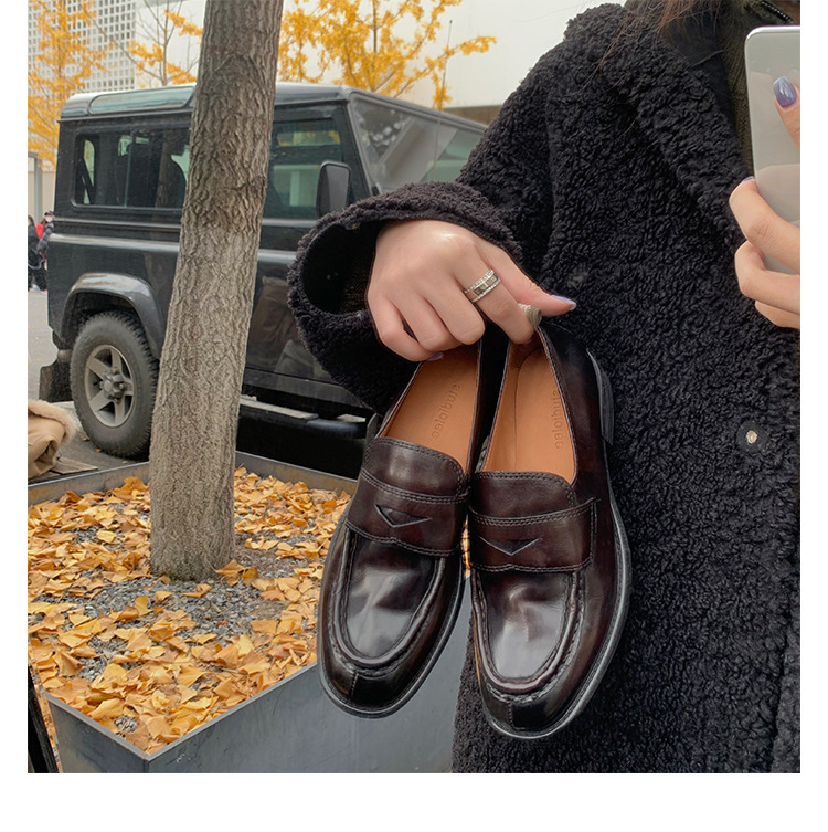 소가죽 버전~신상 레트로 스타일 여성용 가죽 신발, 영국풍 수제 옥스포드 슈즈, 슬립온 로퍼스토어 가기