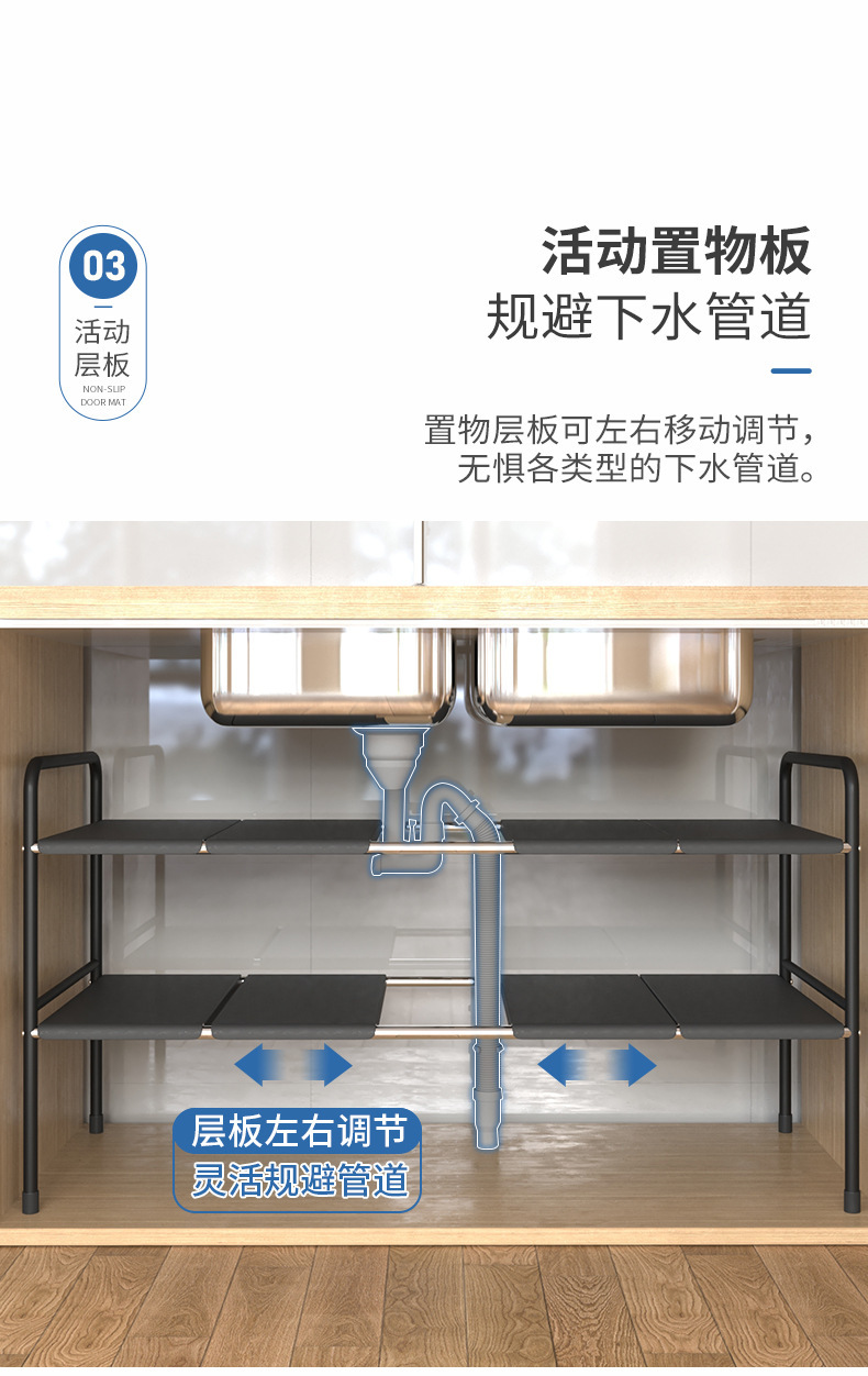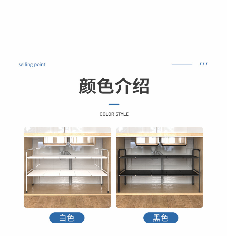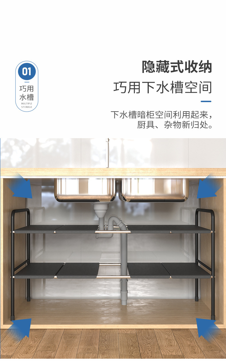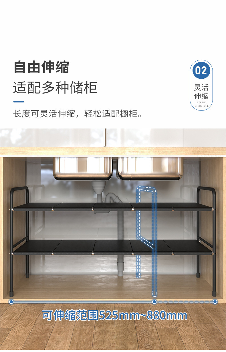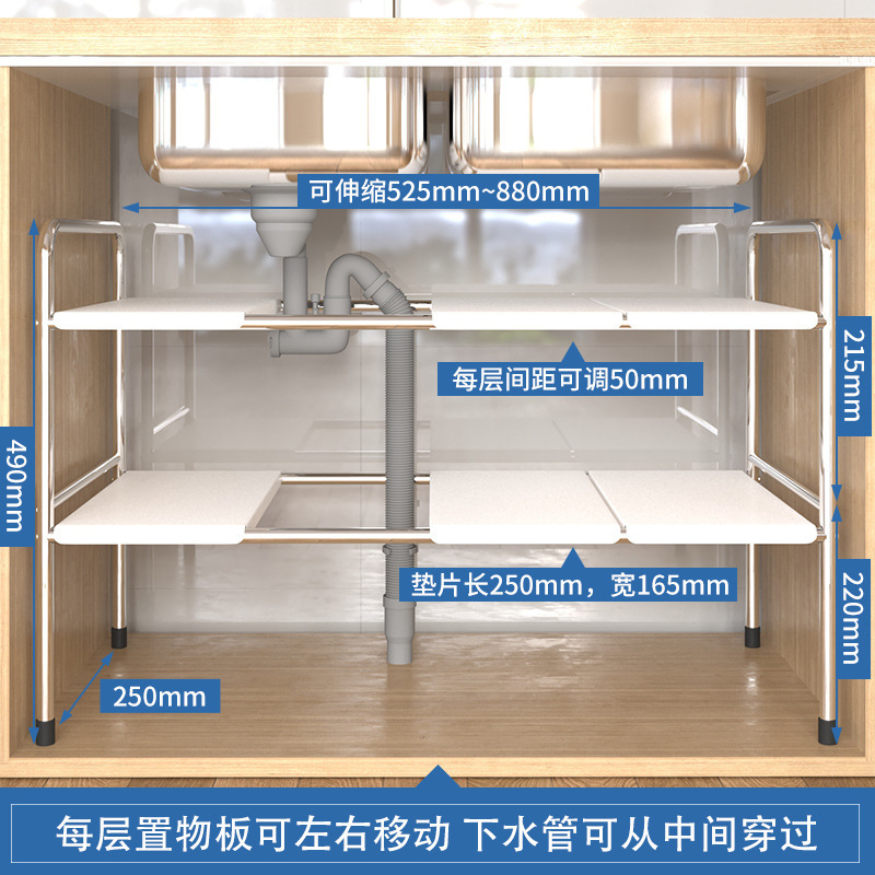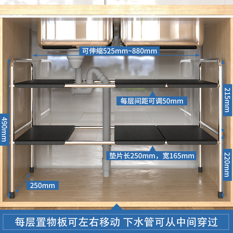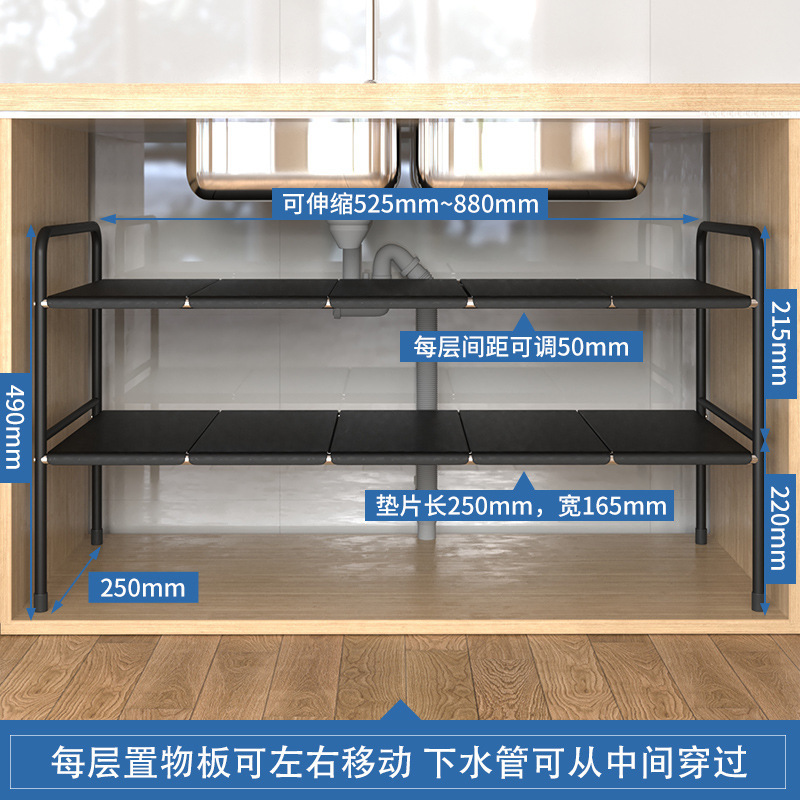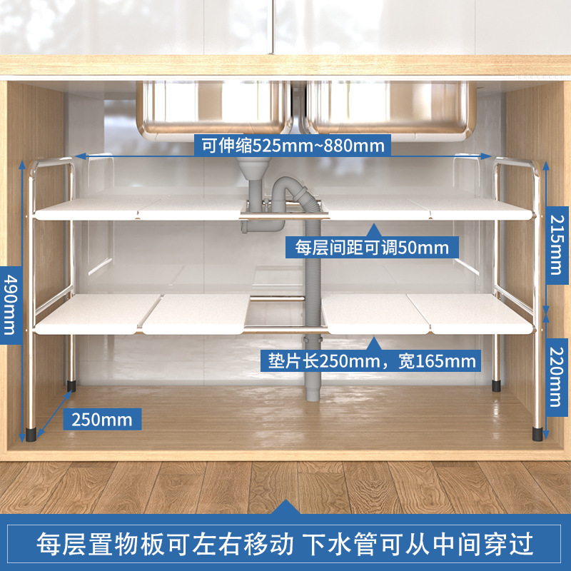 주방 확장 가능한 싱크대 보관 랙 캐비닛 레이어드 랙 주방 캐비닛 수납 다기능 냄비 랙 수납 선반