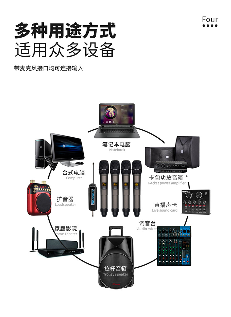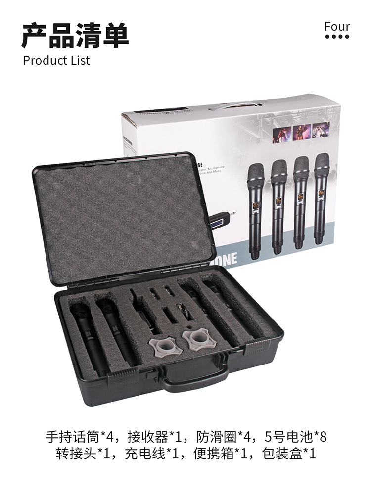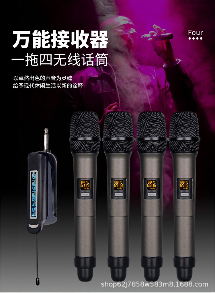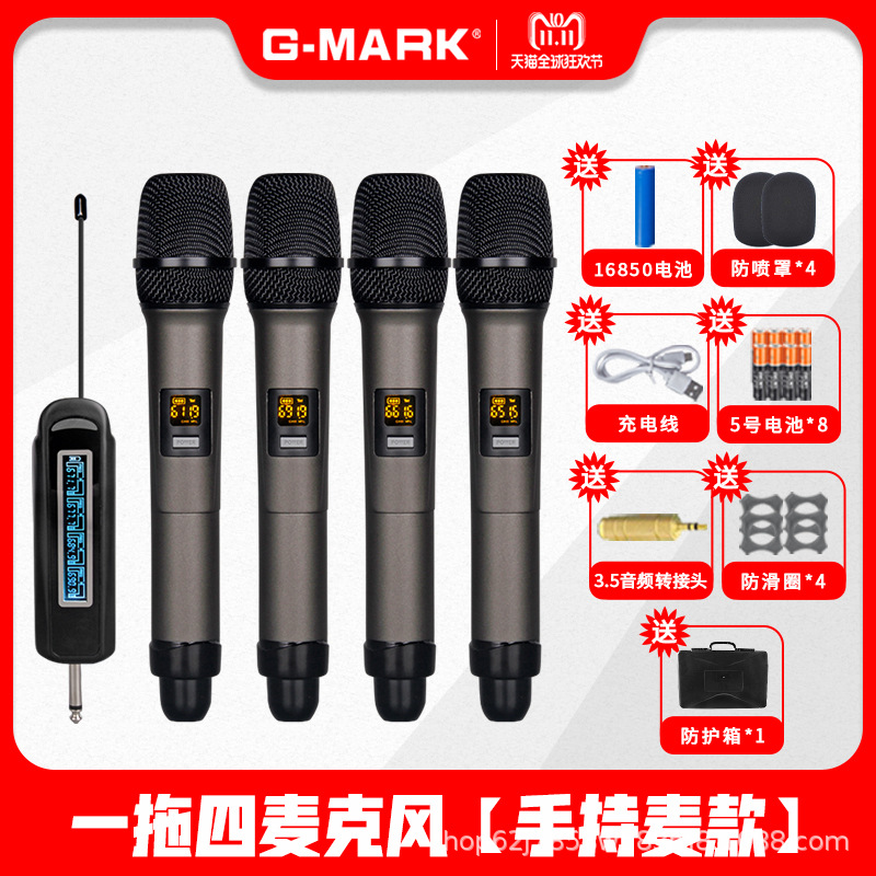 G-MARK 1대4 U파장 무선 마이크 가정용 노래방 무대 공연 회의용 마이크 만능 마이크