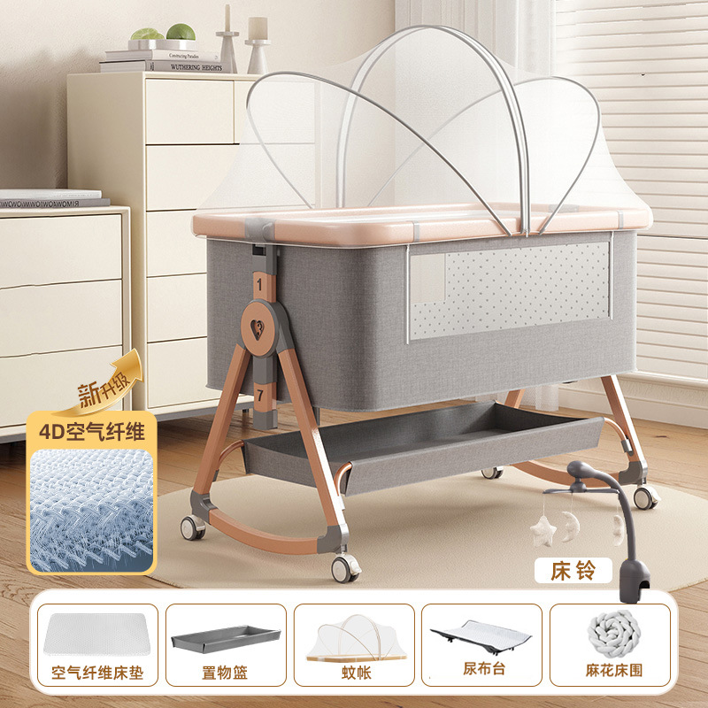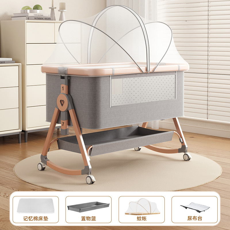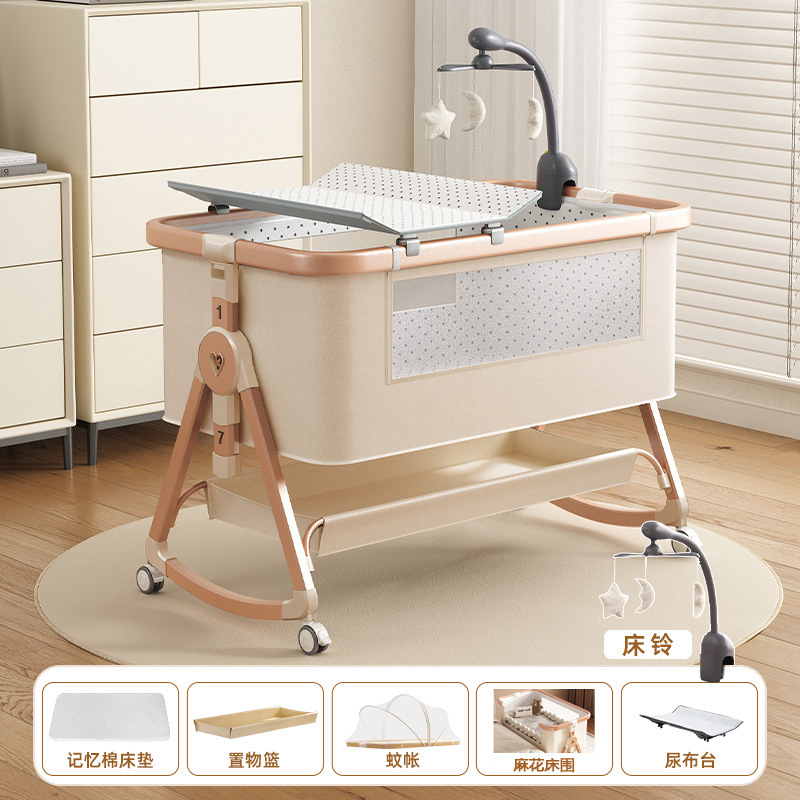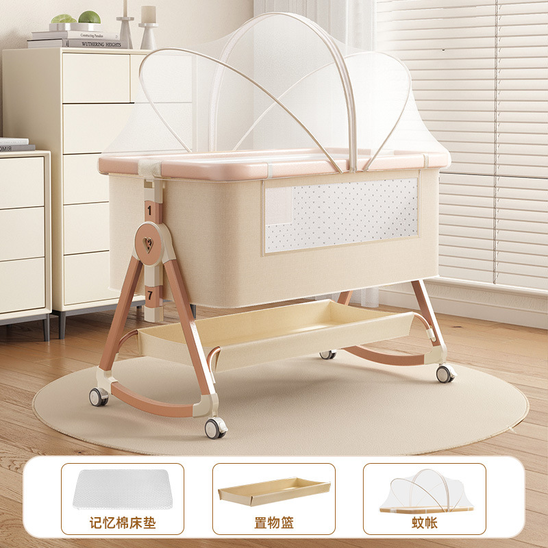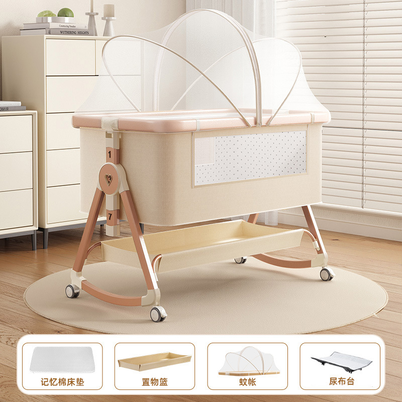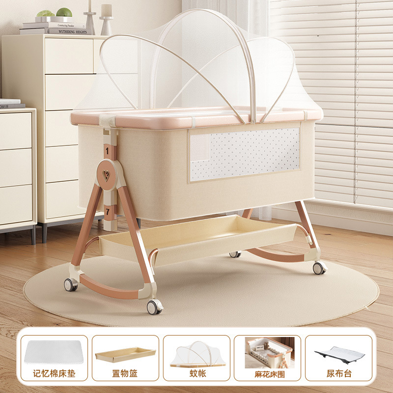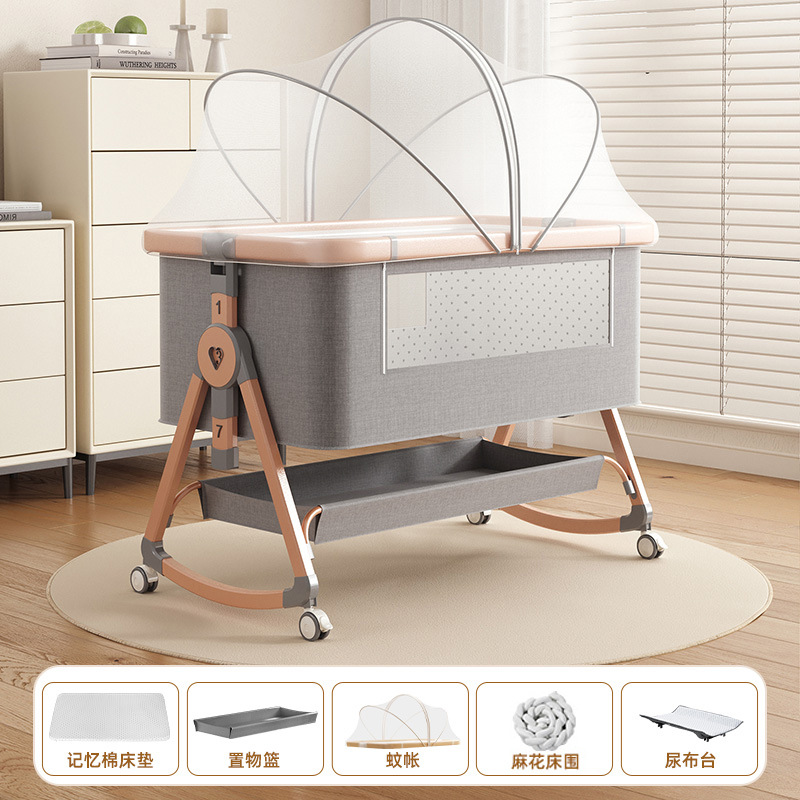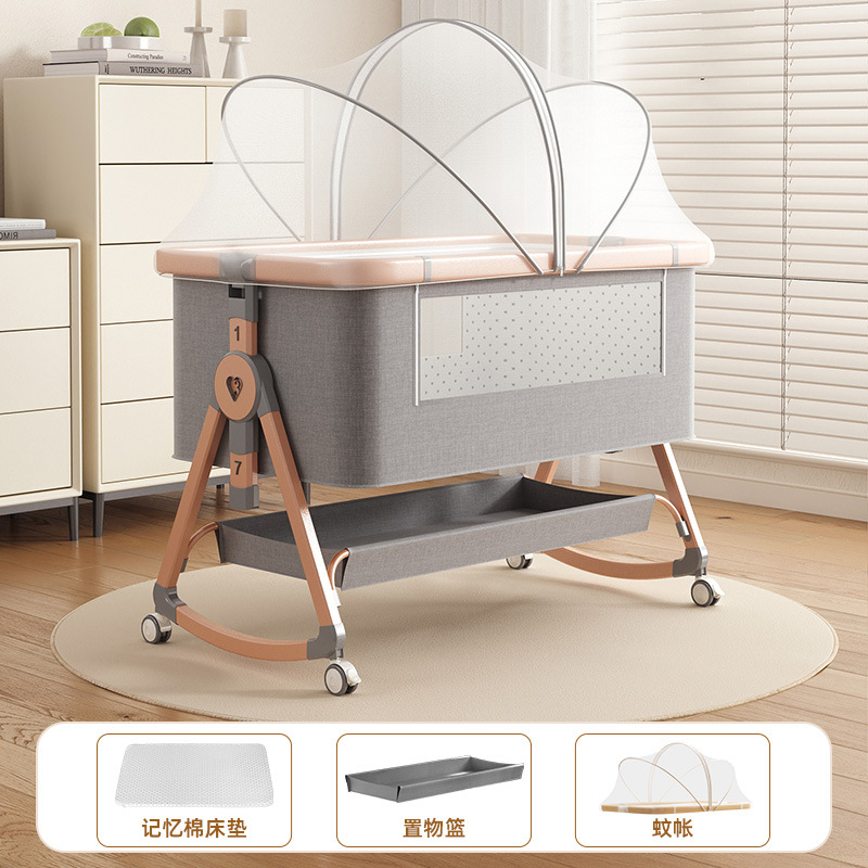 • [표준 버전] 알루미늄 튜브 골드 카드丨메모리폼 매트리스 + 바닥 바구니 + 모기장 + 트위스트 침대 서라운드 + 기저귀 교환대 + 침대 벨