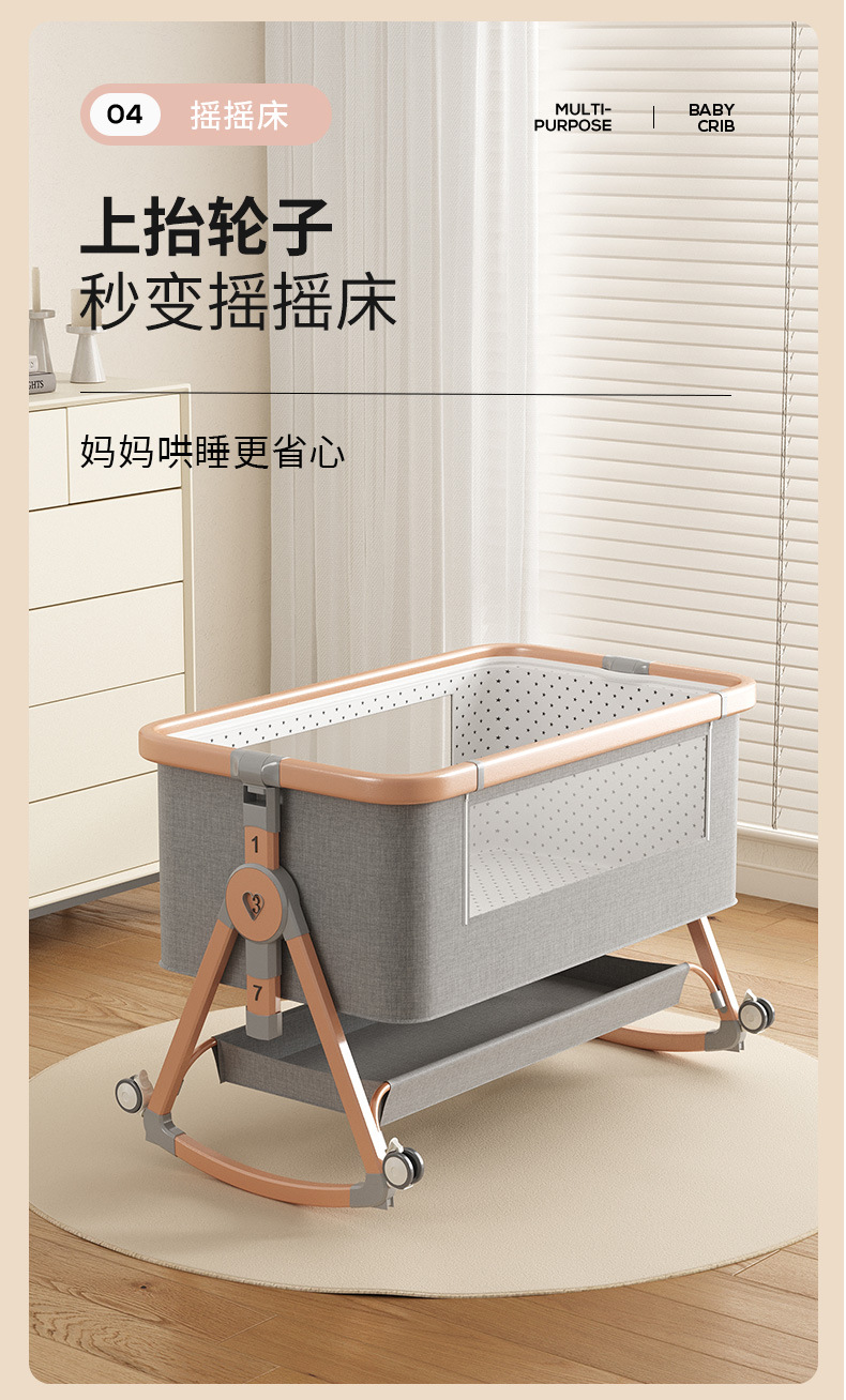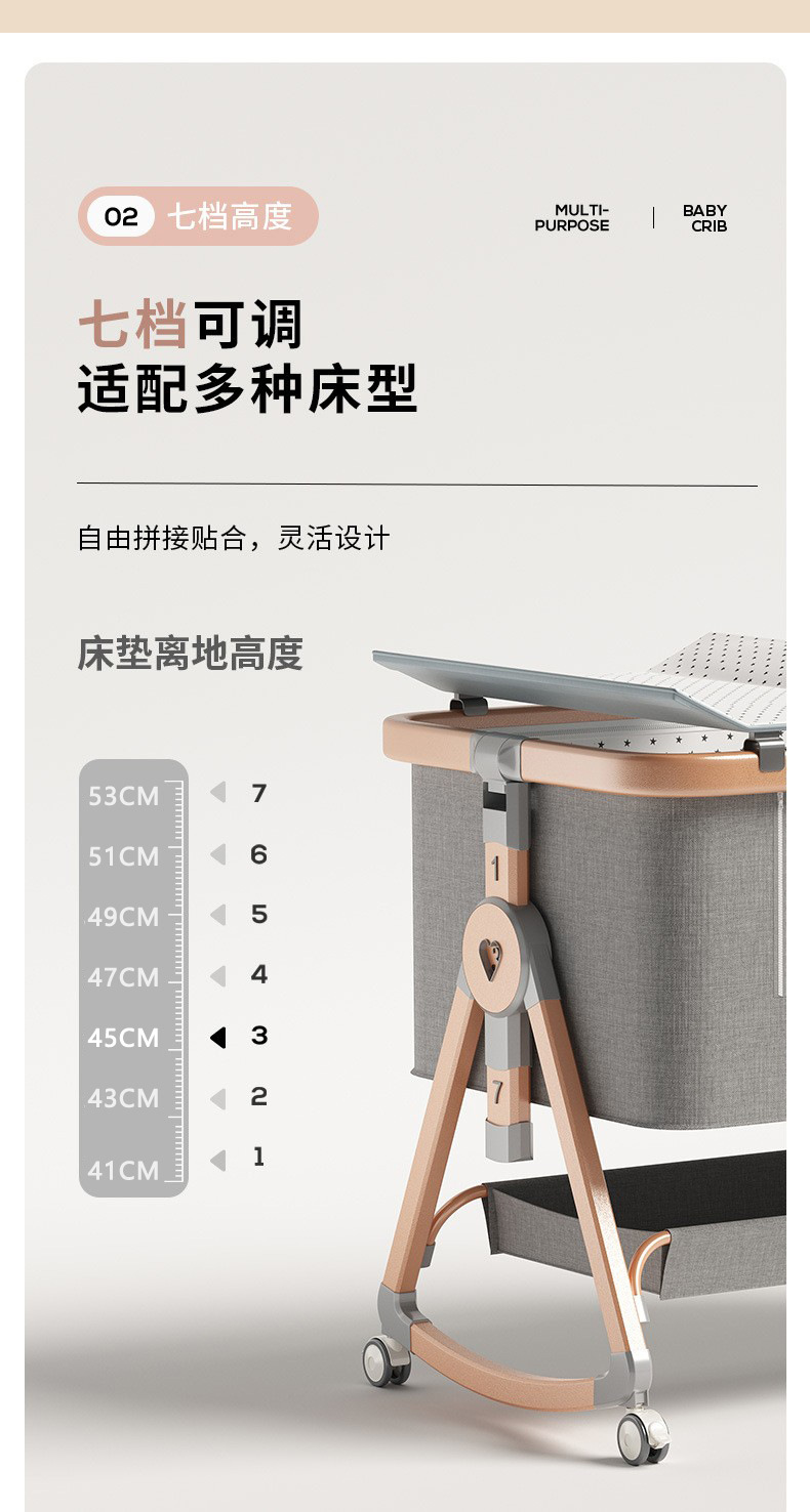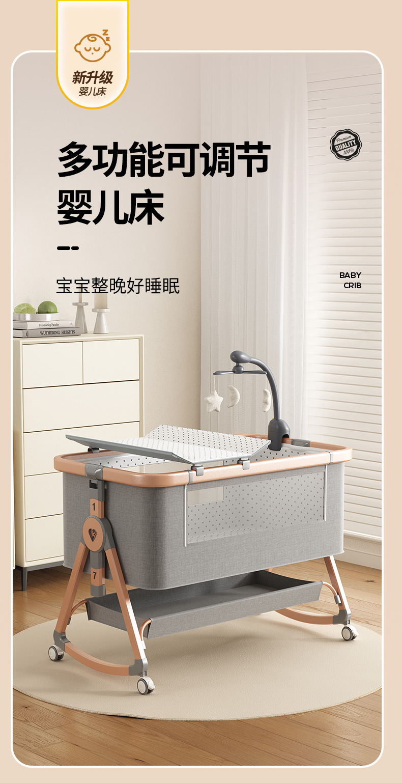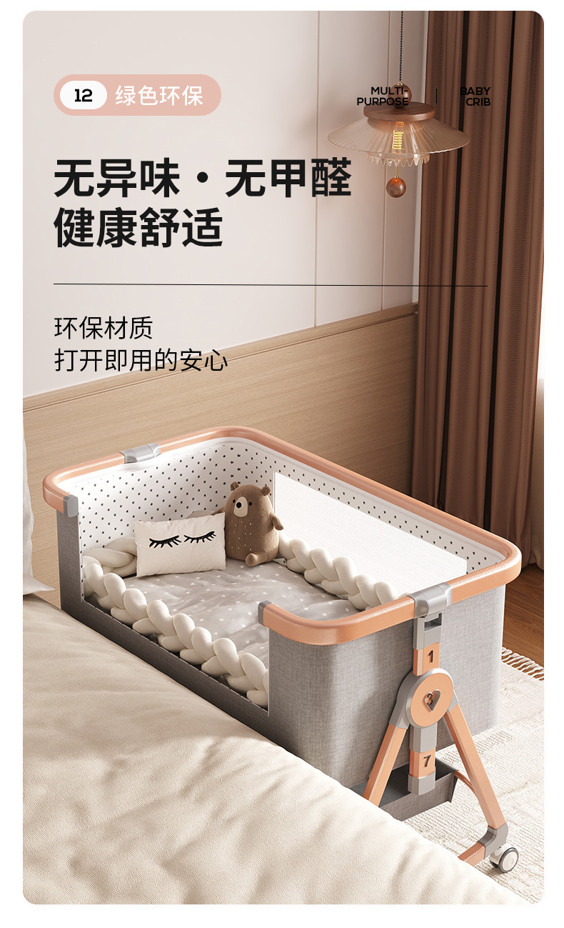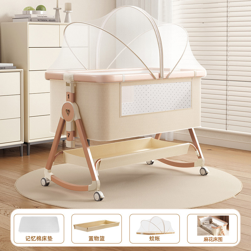 • [표준 버전] 알루미늄 튜브 골드 카드丨메모리폼 매트리스 + 바닥 바구니 + 모기장 + 트위스트 침대 서라운드 + 기저귀 교환대 + 침대 벨