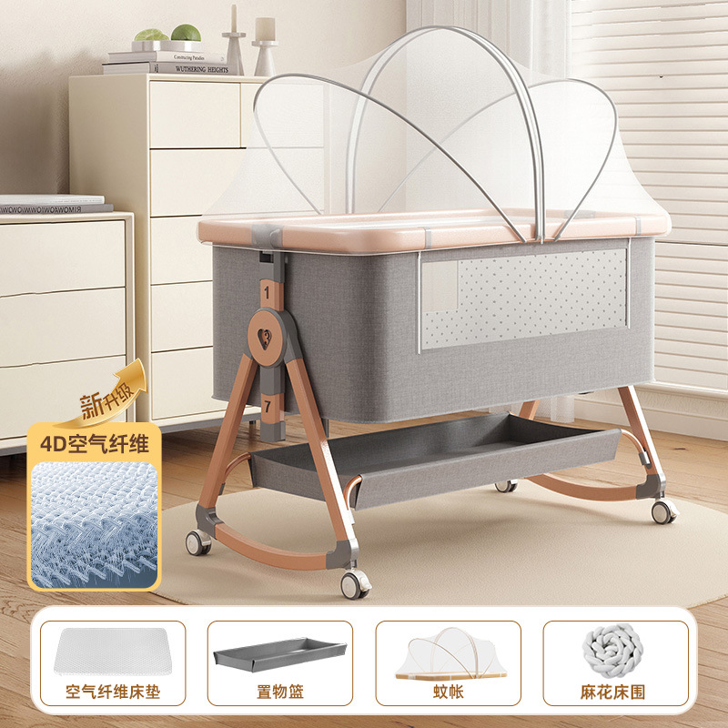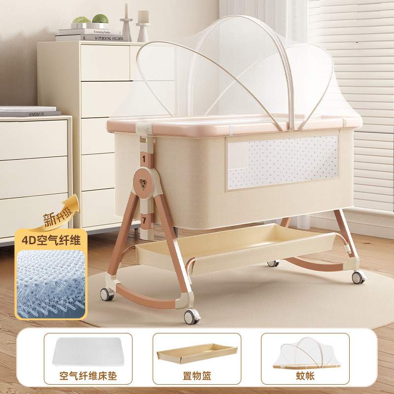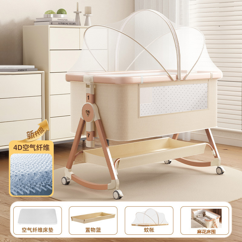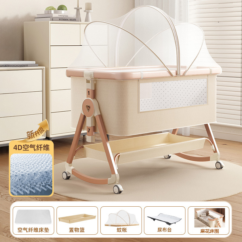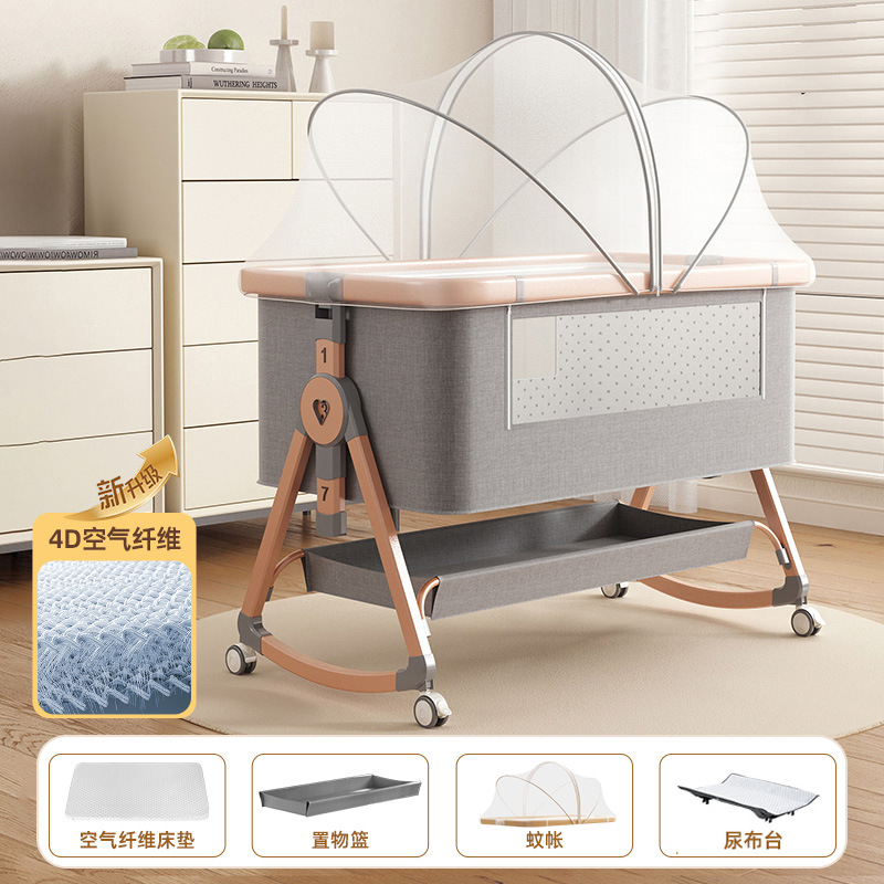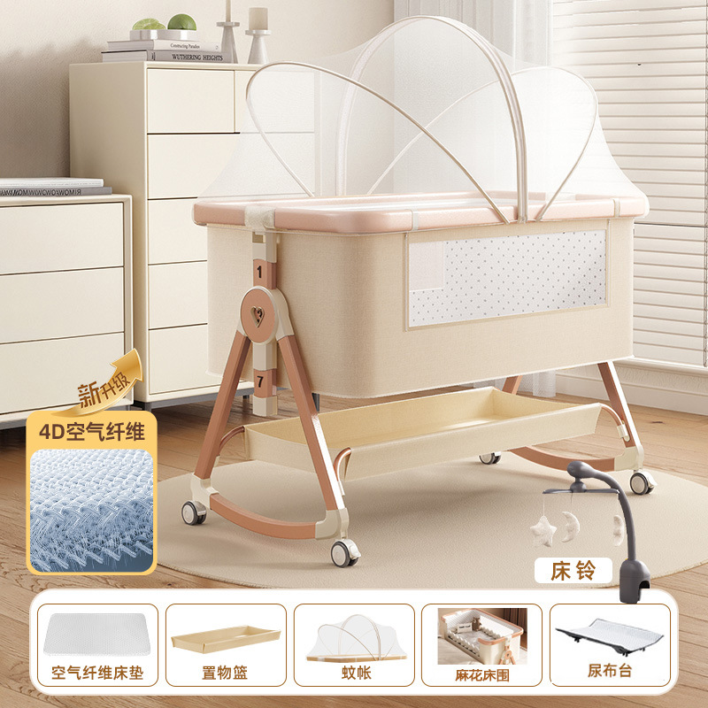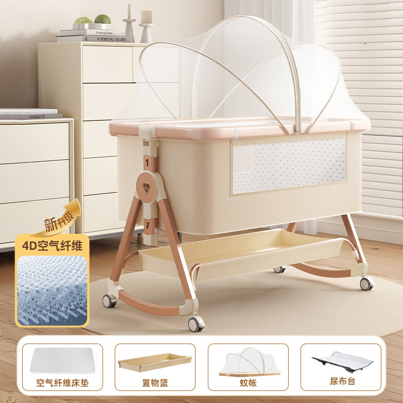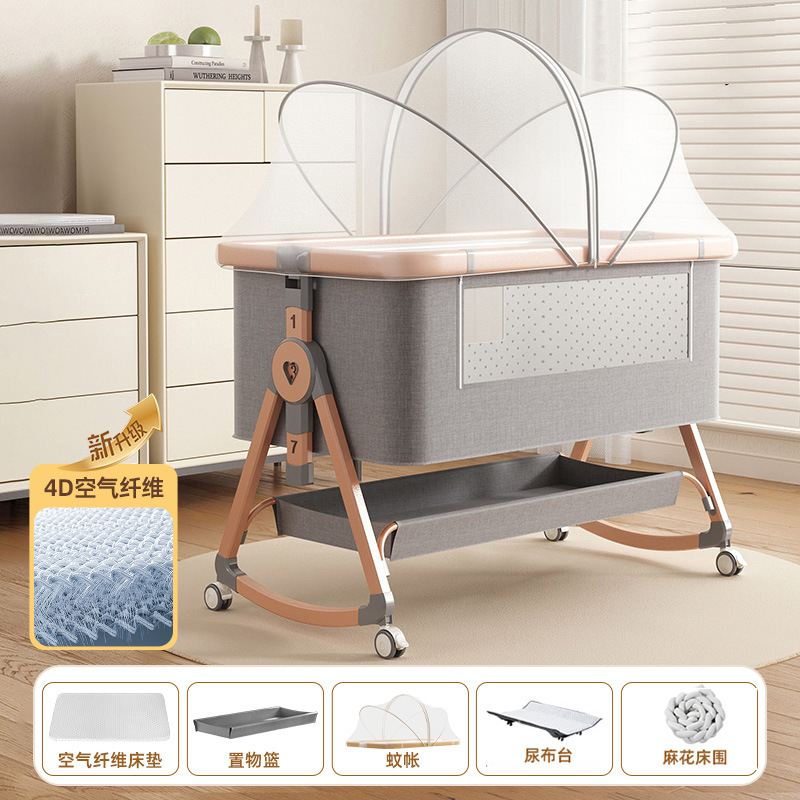 • [디럭스 에디션] 알루미늄 튜브 골드 카드丨에어 파이버 매트리스 + 바닥 바구니 + 모기장 + 트위스트 베드 서라운드 + 기저귀 교환대 + 베드 벨