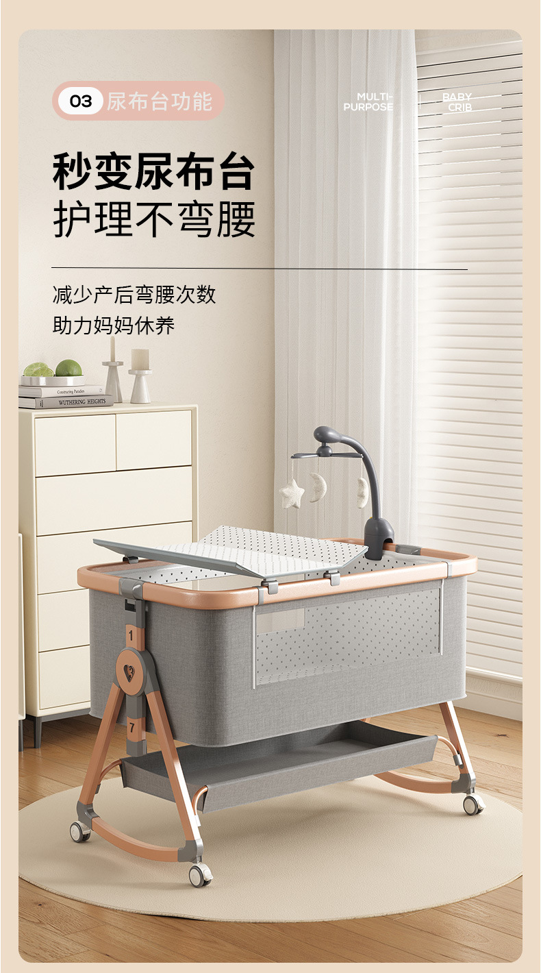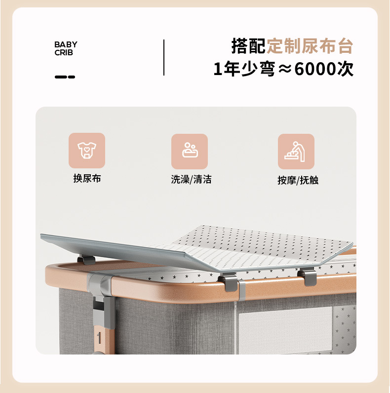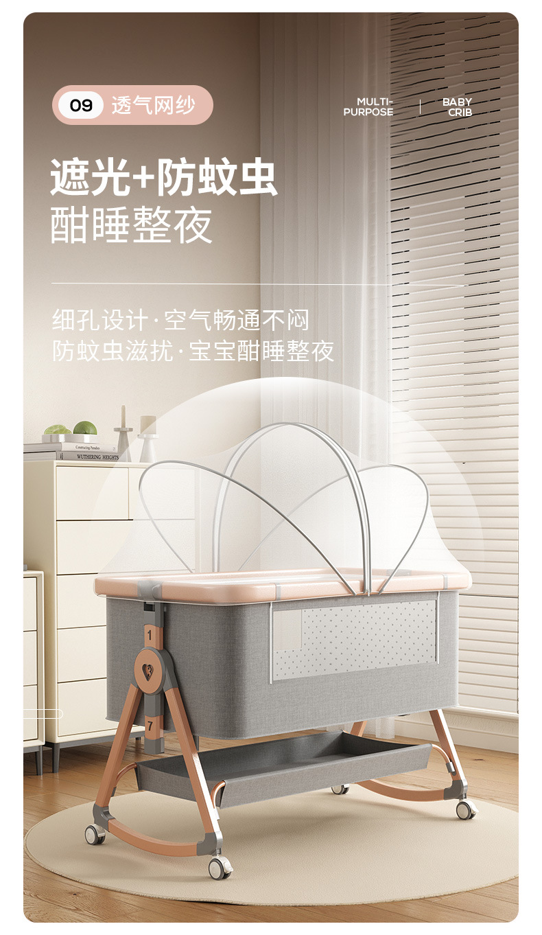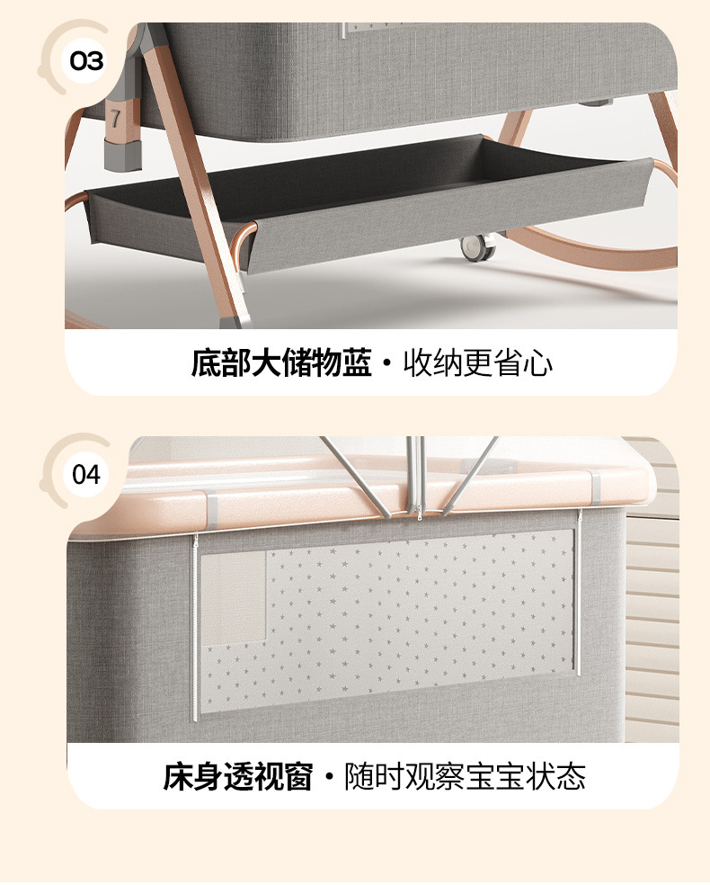 • [표준 버전] 알루미늄 튜브 골드 카드丨메모리폼 매트리스 + 바닥 바구니 + 모기장 + 기저귀 교환대