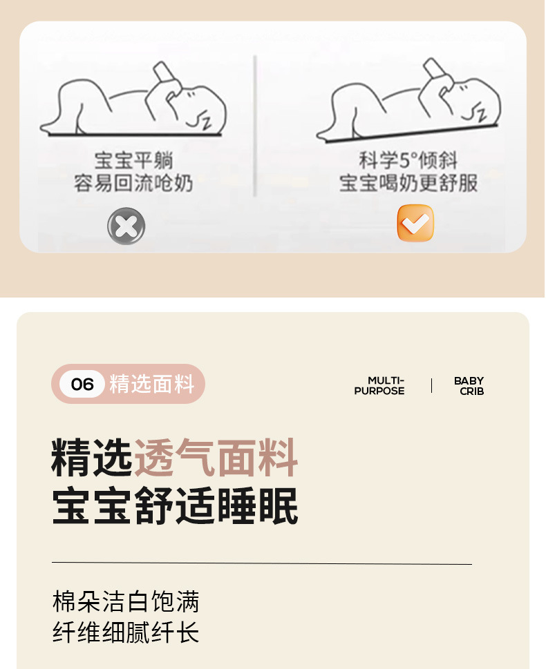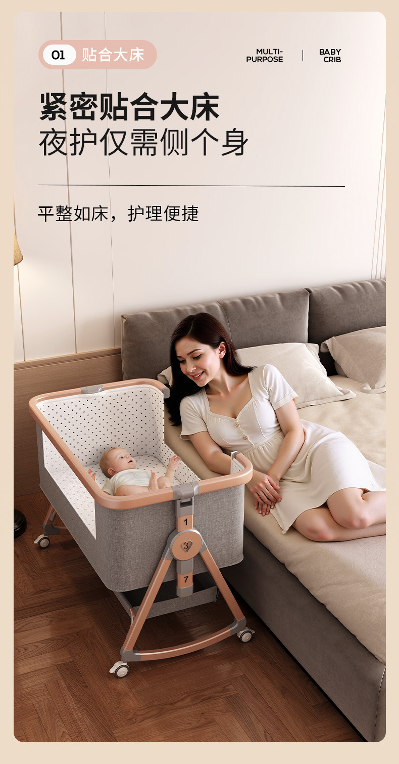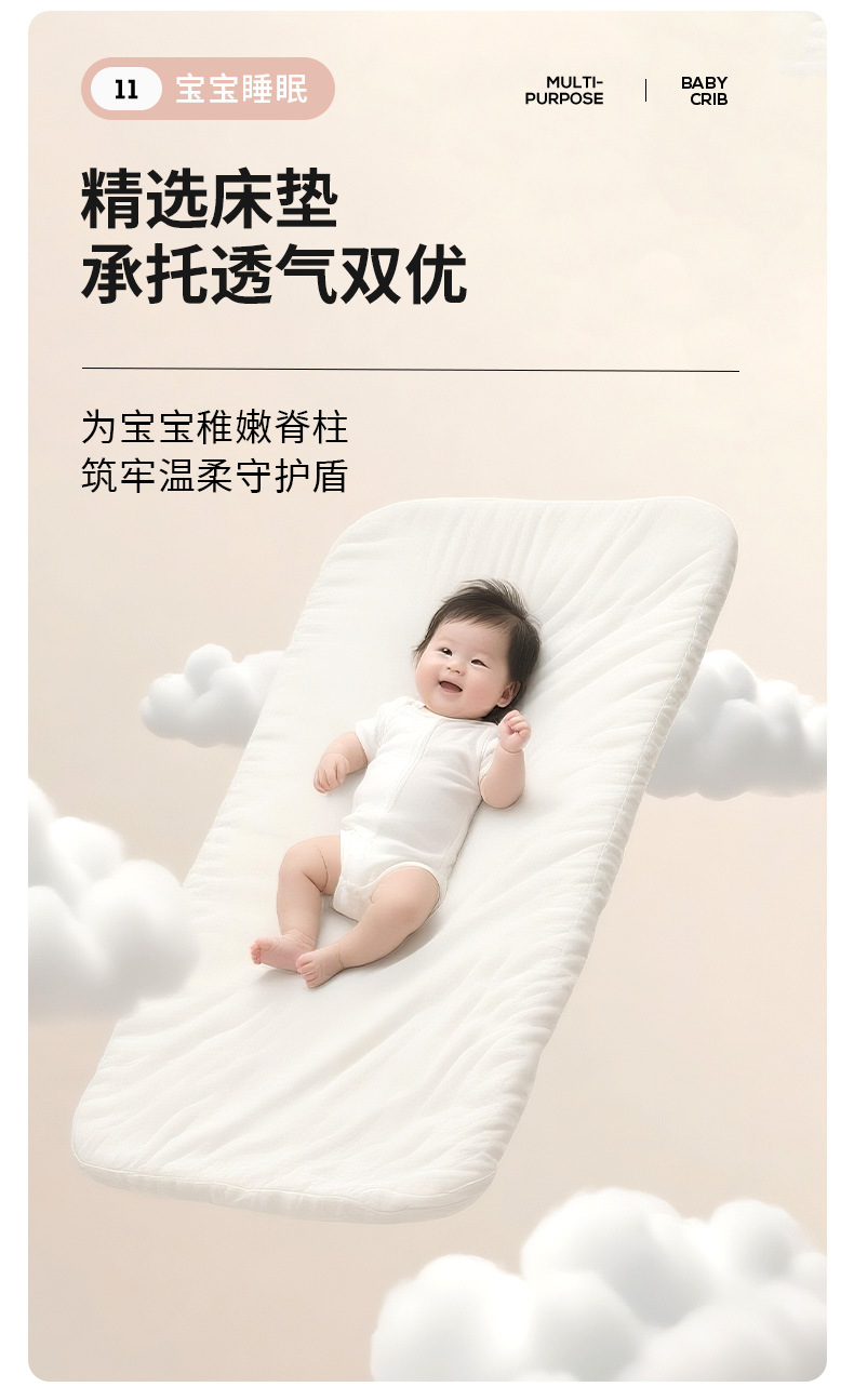 • [표준 버전] 알루미늄 튜브 골드 카드丨메모리폼 매트리스 + 바닥 바구니 + 모기장 + 기저귀 교환대