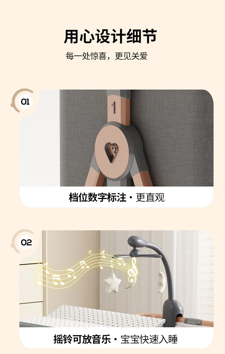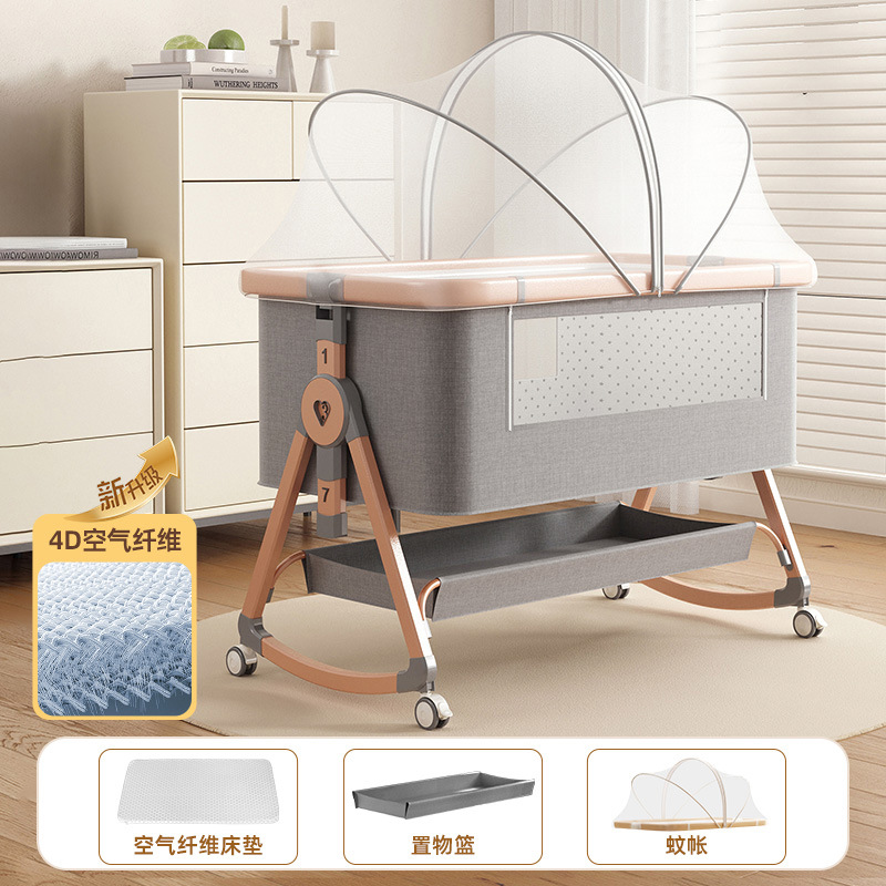 • [표준 버전] 하이카본 스틸 그레이 메모리폼 매트리스 + 바닥 바구니 + 모기장 + 트위스트 베드 서라운드 + 기저귀 교환대 + 베드 벨